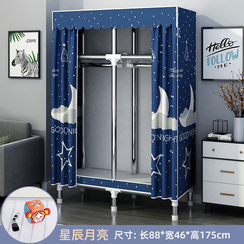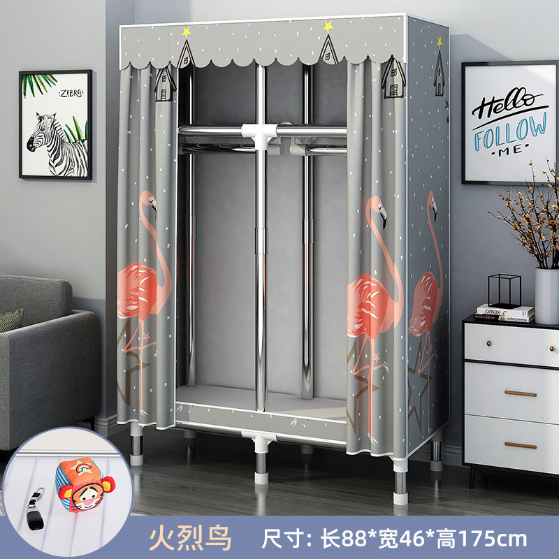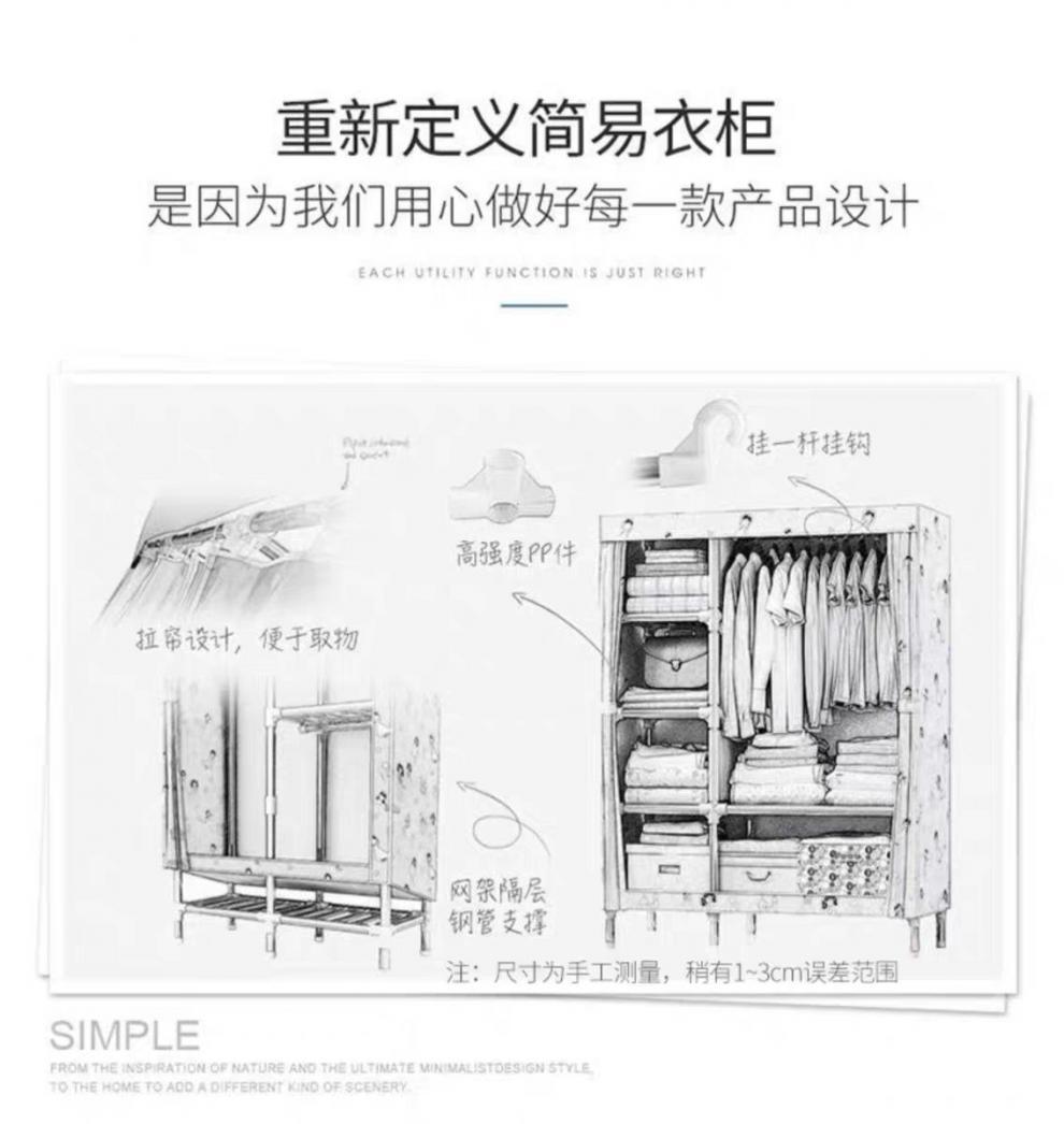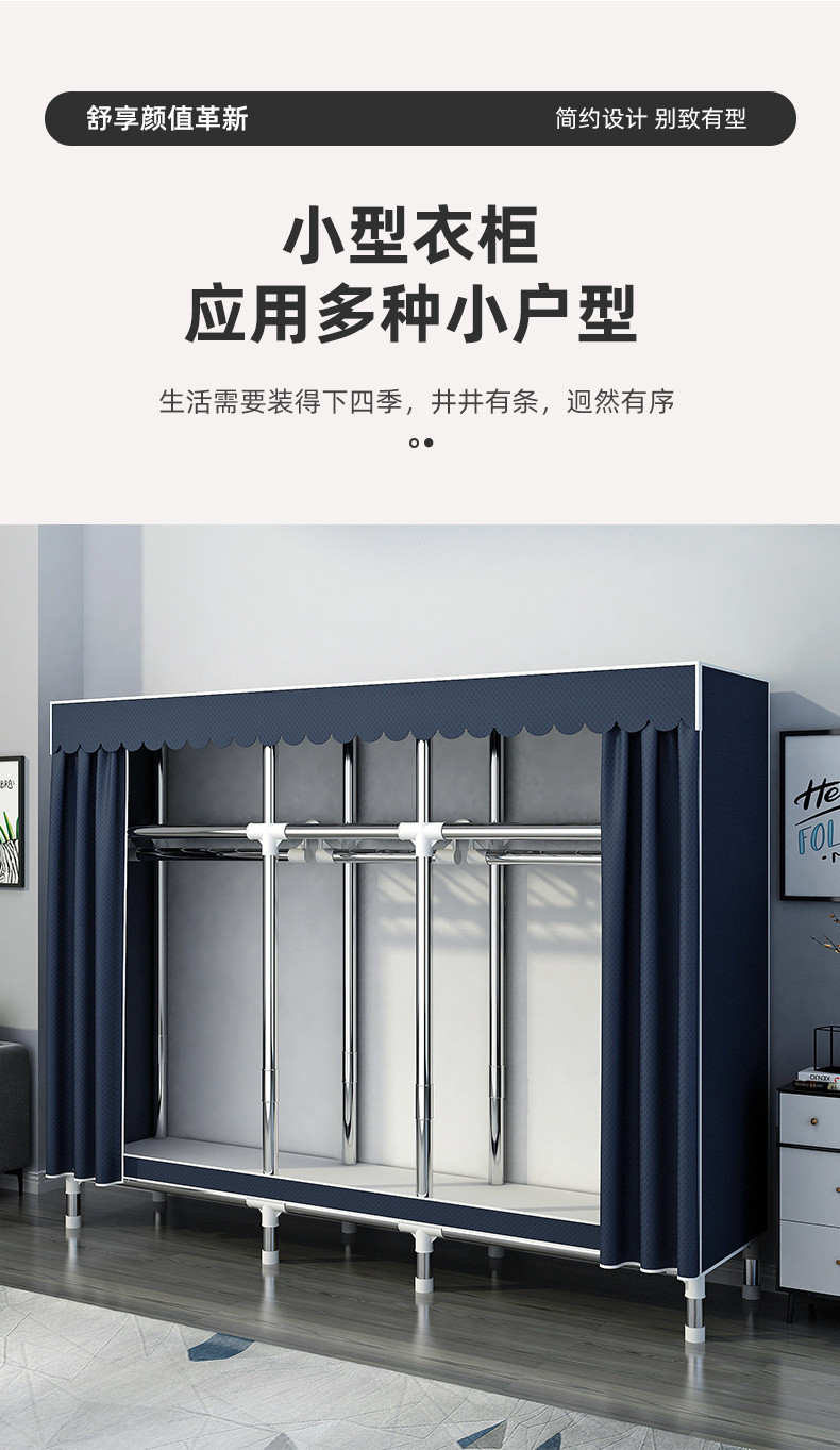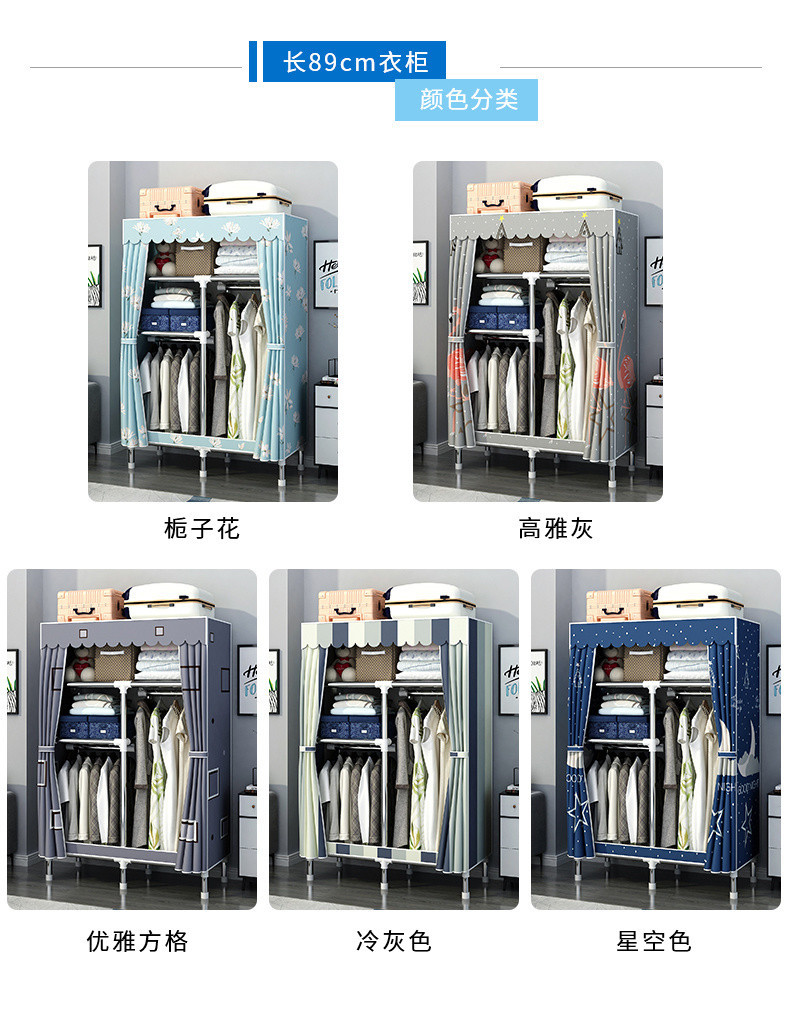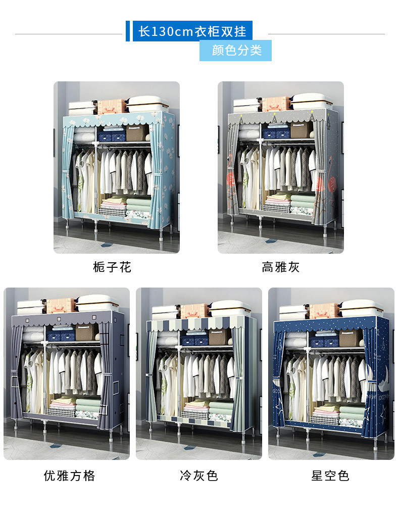 FLE 간단한 옷장 홈 침실 조립 강철 파이프 굵은 천 옷장 임대 방 강하고 튼튼한 강철 프레임 두껍게스토어 가기