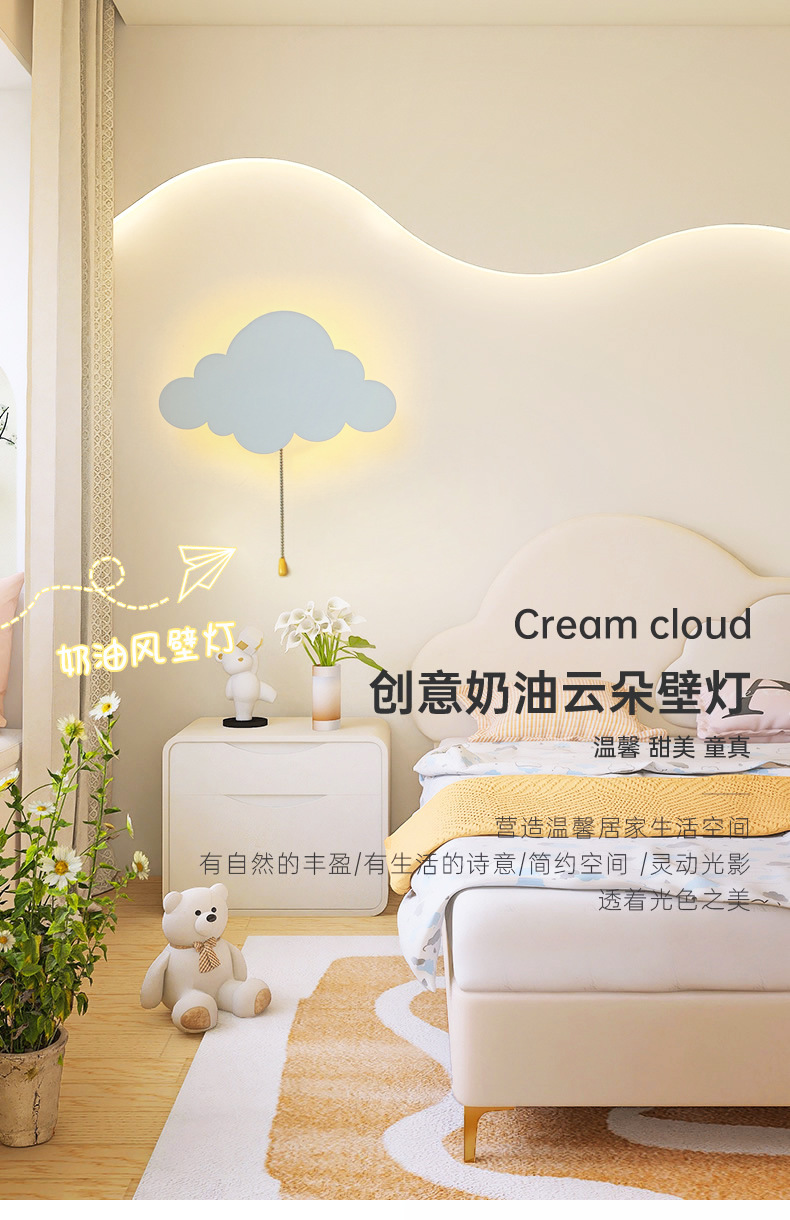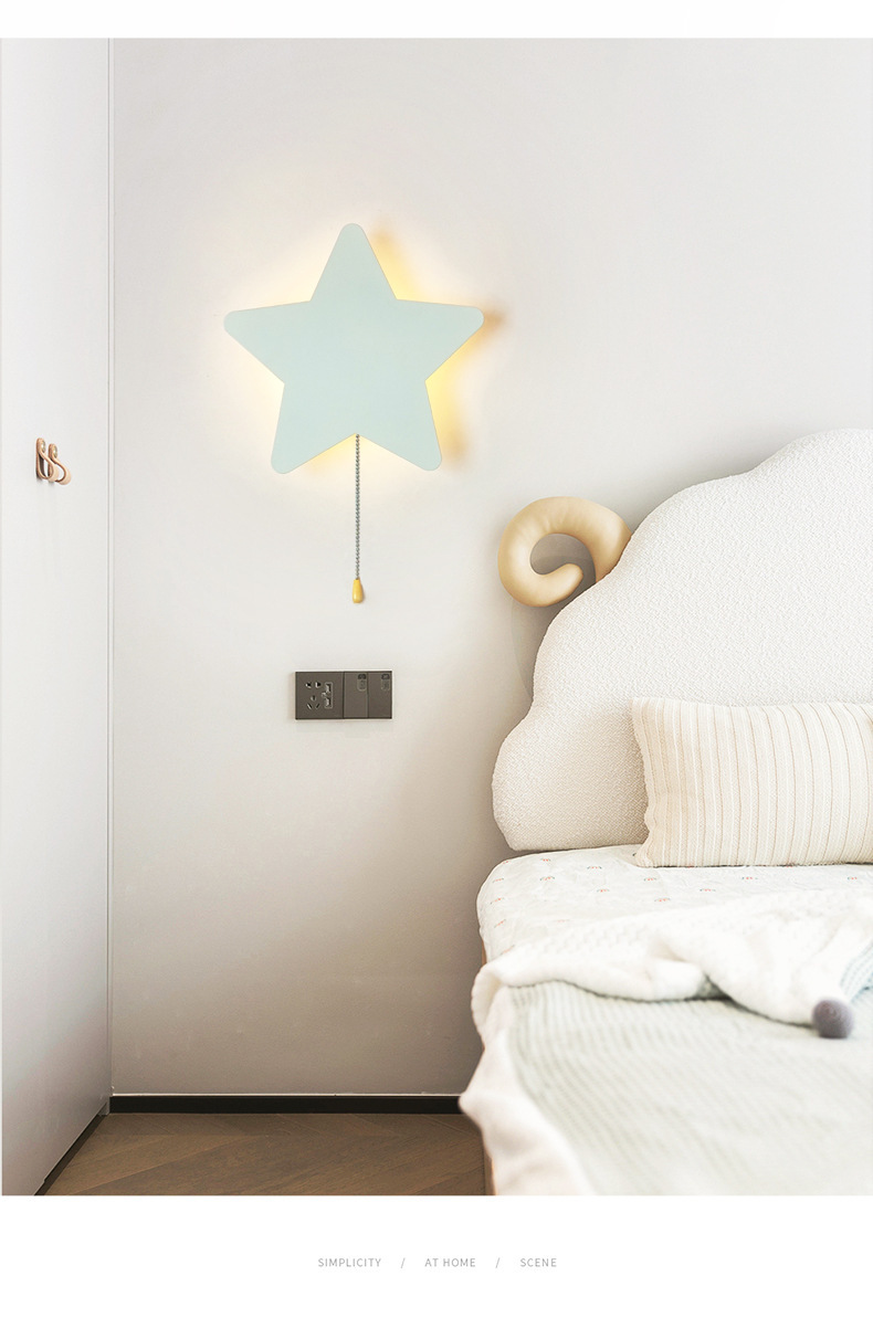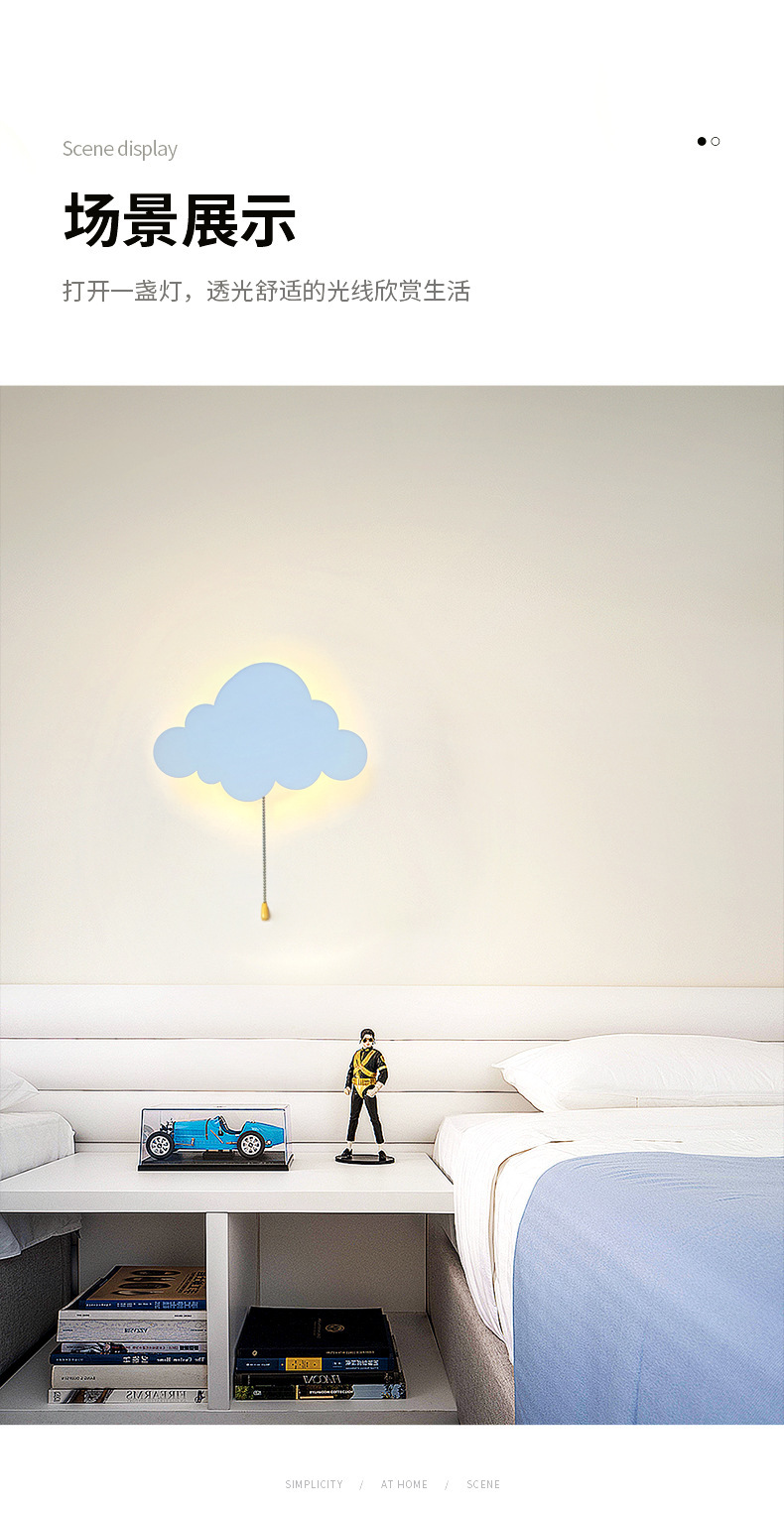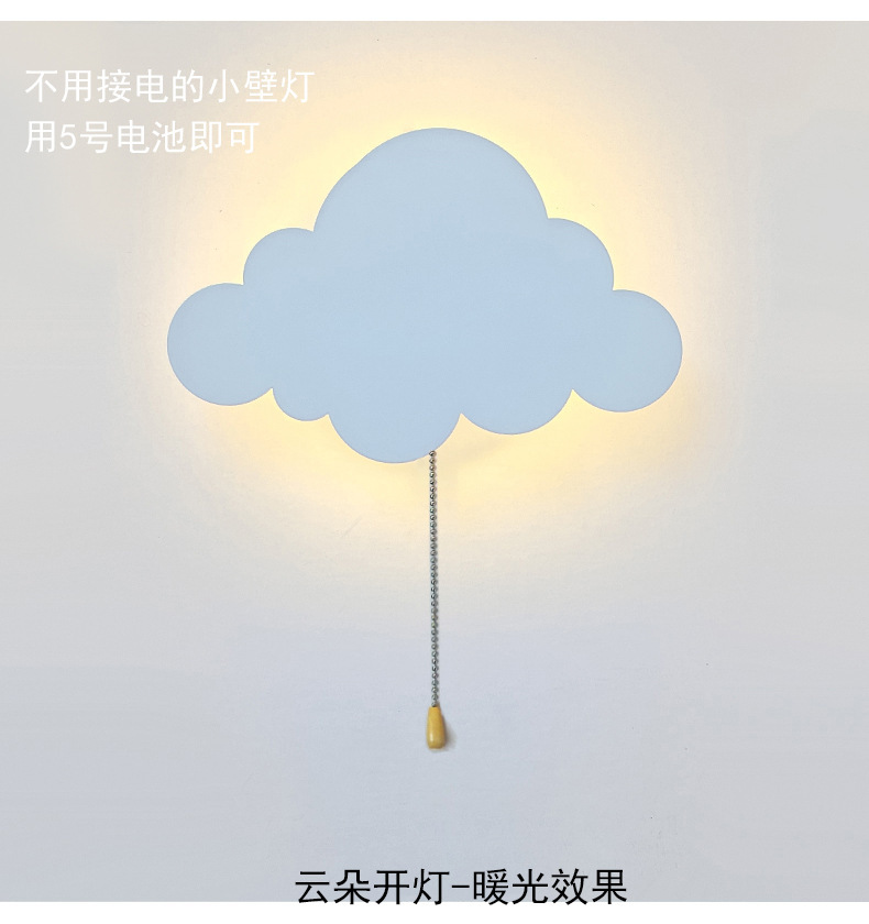 국경 간 이동식 배터리 USB 플러그인 어린이 방 벽 램프 배선 무료 만화 달 구름 침대 옆 램프스토어 가기
