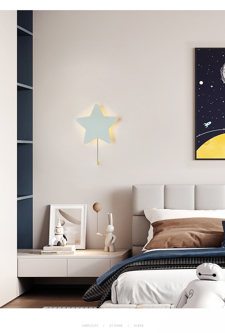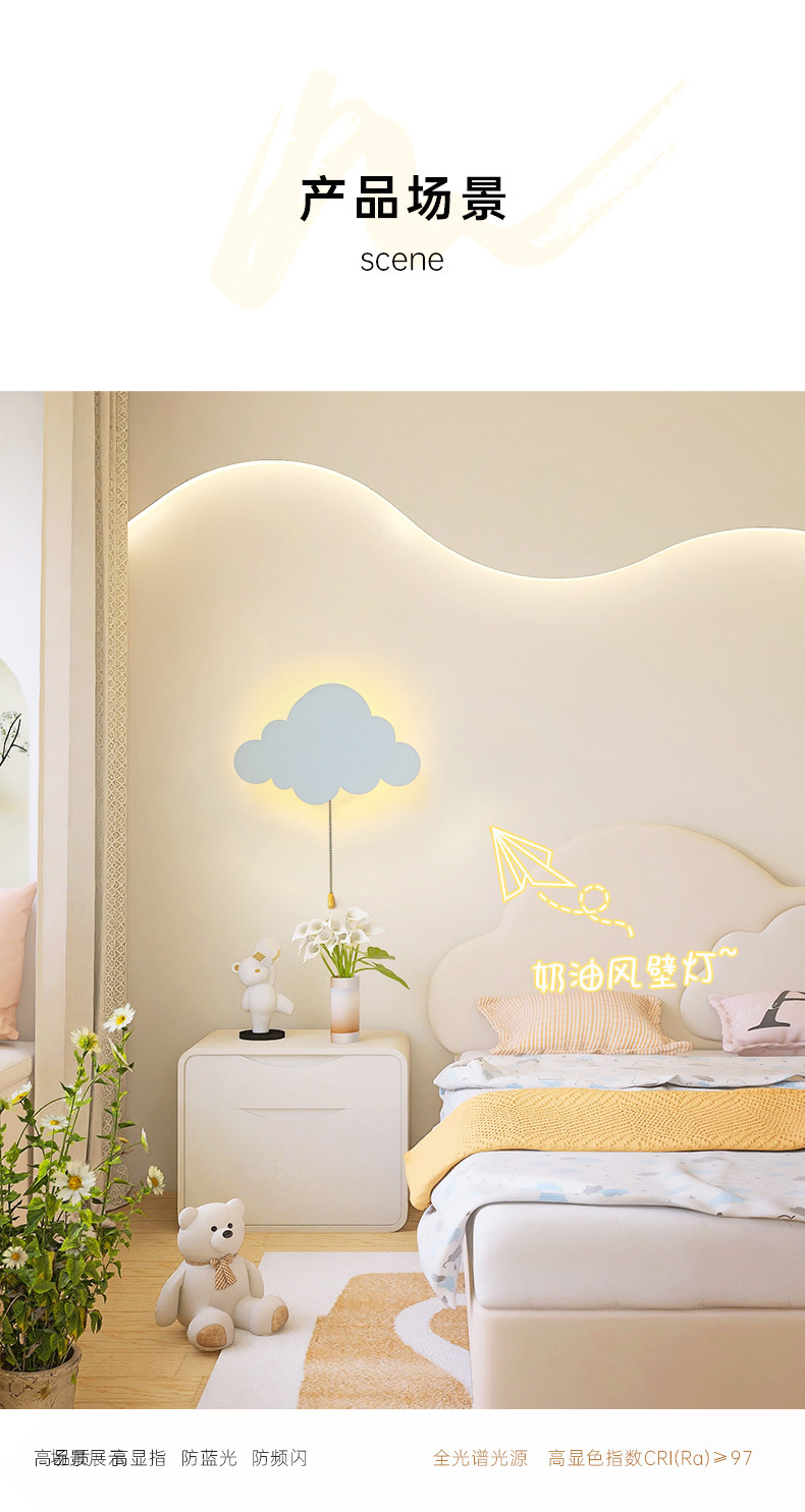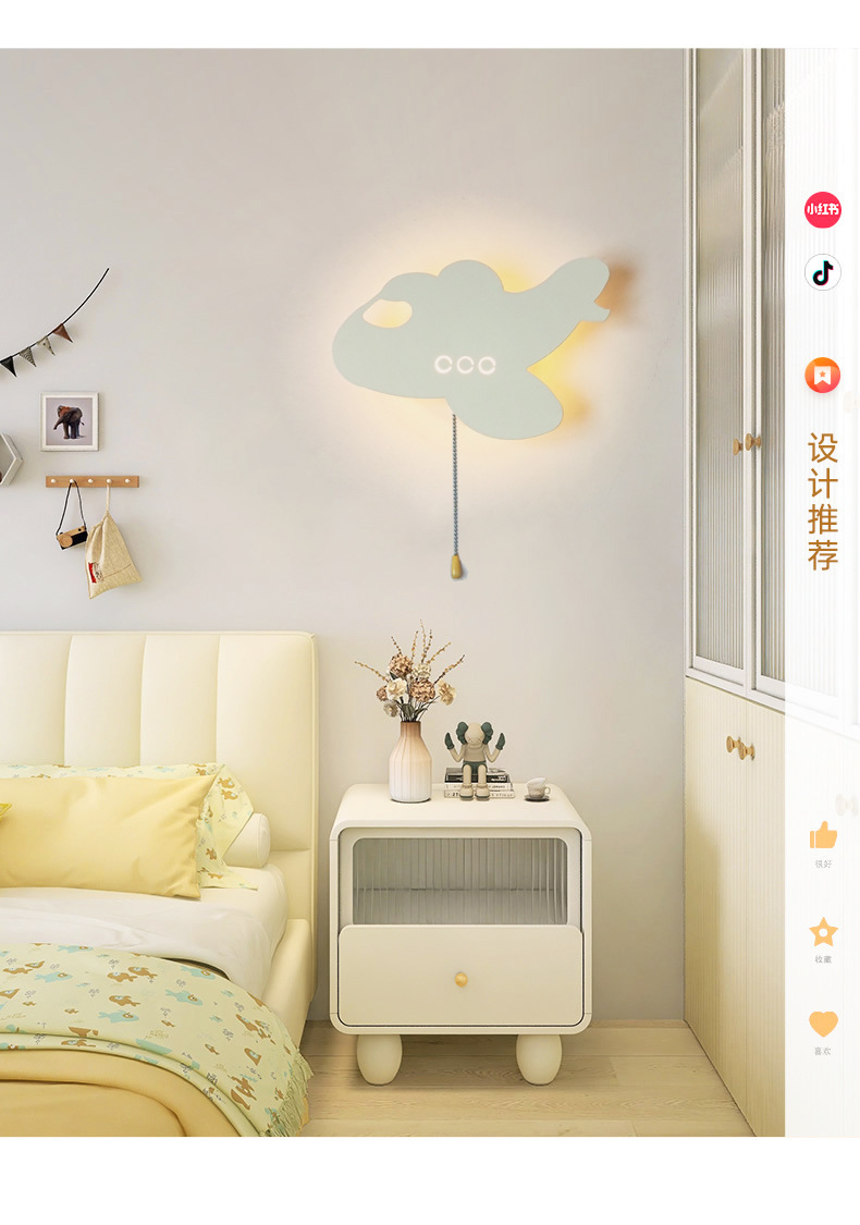 국경 간 이동식 배터리 USB 플러그인 어린이 방 벽 램프 배선 무료 만화 달 구름 침대 옆 램프스토어 가기