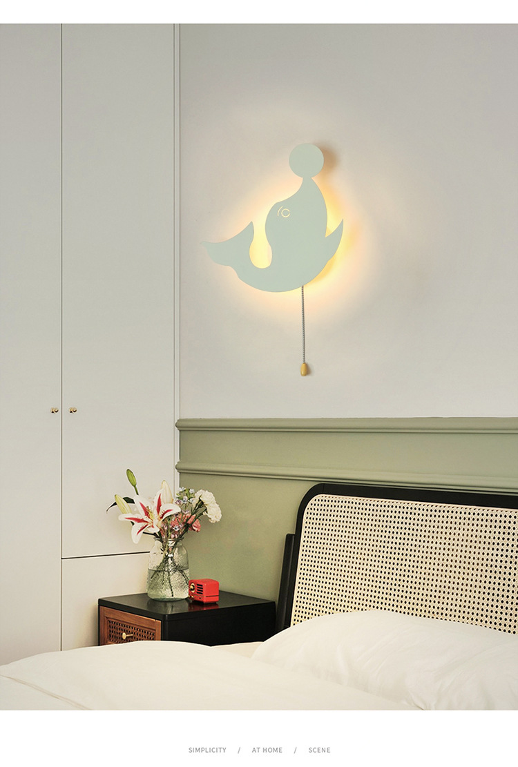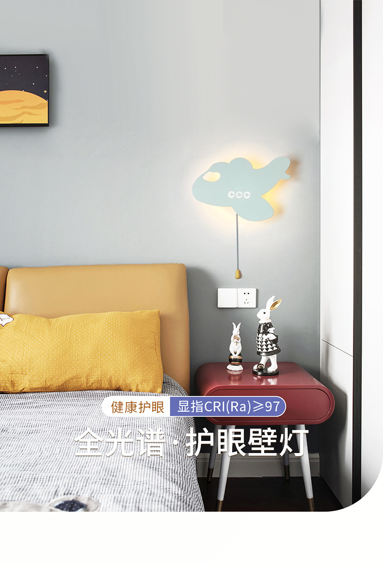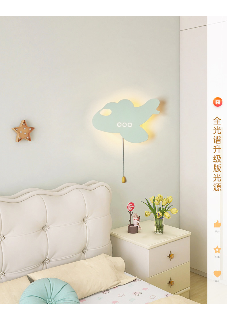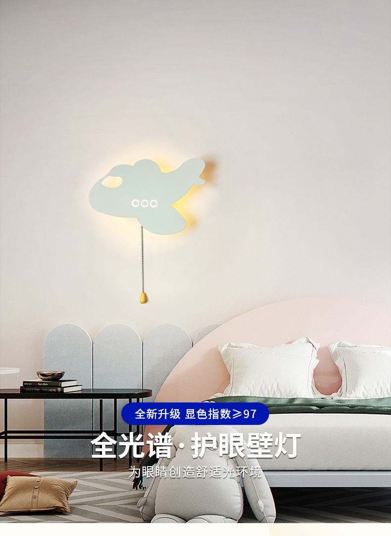 국경 간 이동식 배터리 USB 플러그인 어린이 방 벽 램프 배선 무료 만화 달 구름 침대 옆 램프