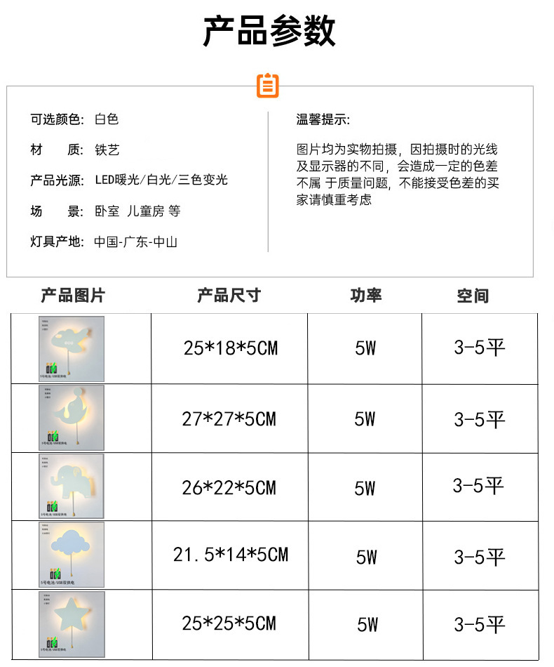 • 모델 A 클라우드 21.5*14*5CM—5W(배터리는 직접 구매해야 함)
