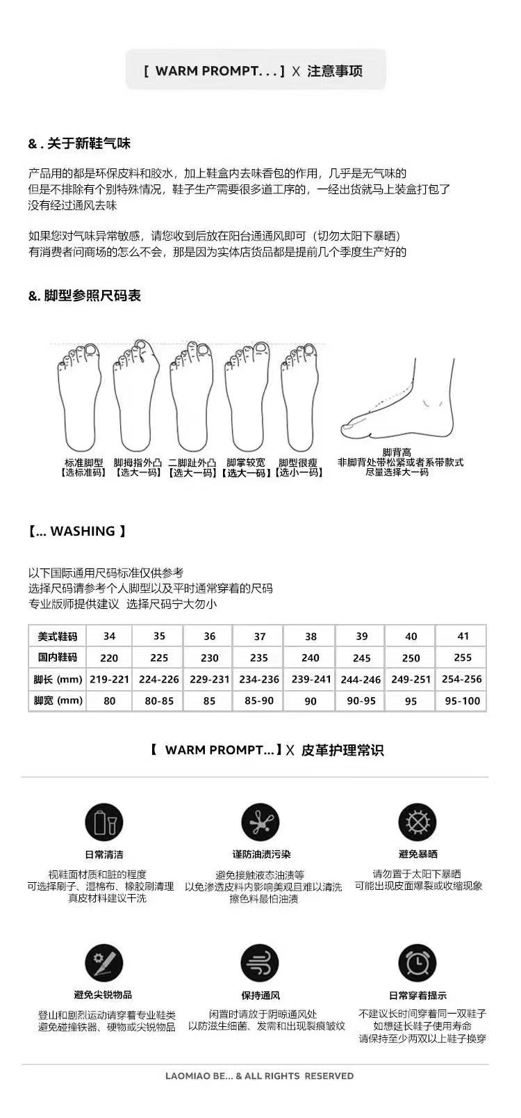 [关干胶水]生产鞋子胶水是必用材料,每一双鞋子边上胶水高低多少都会有,属干正常,产品图片是经过PS处理所以看不到胶水痕迹,按照收到实物为准,收货请当快递面验货,胶水不属于质量问题范畴(此条会用作纠纷举证)批量进货不支持退货,谢谢合作!