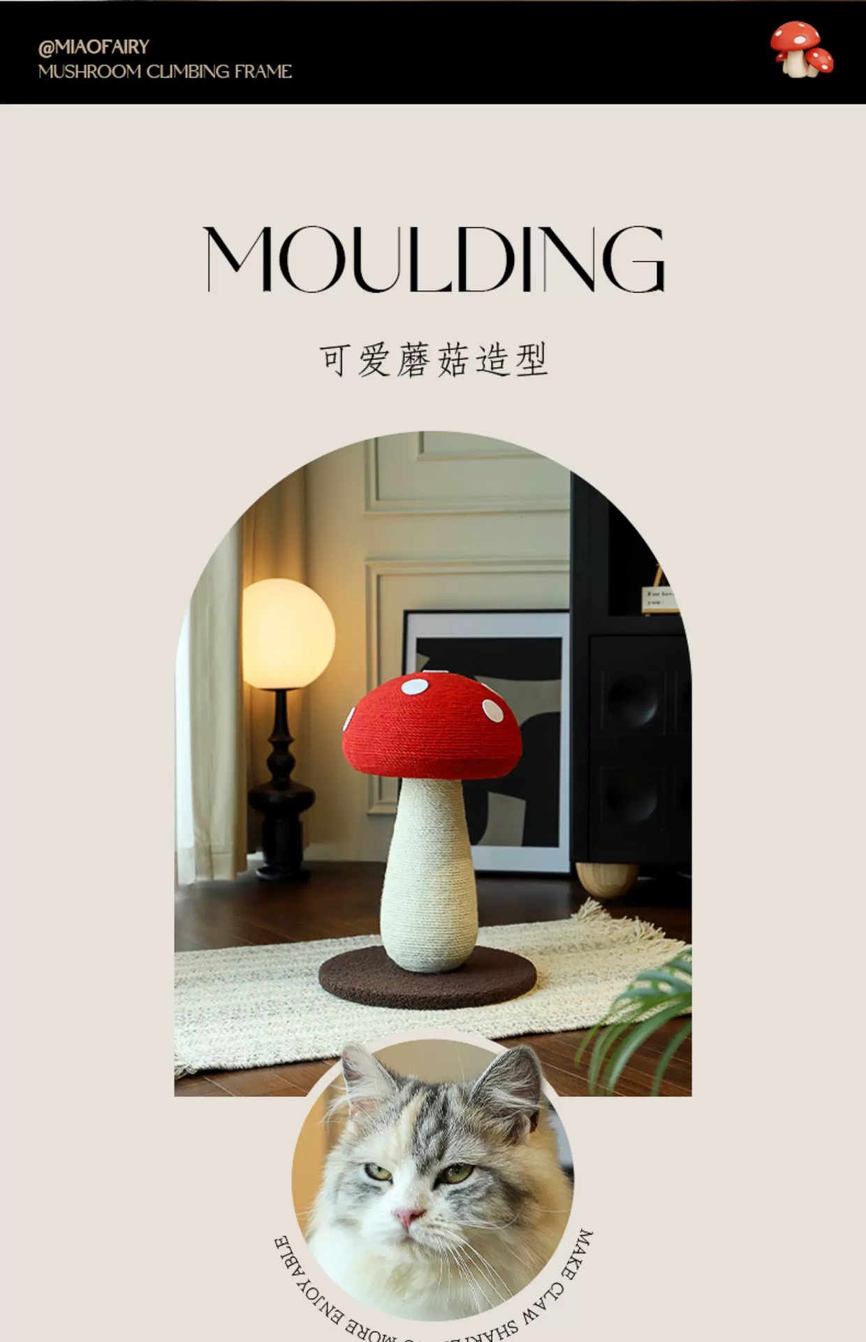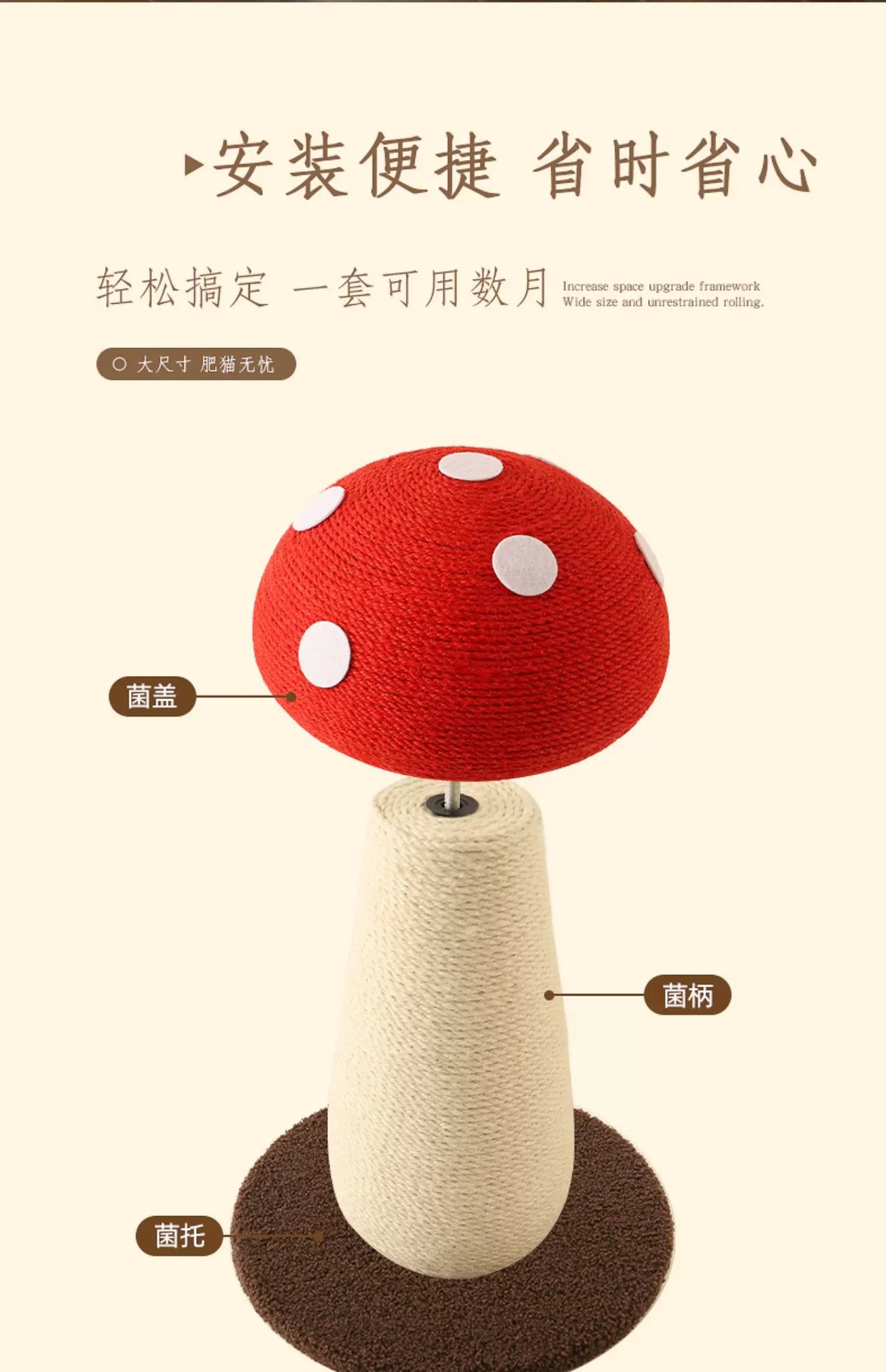 큰 크기 빨간 버섯 고양이 등반 프레임 빨간 우산 사이 잘 갈고 발톱 고양이 등반 수직 고양이 긁기 보드 고양이 나무 장난감