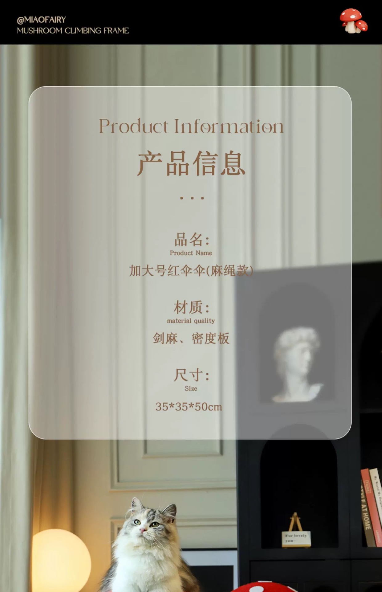 큰 크기 빨간 버섯 고양이 등반 프레임 빨간 우산 사이 잘 갈고 발톱 고양이 등반 수직 고양이 긁기 보드 고양이 나무 장난감스토어 가기
