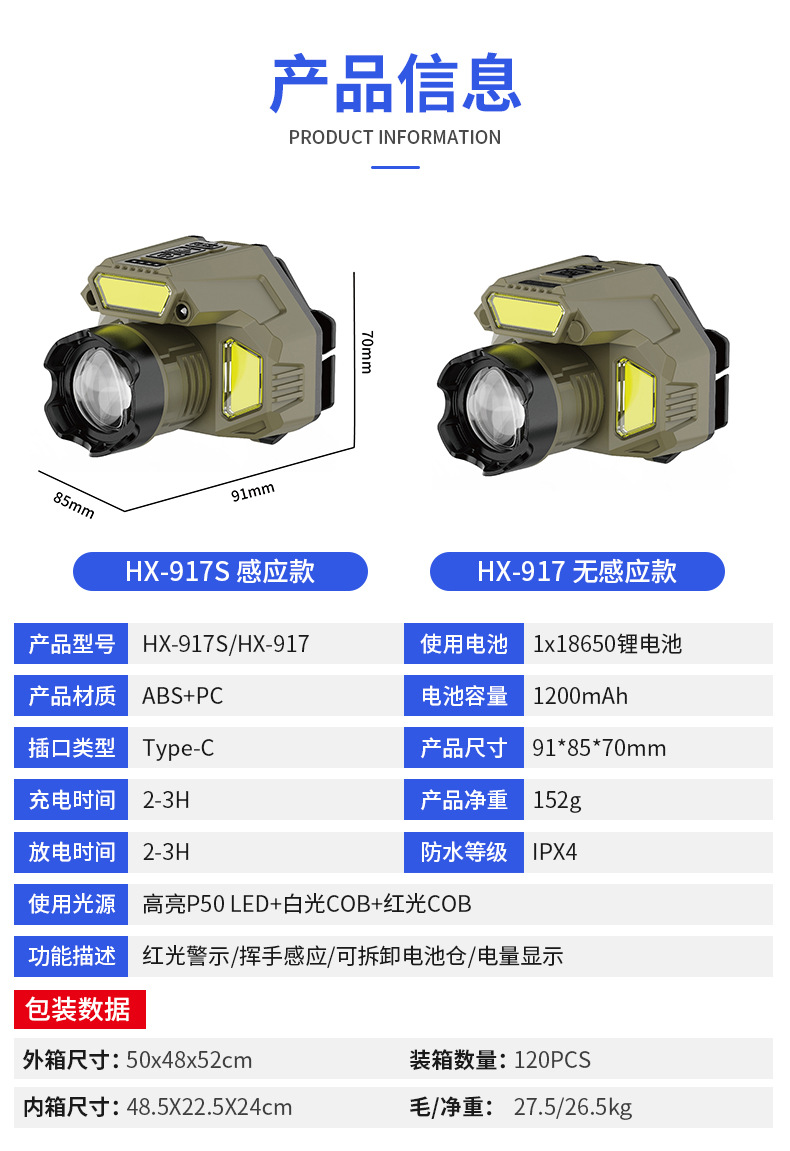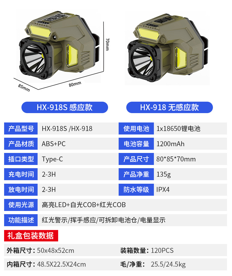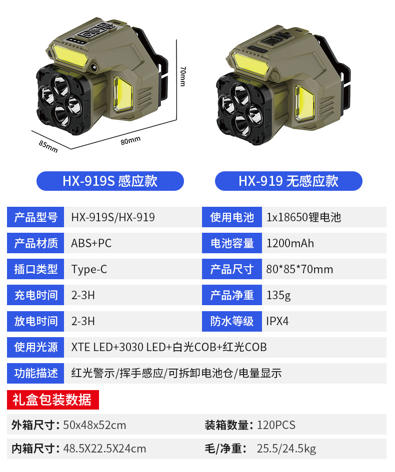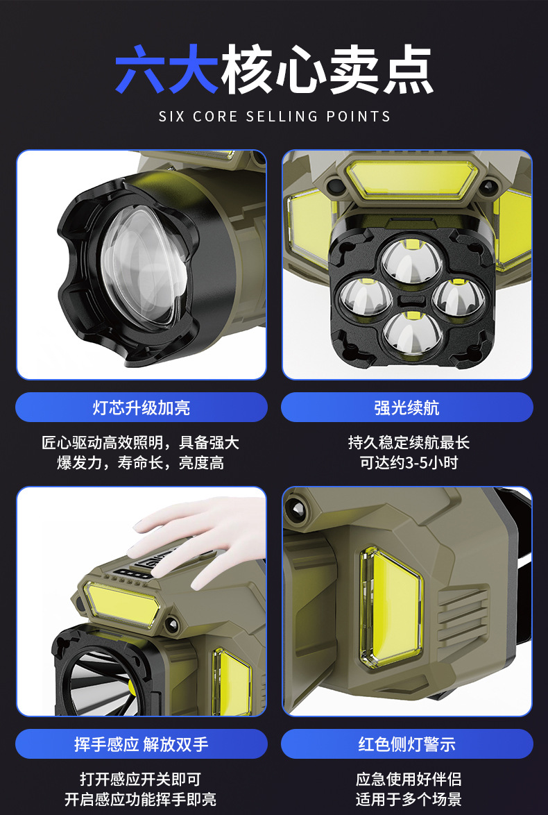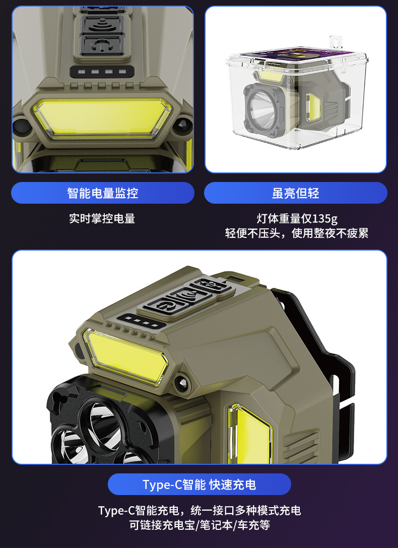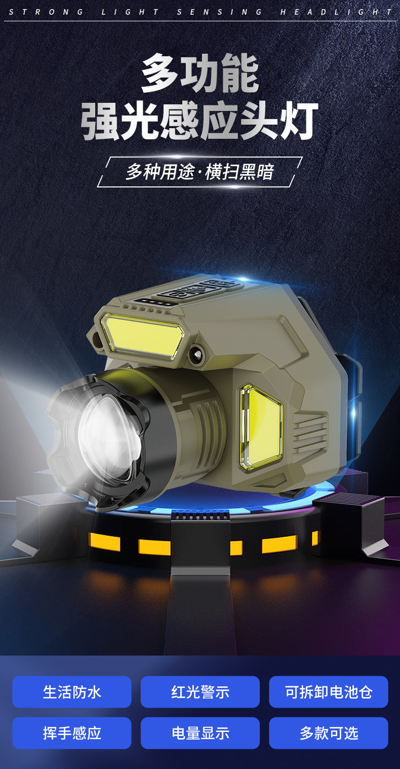 다기능 헤드 램프 긴 내구성 강한 빛 리튬 배터리 광부의 램프 야외 등산 캠핑 다목적 방수 유도 헤드 램프