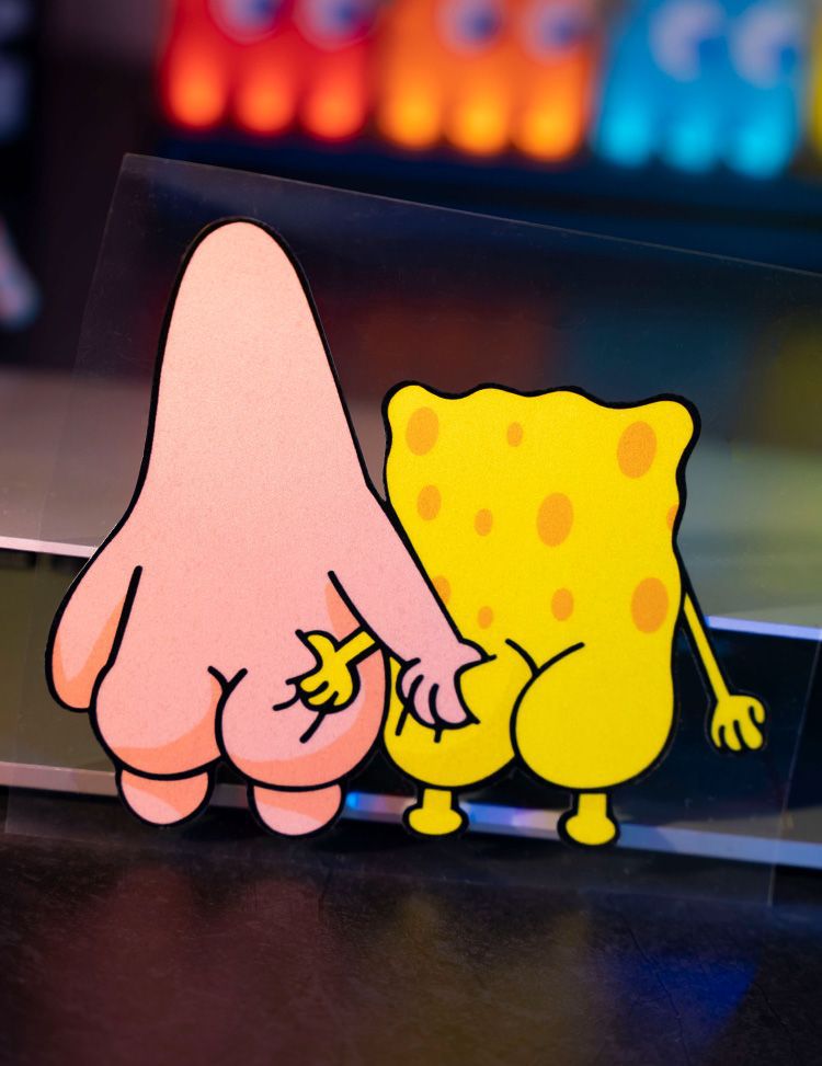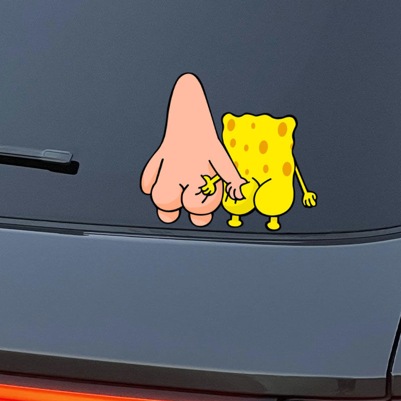 스폰지 밥의 엉덩이 터치 자동차 스티커 만화 성격 창조적 인 전기 자동차 스티커 스크래치 자동차 창 장식 스티커스토어 가기