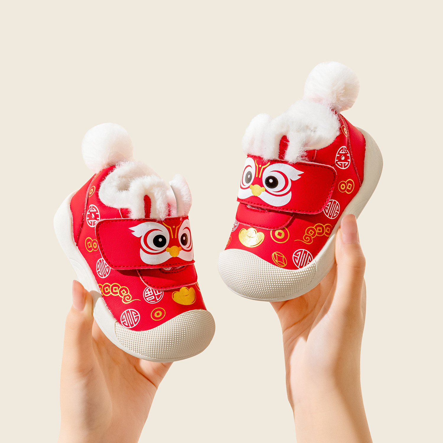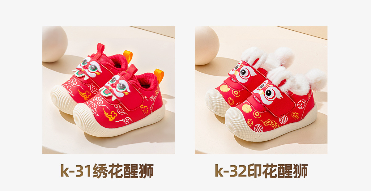 겨울 새 아기 신년 신발 기모 유아 신발 겨울 붉은 새해 아기 신발 봉제 따뜻한 아기 코튼 신발스토어 가기