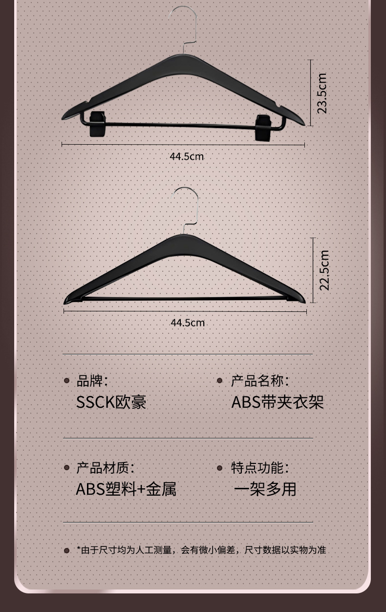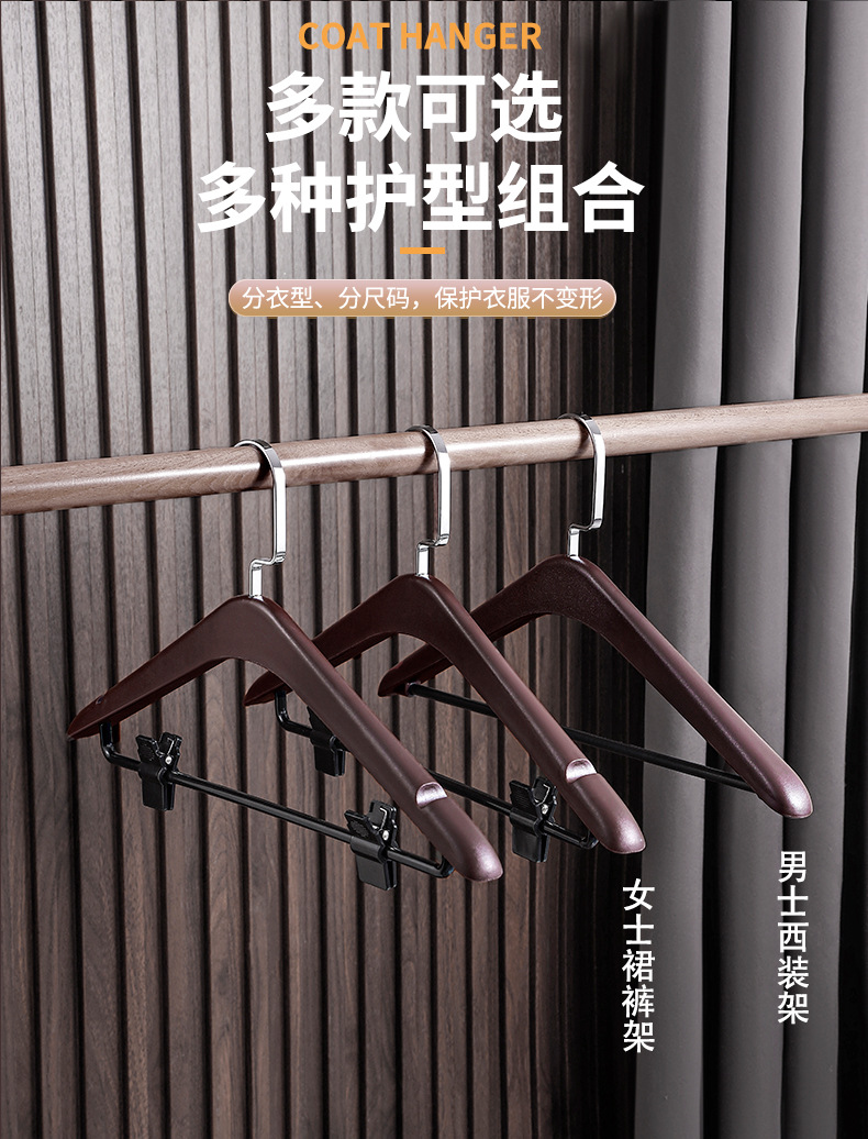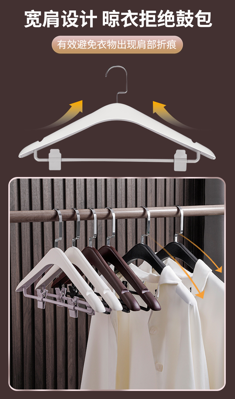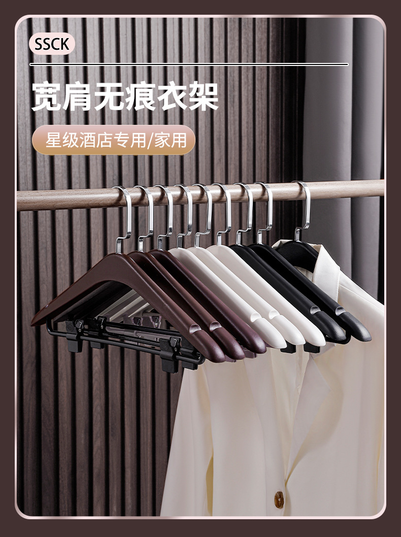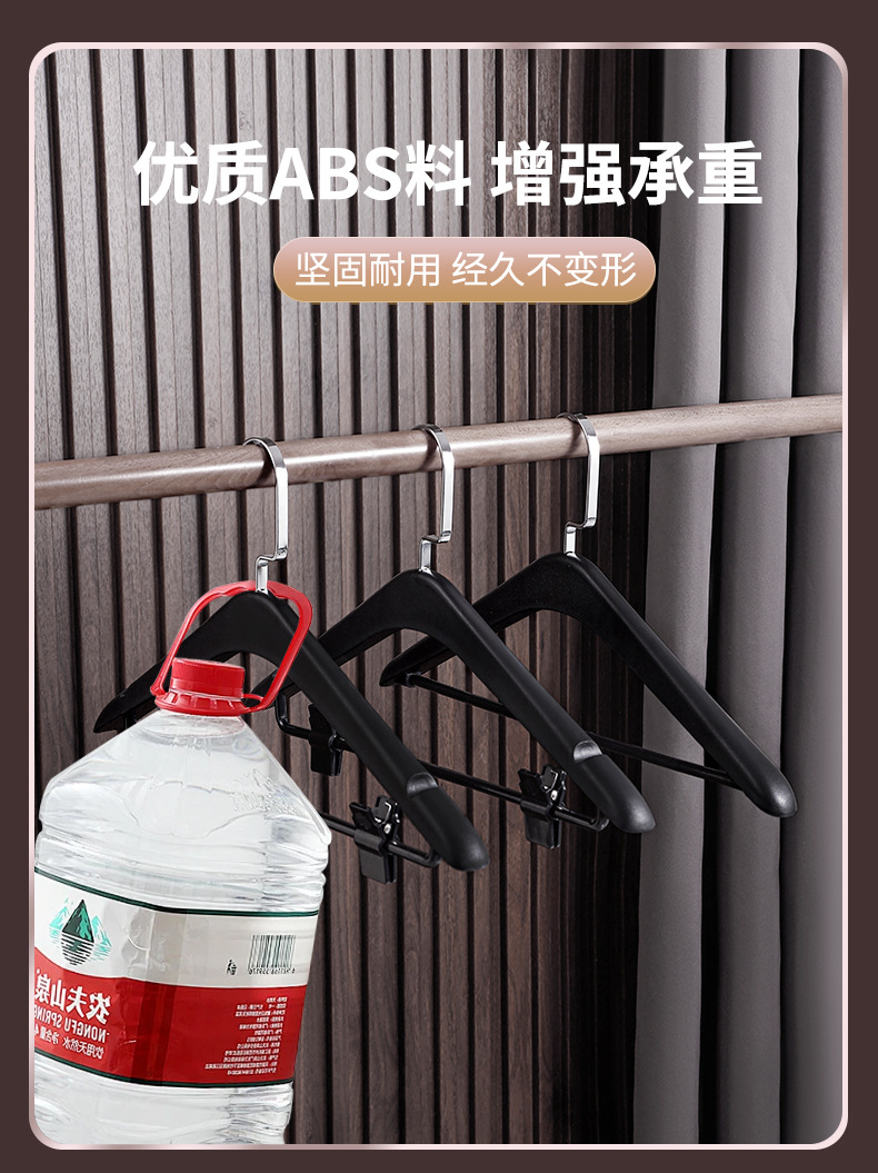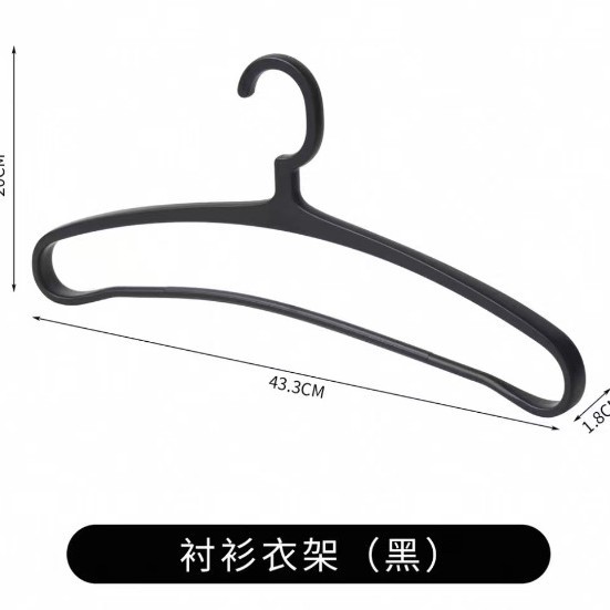 사계절용 플라스틱 옷걸이, 호텔 객실 전용, 양복 셔츠용, 클립 포함, 두꺼운 넓은 어깨, 미끄럼 방지, 검정색