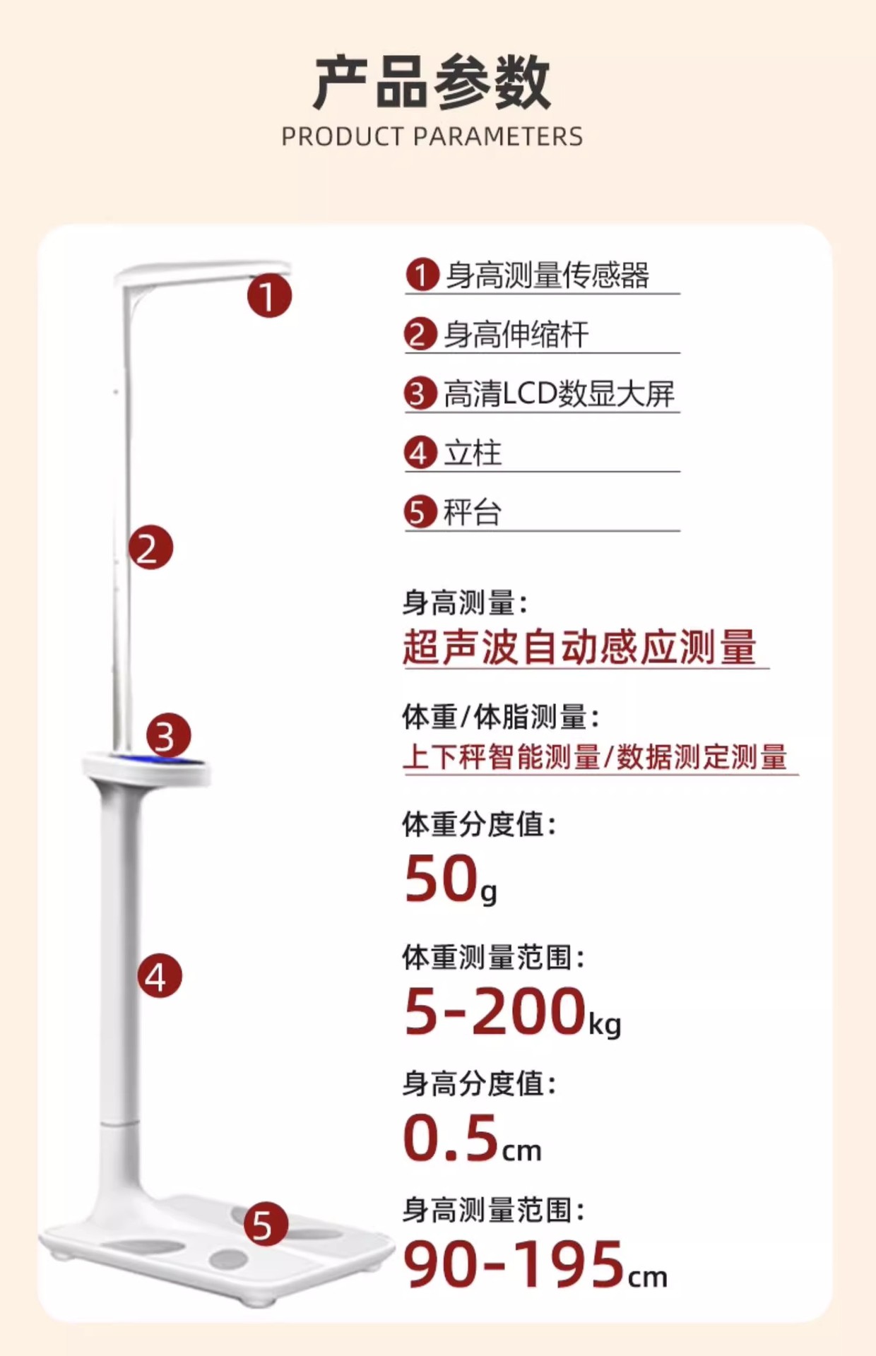 Beiya Beryl 지원 블루투스 연결 초음파 높이 무게 규모 병원 학교 전용 지능형 체지방 규모