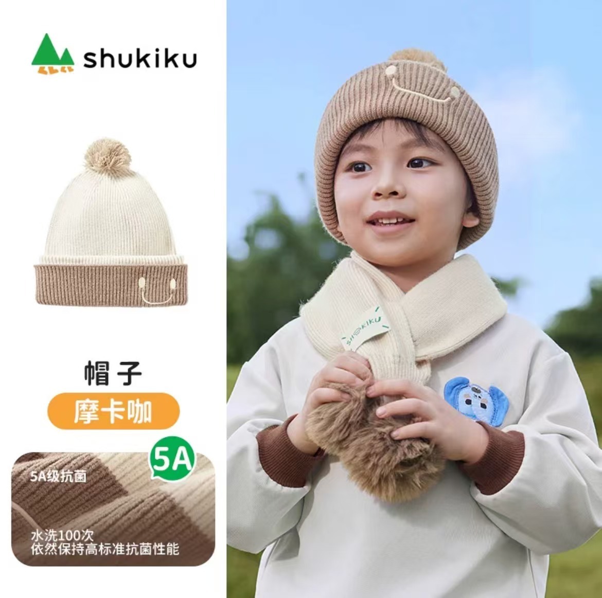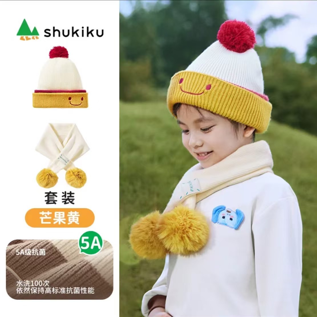 어린이를위한 슈키쿠 어린이 모자 2024 새로운 가을과 겨울 아기 귀 보호 니트 따뜻한 울 모자스토어 가기