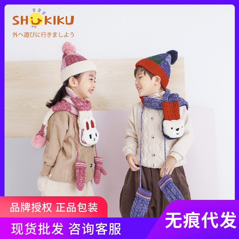 어린이를위한 슈키쿠 어린이 모자 2024 새로운 가을과 겨울 아기 귀 보호 니트 따뜻한 울 모자
