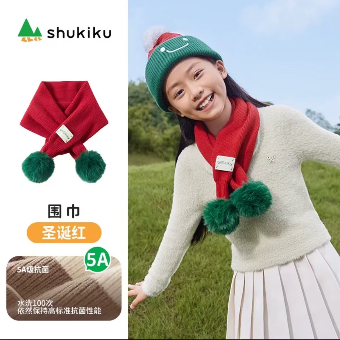 • 판시 어린이 스카프-크리스마스 레드