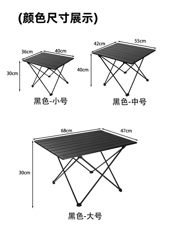 • 다크 나이트 블랙 접이식 테이블 대형