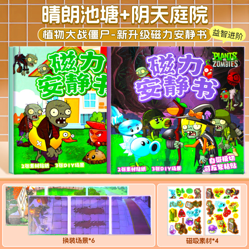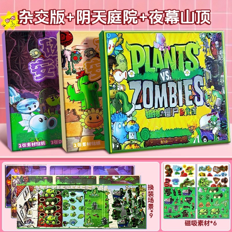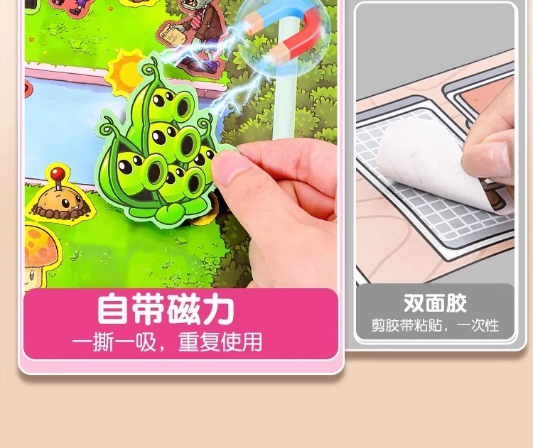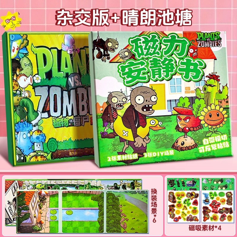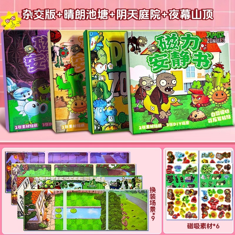 식물 대 좀비 하이브리드 에디션 마그네틱 조용한 책 새로운 소녀 마그네틱 스티커 소년을위한 어린이 수제 장난감스토어 가기