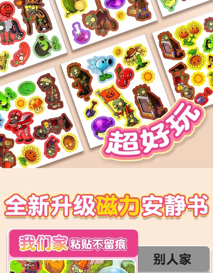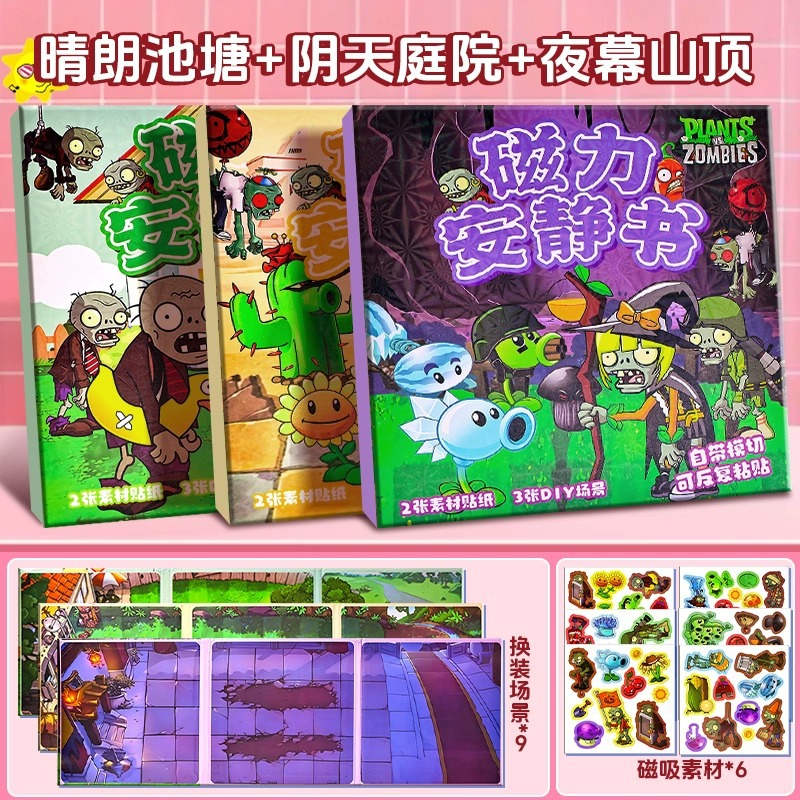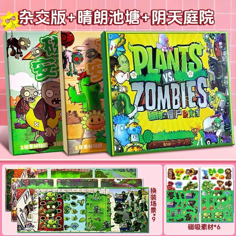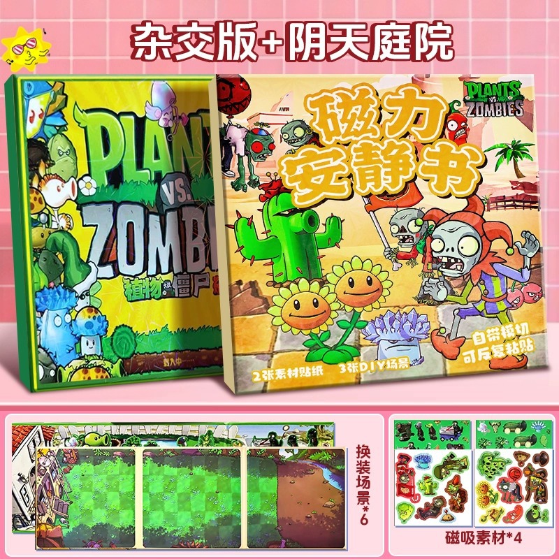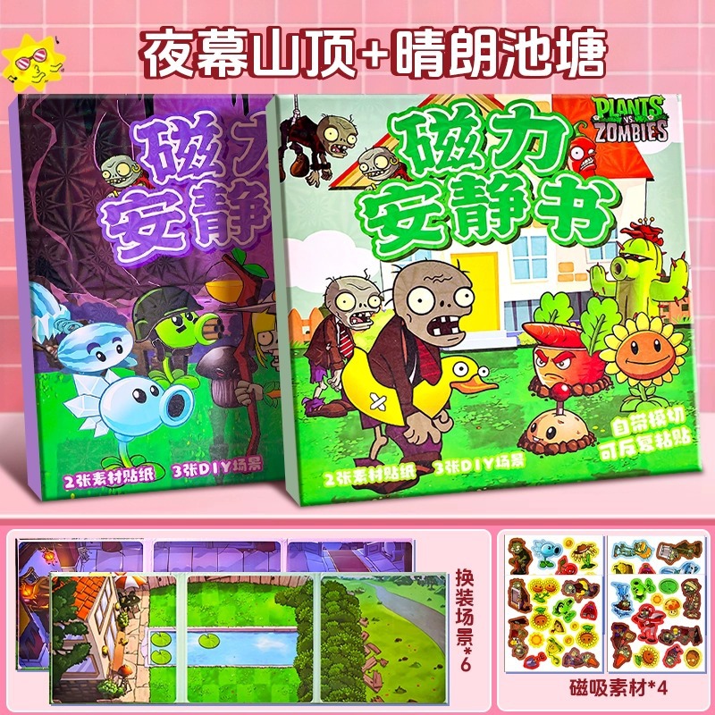 식물 대 좀비 하이브리드 에디션 마그네틱 조용한 책 새로운 소녀 마그네틱 스티커 소년을위한 어린이 수제 장난감스토어 가기