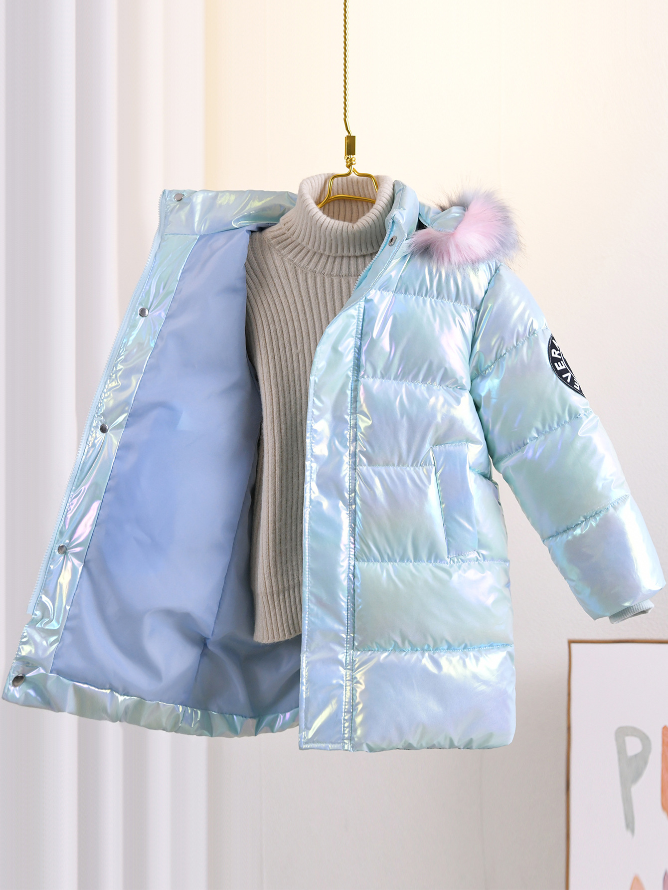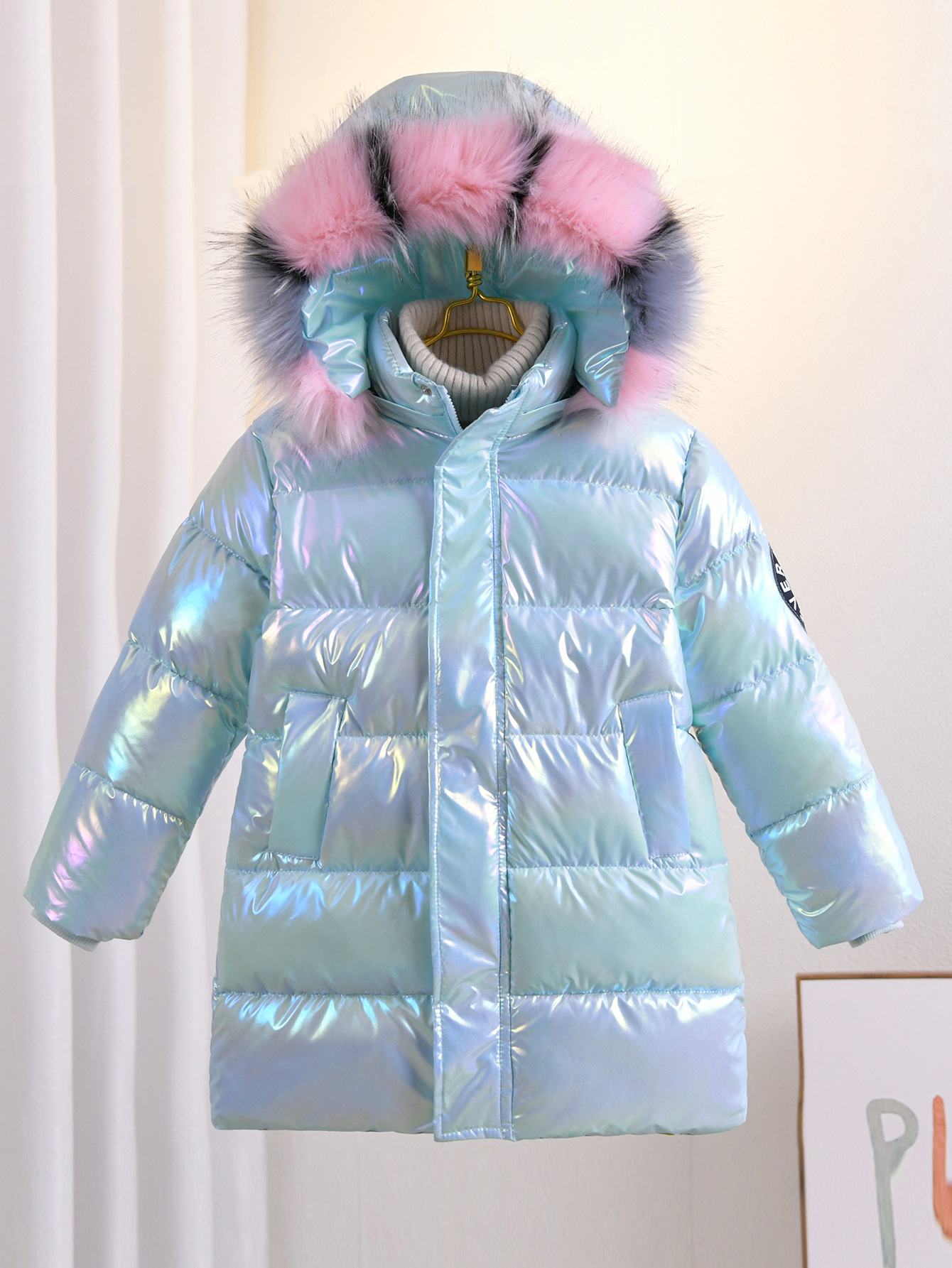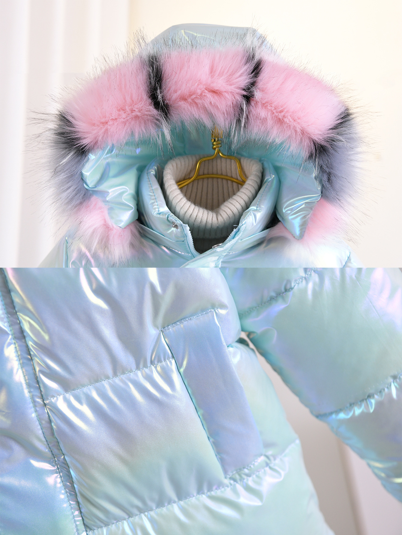 여성의 큰 어린이 면화 패딩 옷 새로운 그라디언트 두꺼운 코트 다채로운 대외 무역 아동면 패딩 옷 겨울 눈 옷 따뜻한 패션 탑스토어 가기