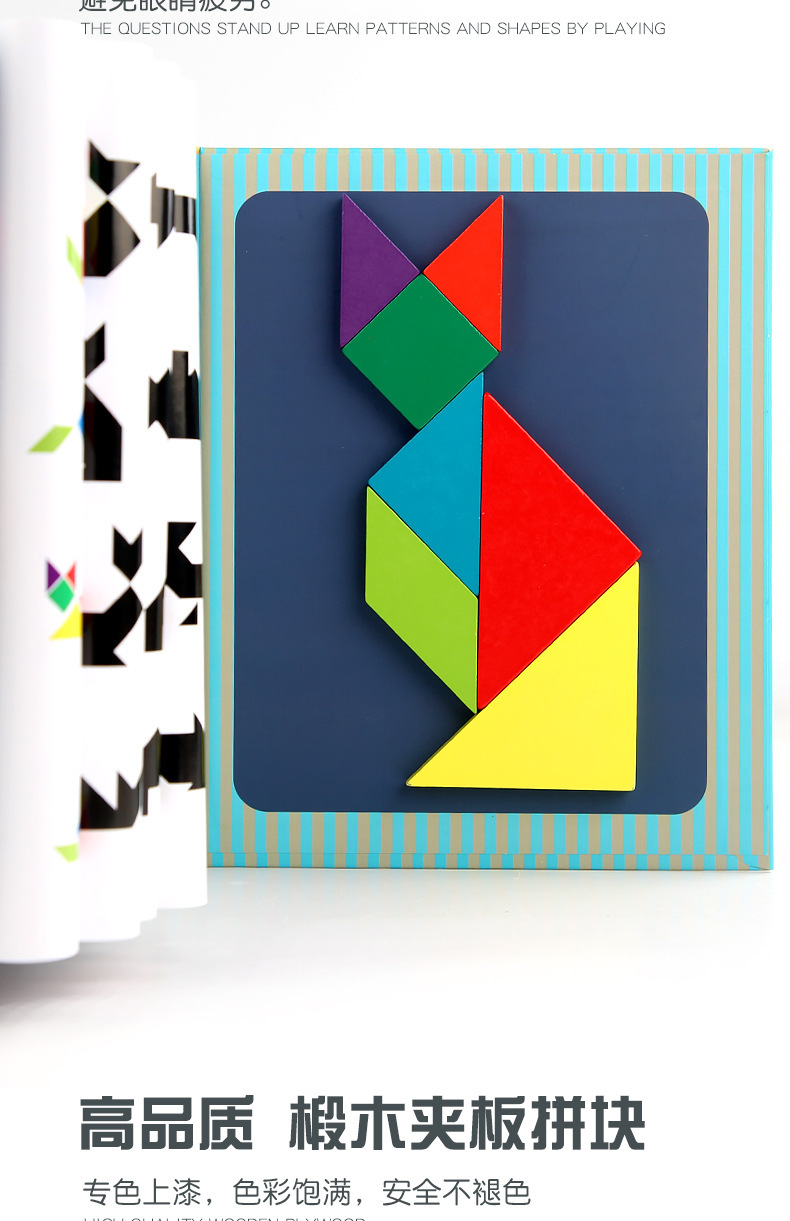 【套餐26】盒装加厚款PP材质七巧板10*10*1cm 重量0.09kg 装箱数200套 装箱尺寸45*22*27cm