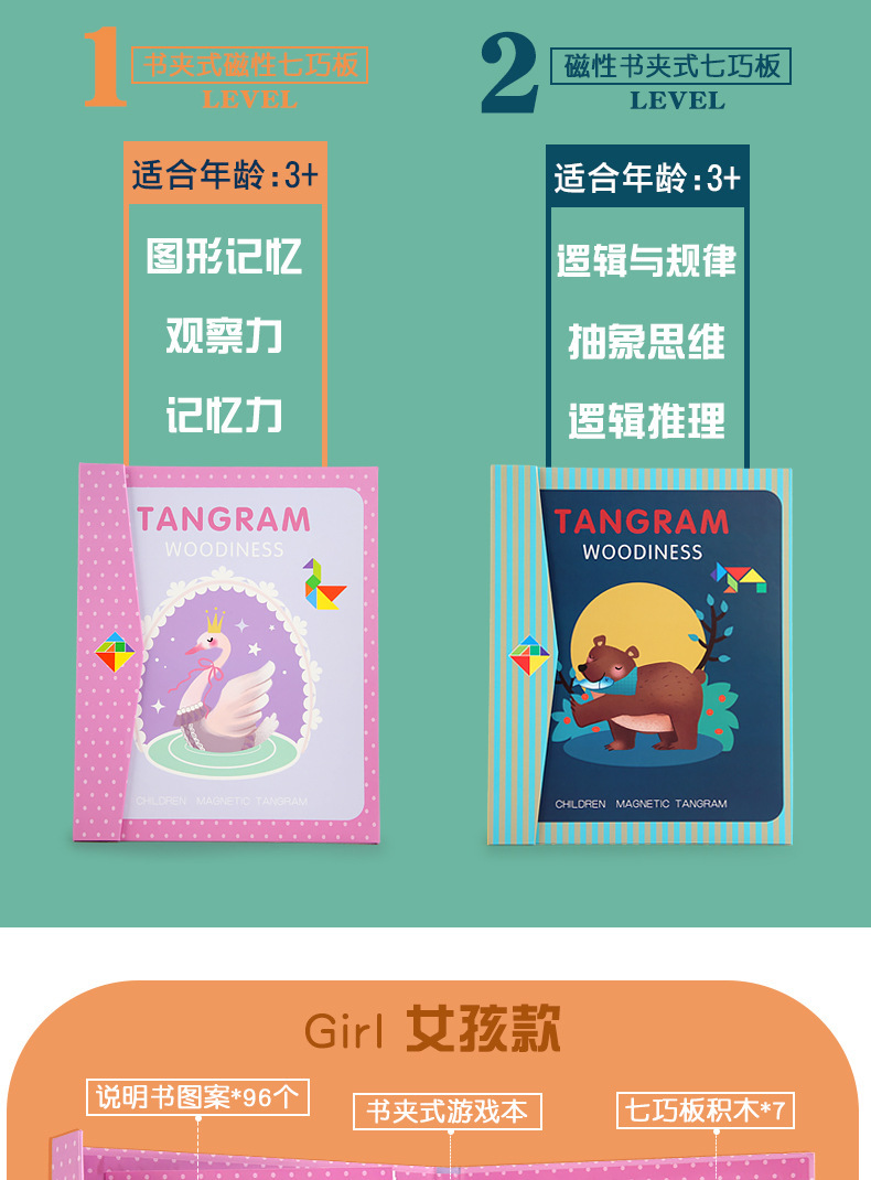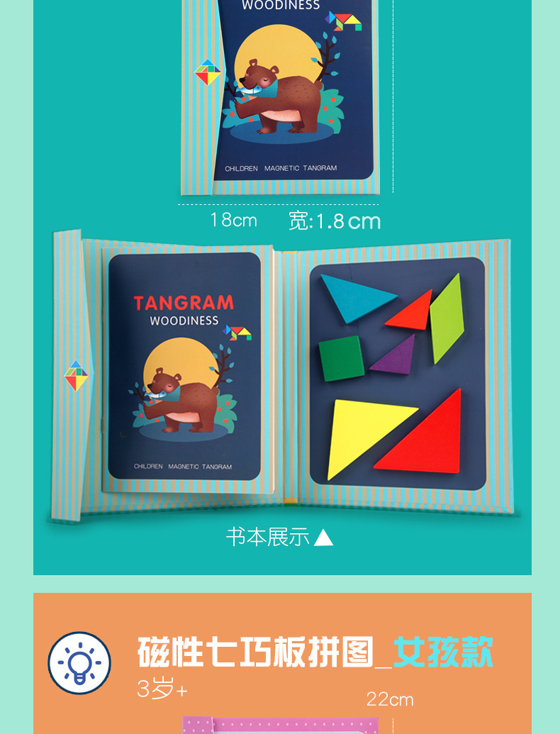 【套餐4】女孩款磁性七巧板 尺寸22*18.5*1.8cm 重量0.3kg 装箱数80套 装箱尺寸46*37.5*32cm