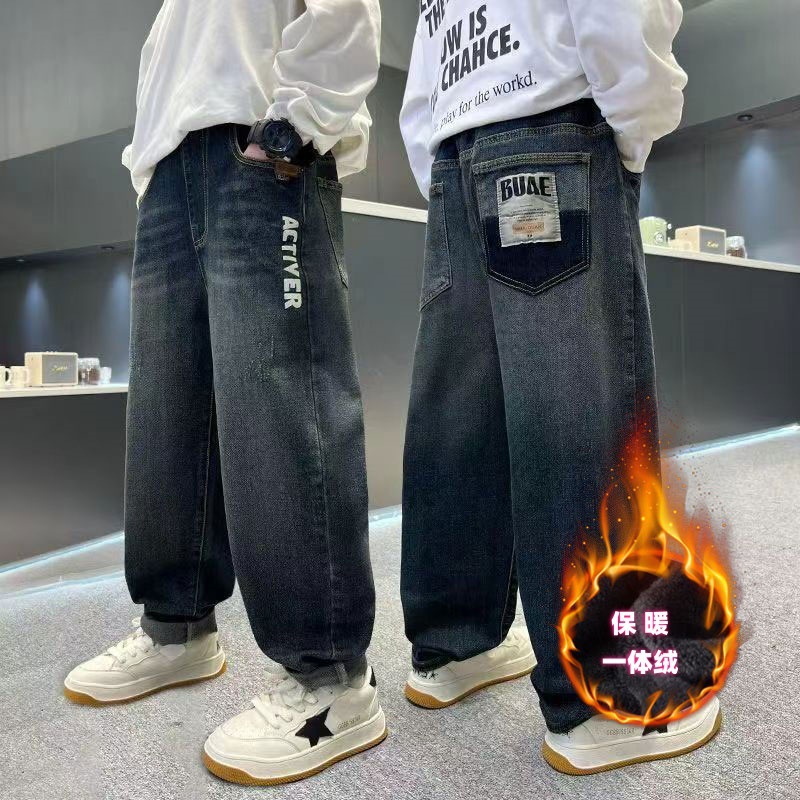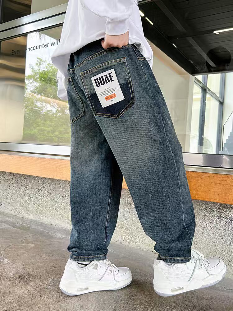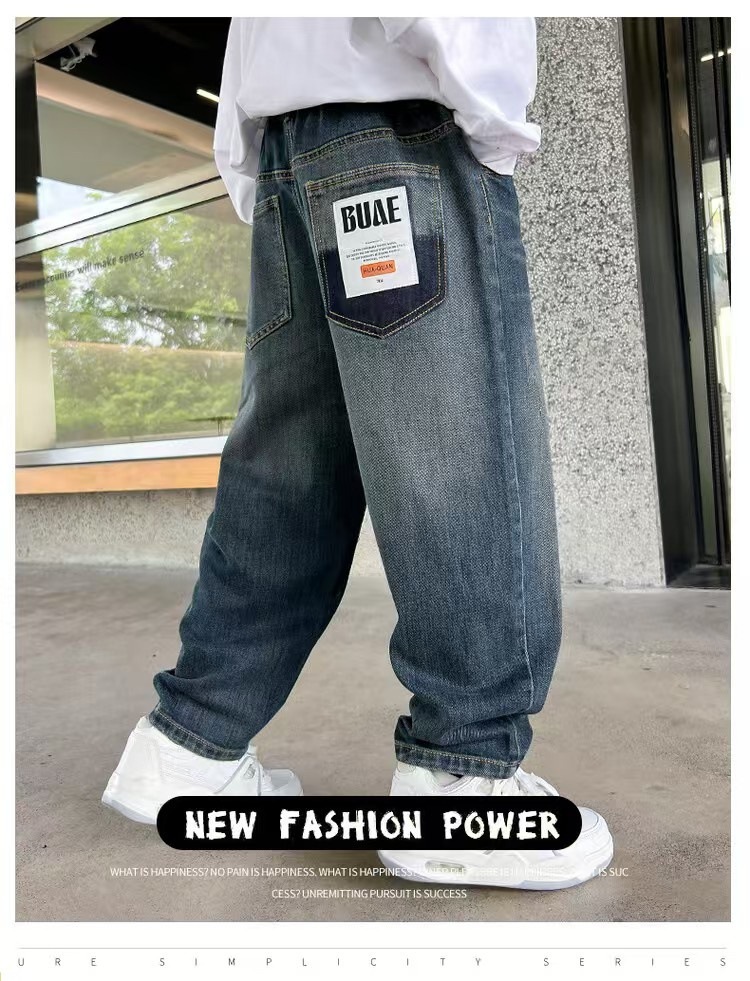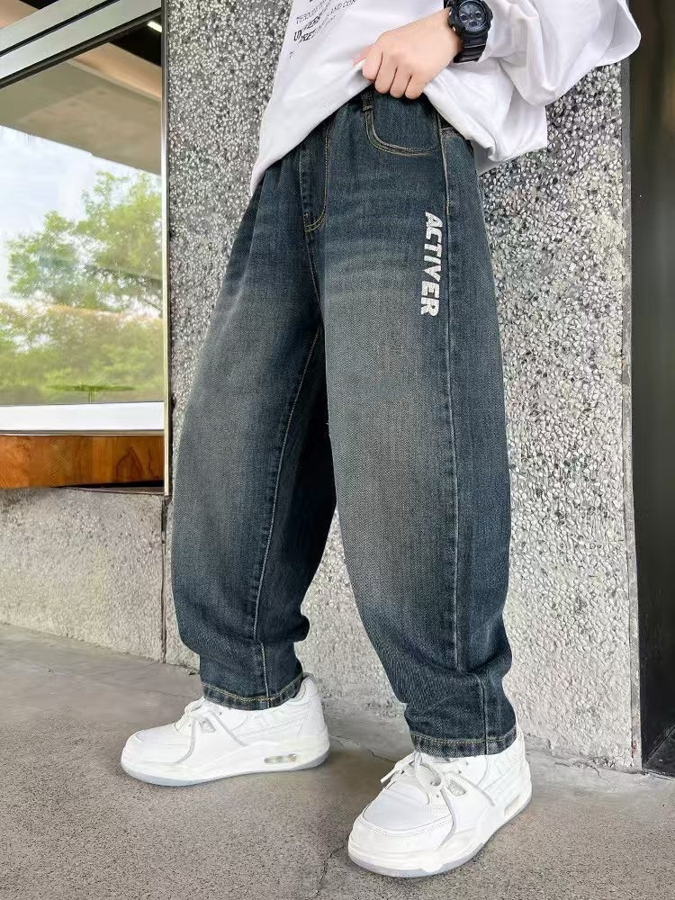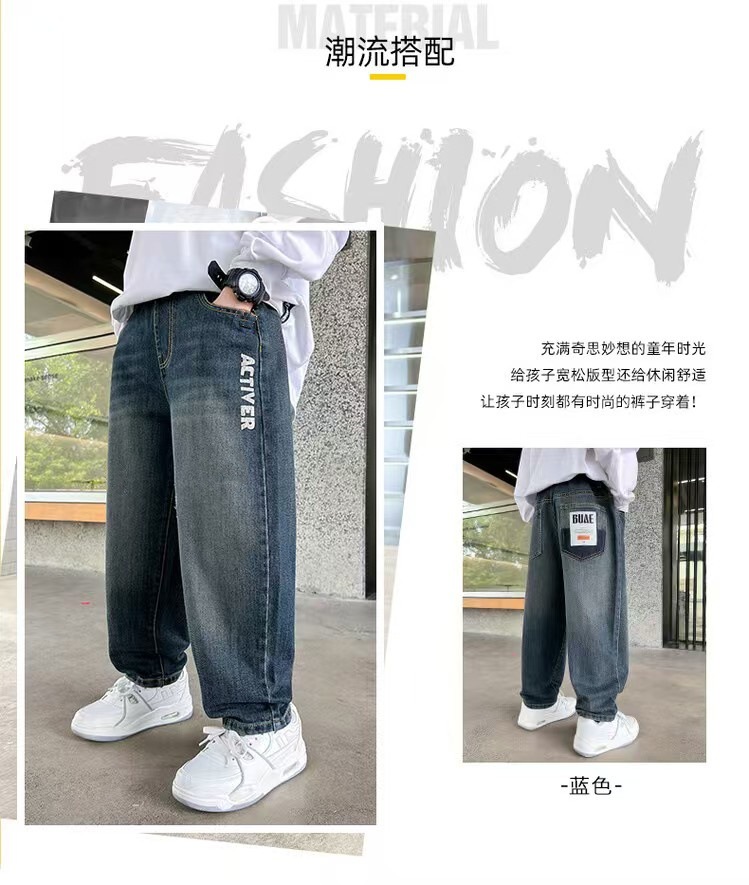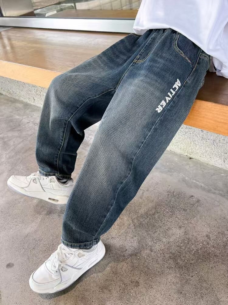 봄과 가을 소년 바지 새로운 스타일 중대형 아동 바지 소년 아동복 루즈한 청바지 트렌디한 루즈한 스트레이트 팬츠