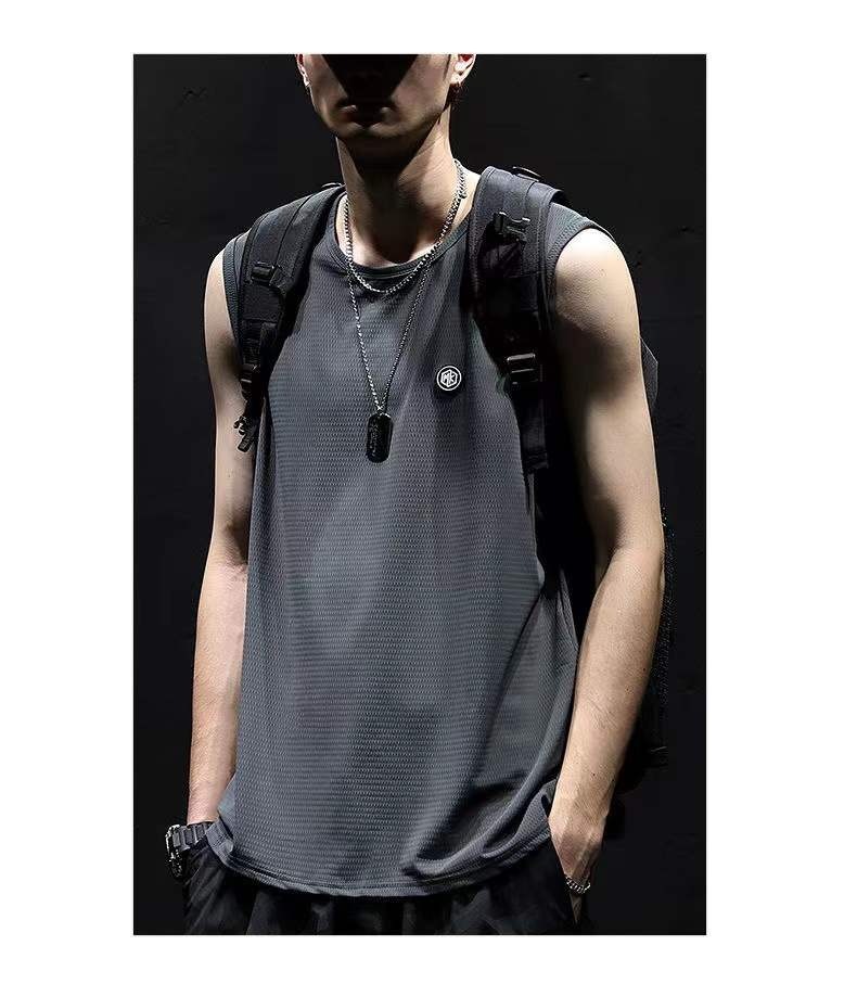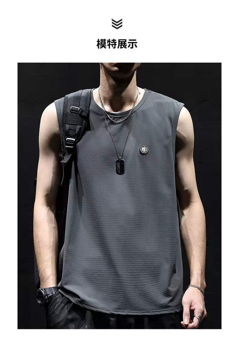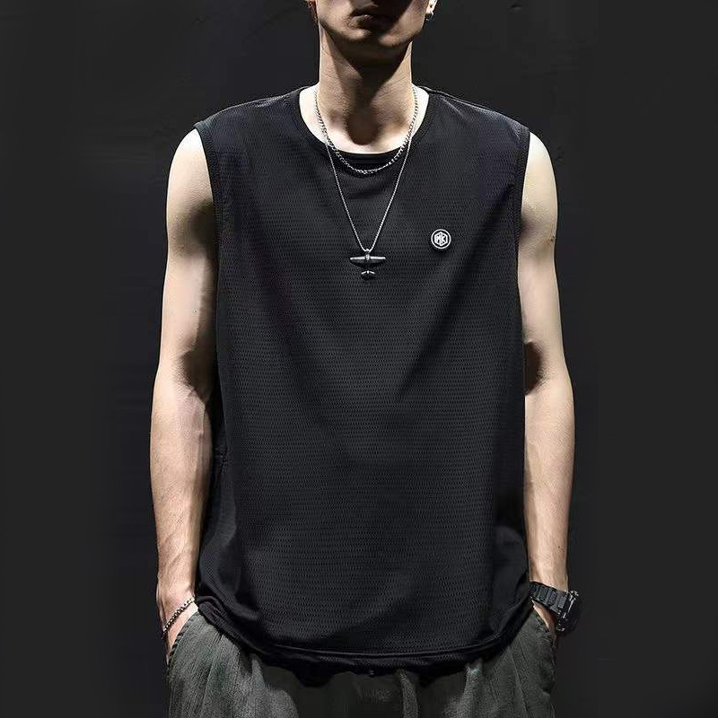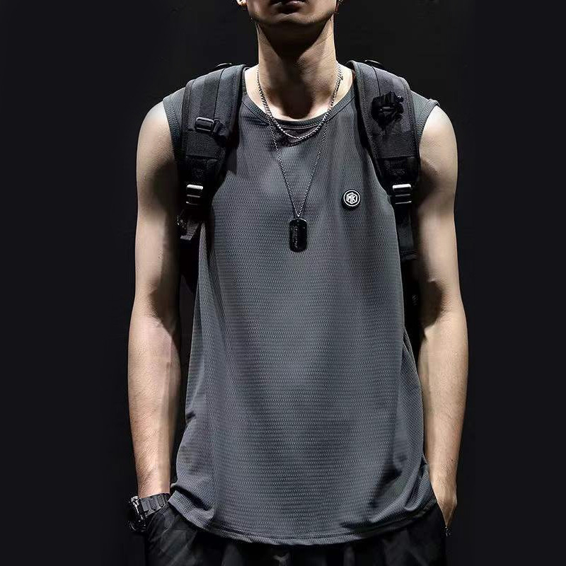 여름 새로운 아이스 실크 빠른 건조 조끼 남자 허리 코트 느슨한 플러스 사이즈 남자 스포츠 농구 피트니스 민소매 티셔츠 트렌디스토어 가기