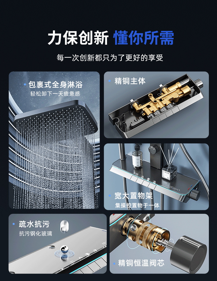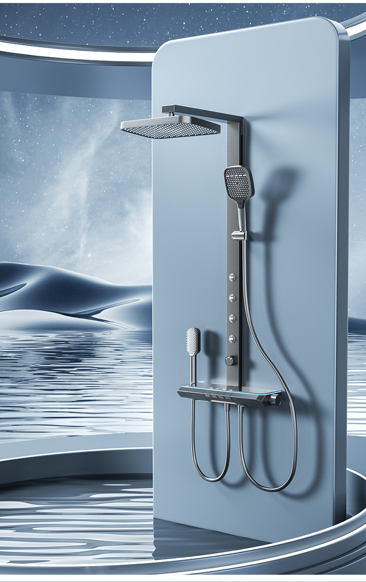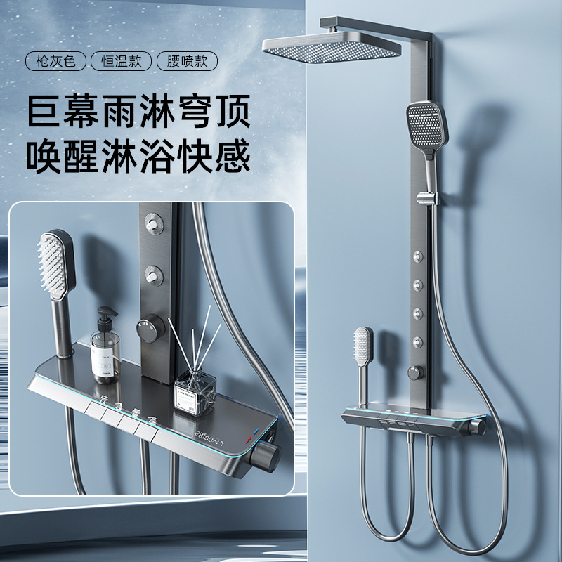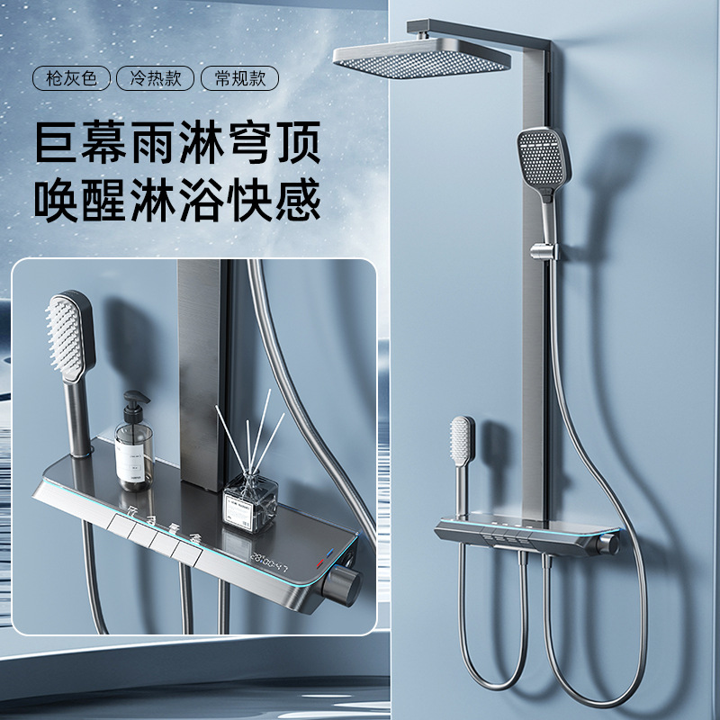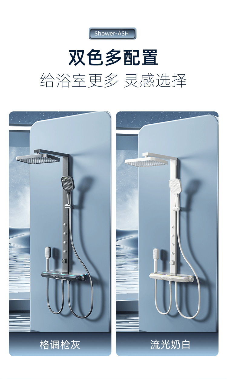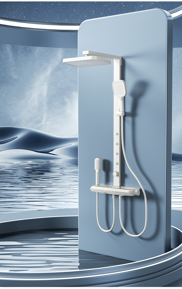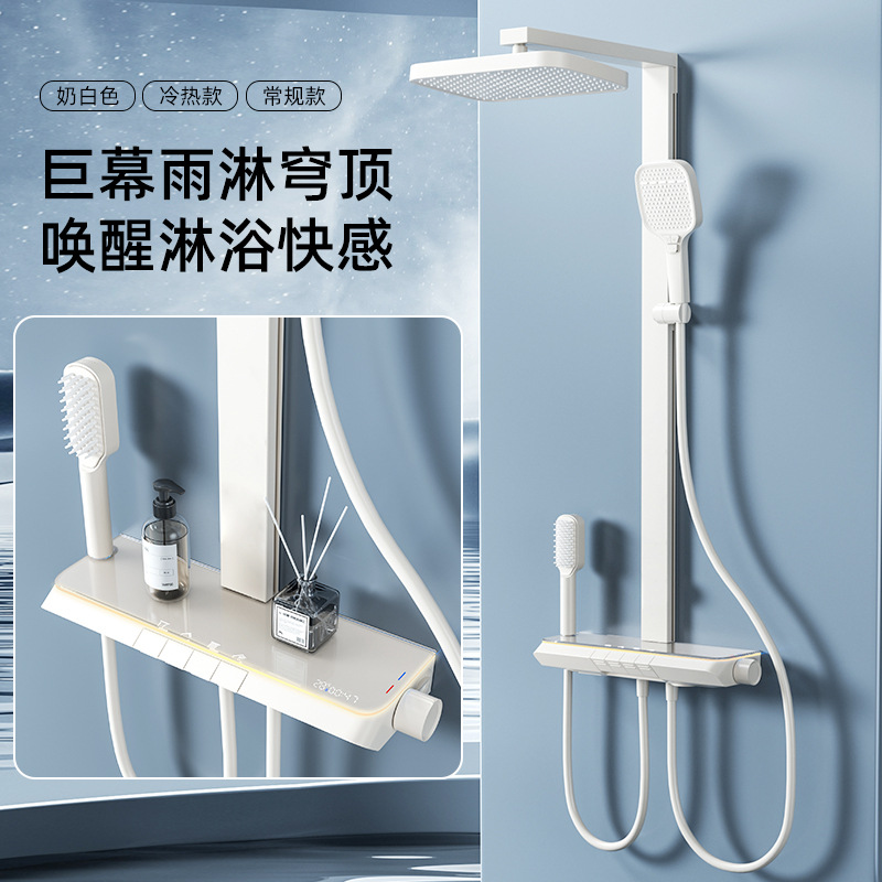새로운 샤워 헤드 세트 홈 미니멀리스트 밀크 화이트 일정한 온도 목욕 욕실 스마트 디지털 디스플레이 레인 샤워 헤드