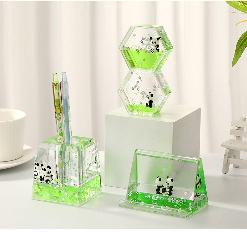 새로운 팬더 인형 플로팅 오일 드롭 데스크탑 장식품 생일 선물 압축 오일 드롭 장식 장난감 오일 드롭 장식품