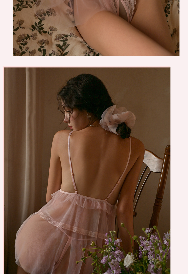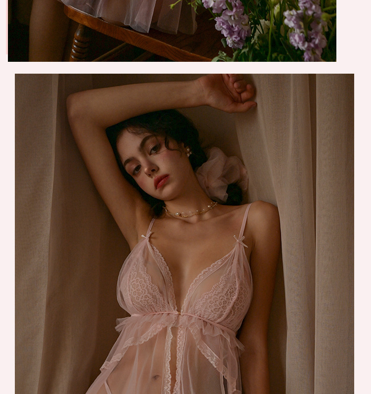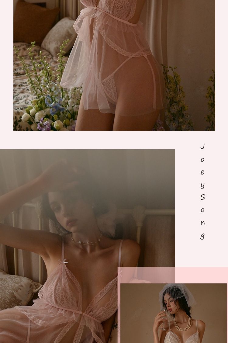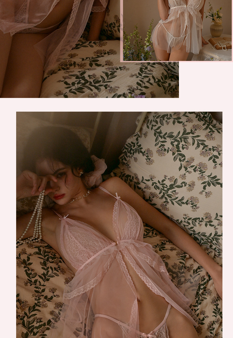 프론트 슬립 유혹 레이스 섹시한 파자마 여성 여름 감정적 인 개인 메쉬 나이트 드레스 세트 속옷 JYS768