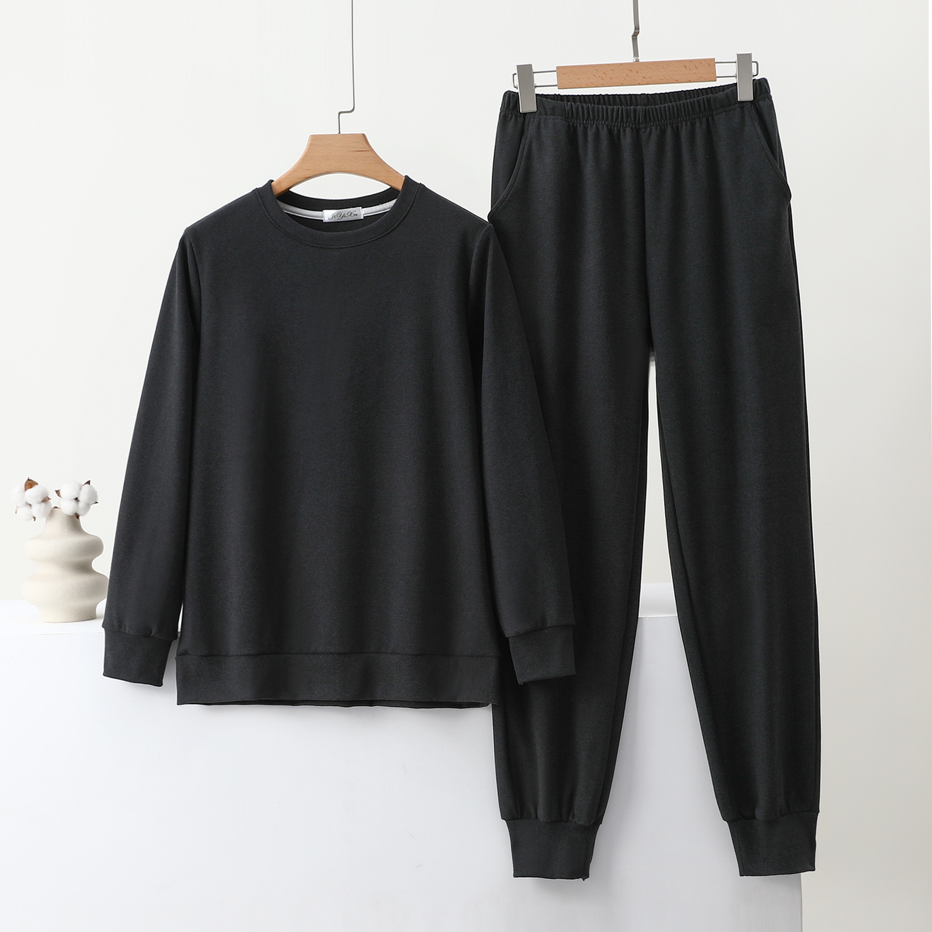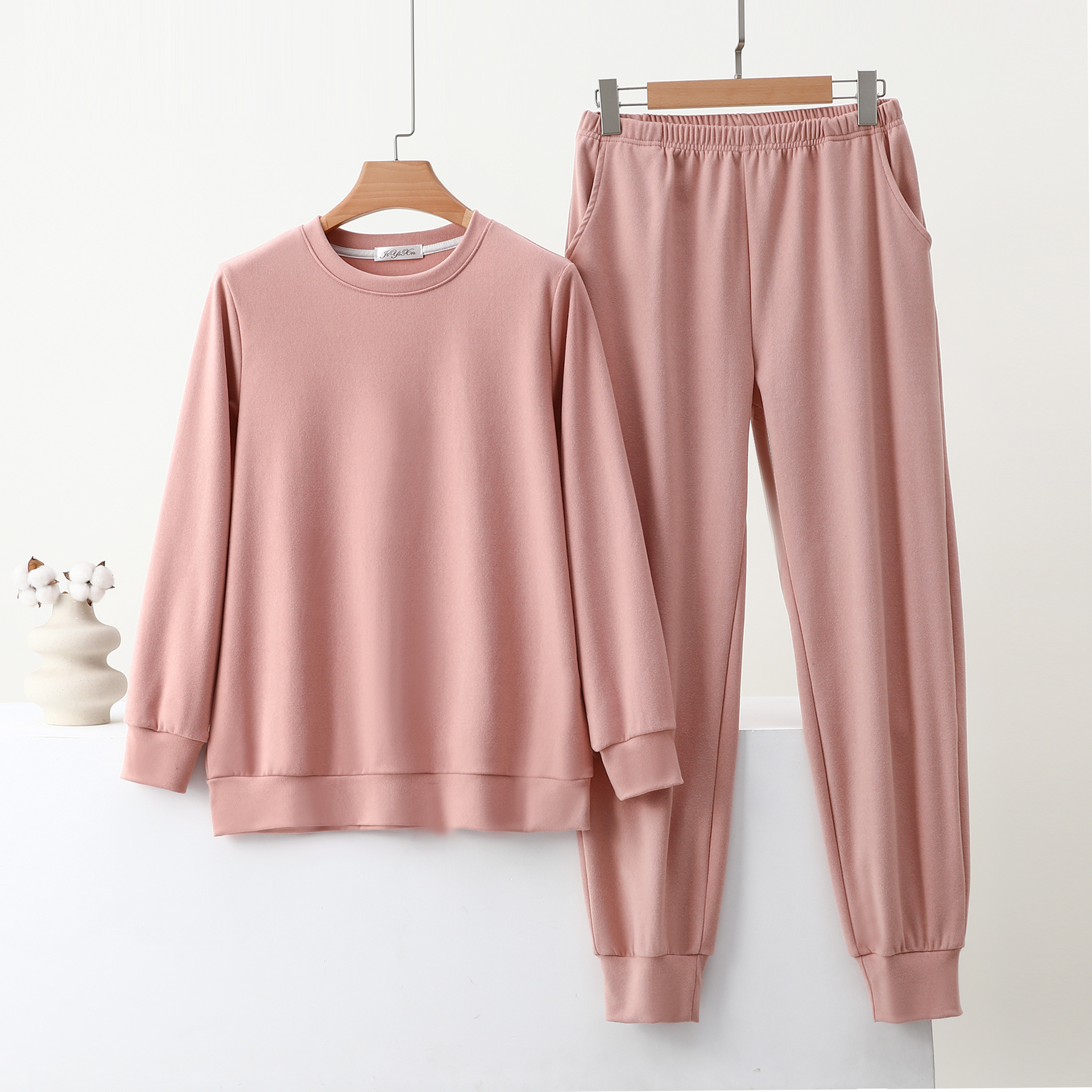독일 벨벳 크루 넥 긴팔 스웨터 팬츠 캐주얼 스포츠 투피스 가을과 겨울 느슨한 올 매치 두꺼운 따뜻한 세트