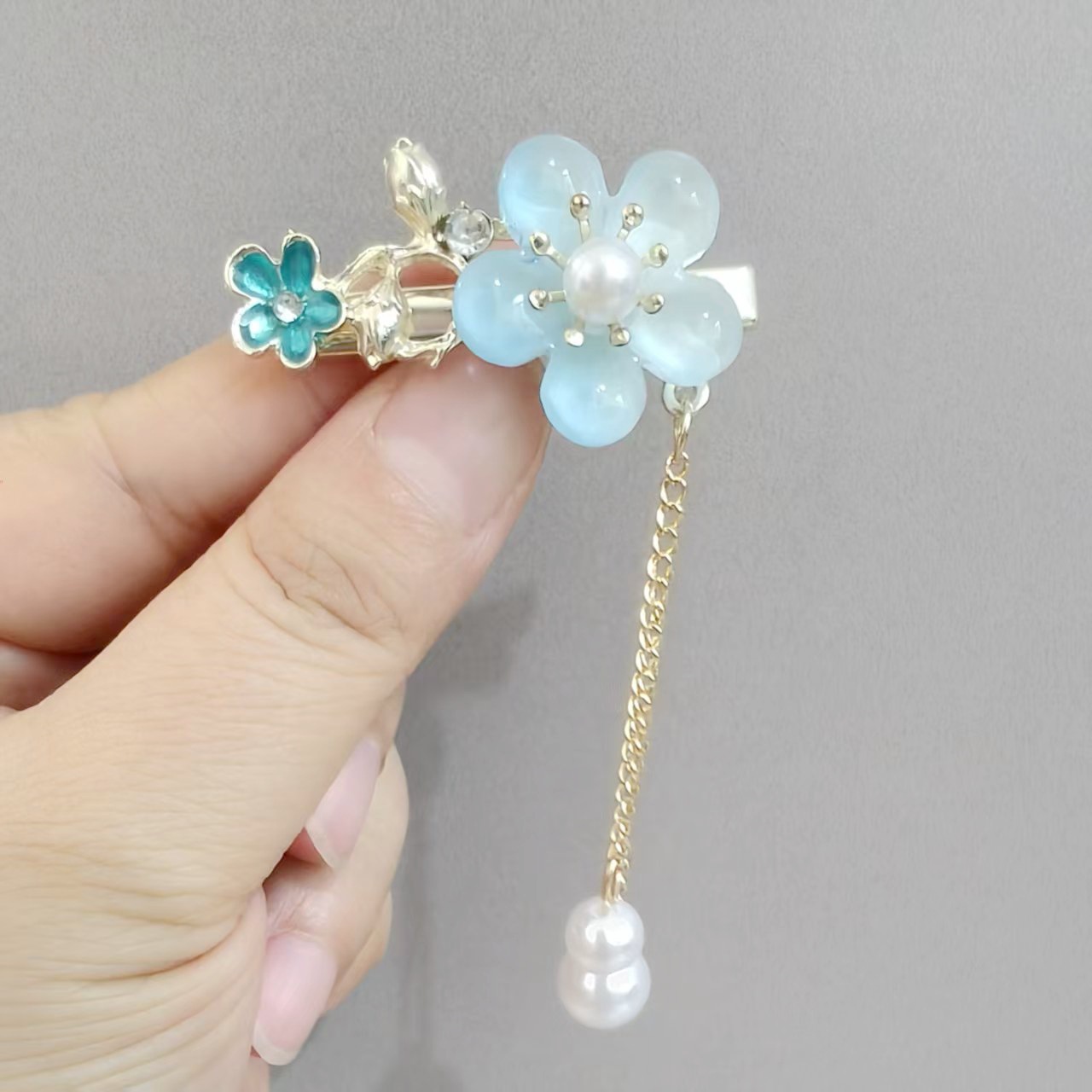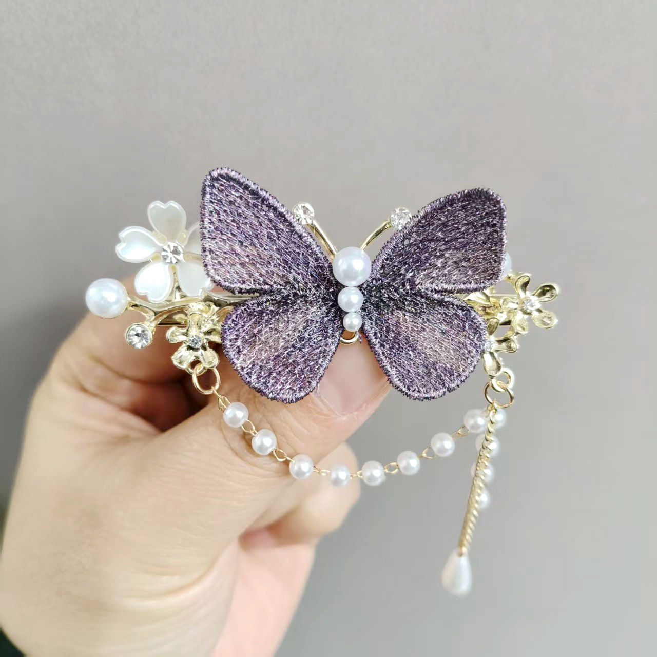 새로운 라인스톤 팬 골동품 술 사이드 덕빌 클립 하이 센스 우아한 팬 헤어핀 우아한 청삼 헤드웨어스토어 가기