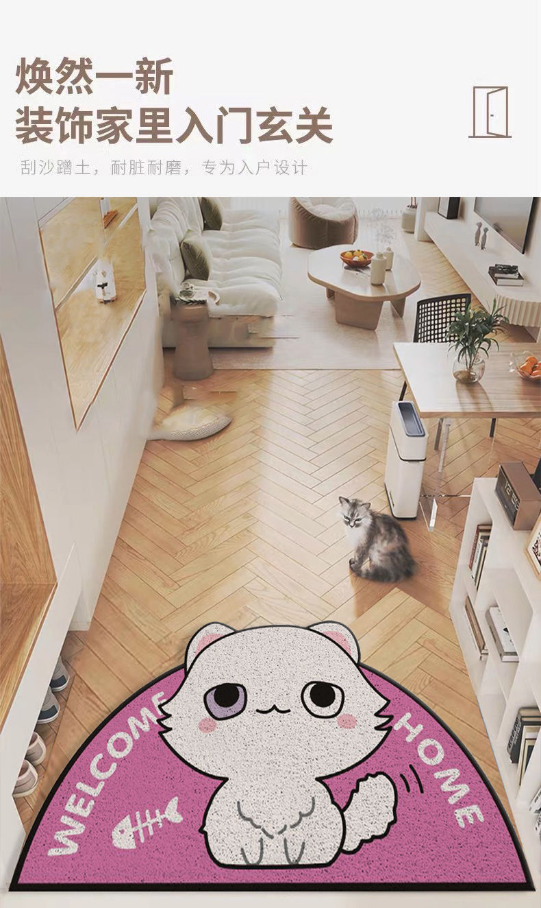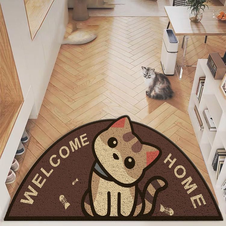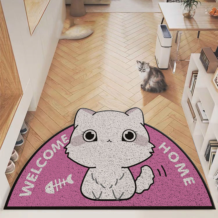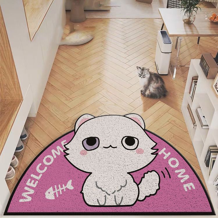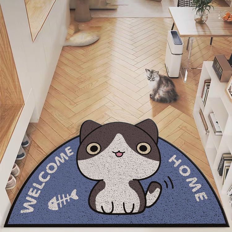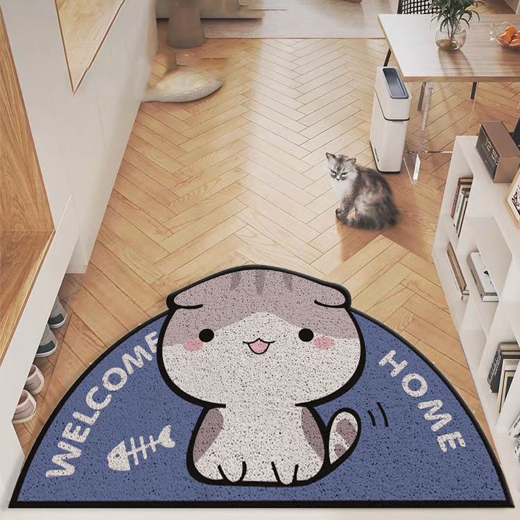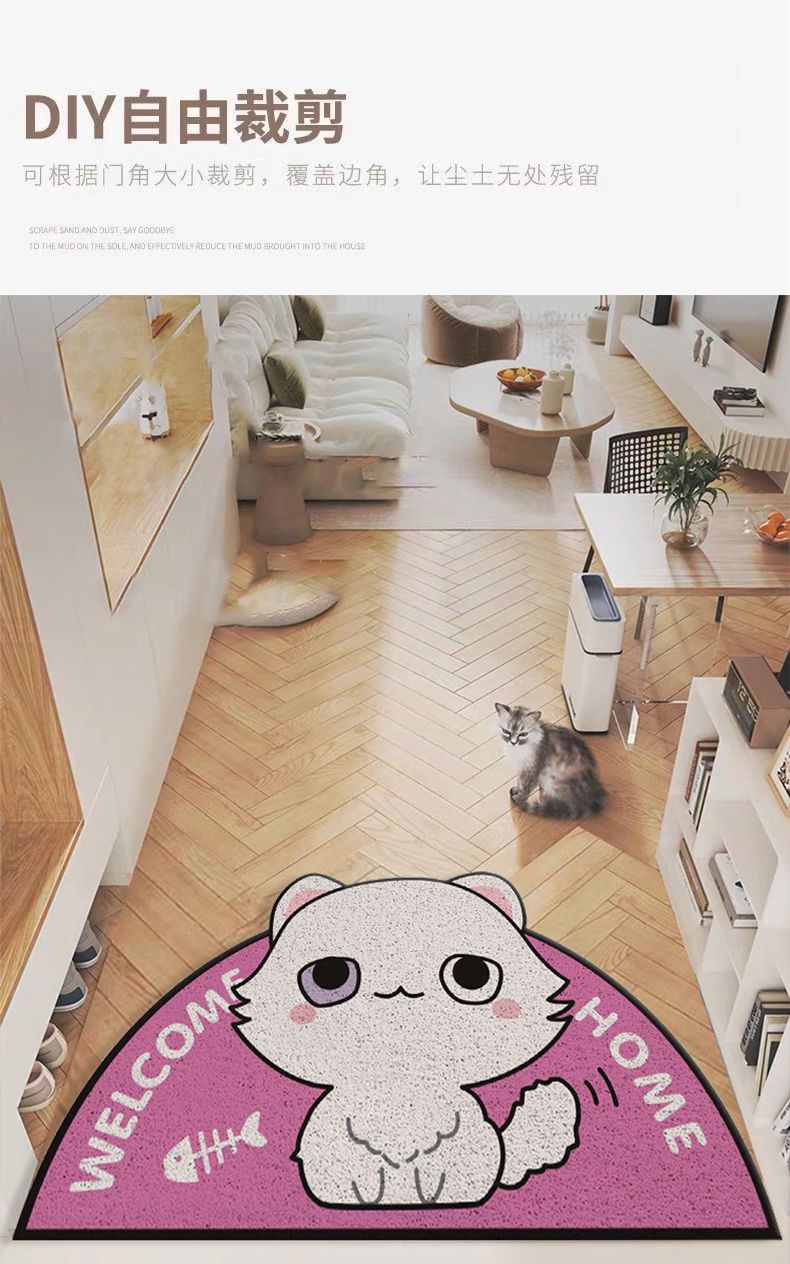 문 매트 만화 반원 문 입구 실크 루프 발 매트 문 긁기 진흙 문지름 발 매트 절단 가능한 바닥 매트