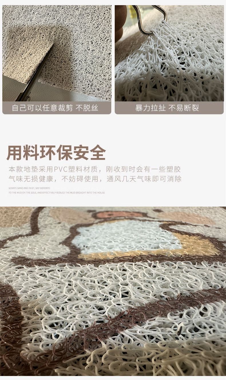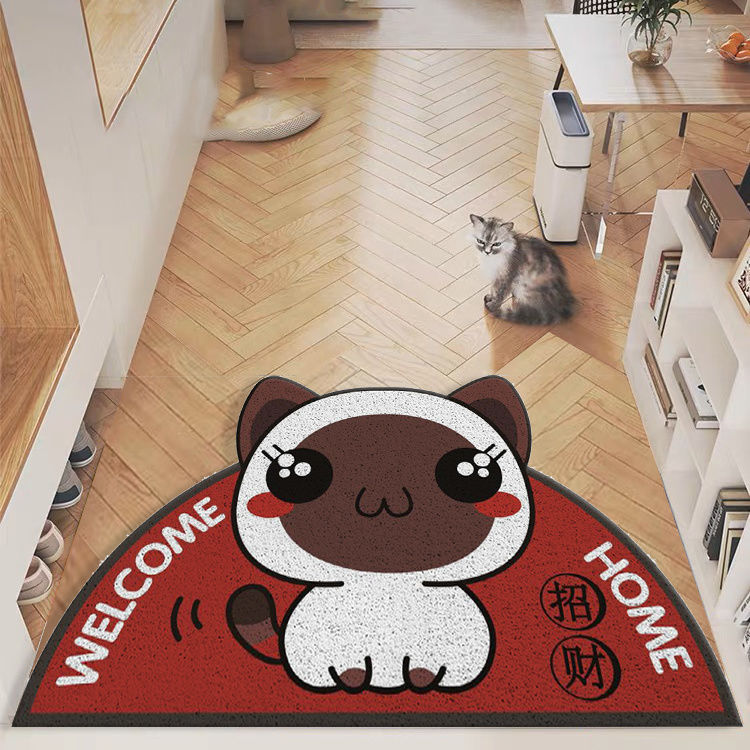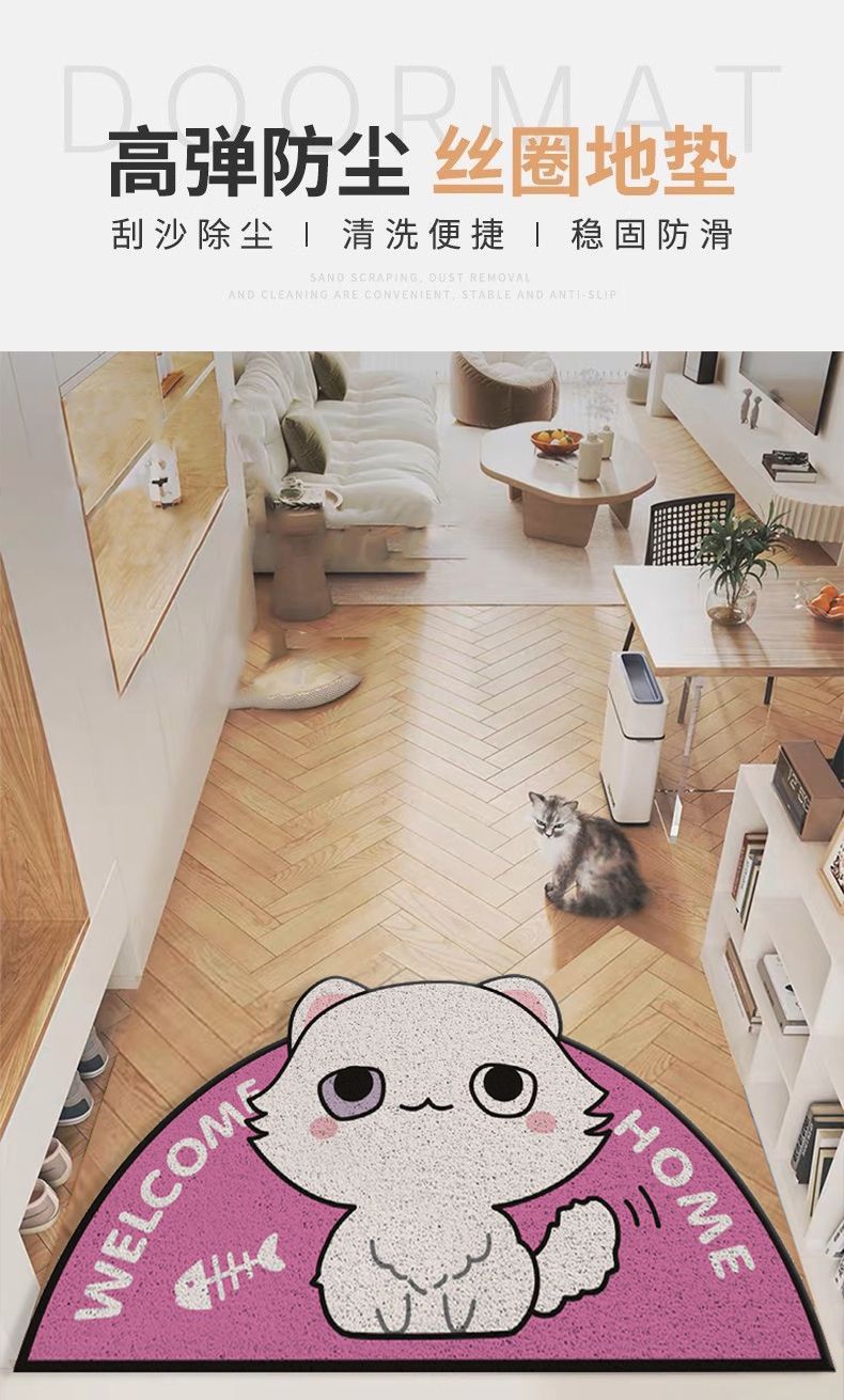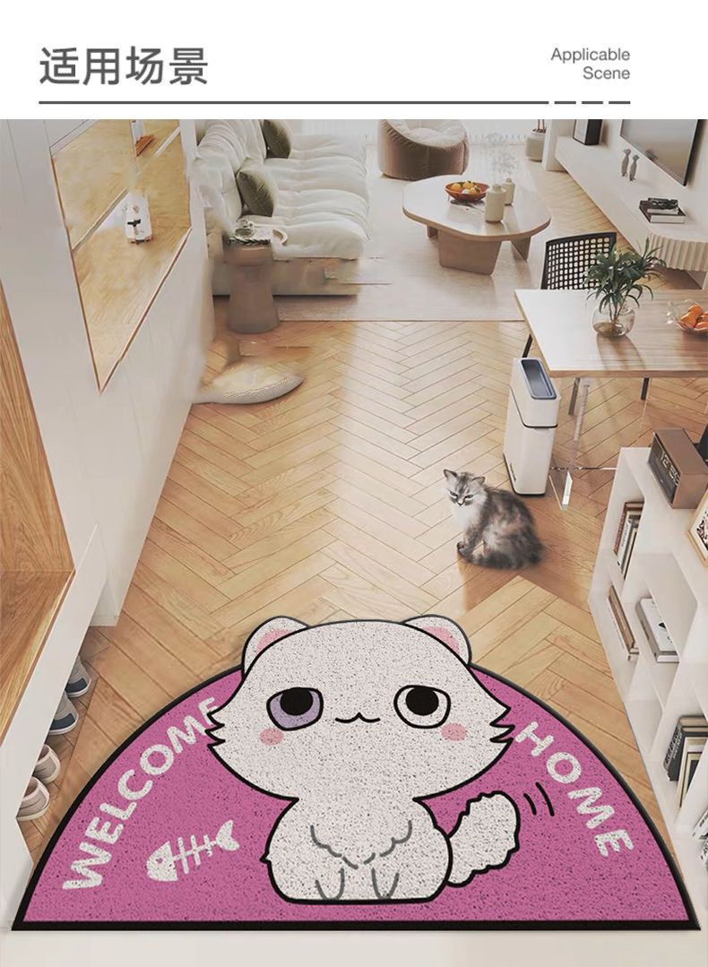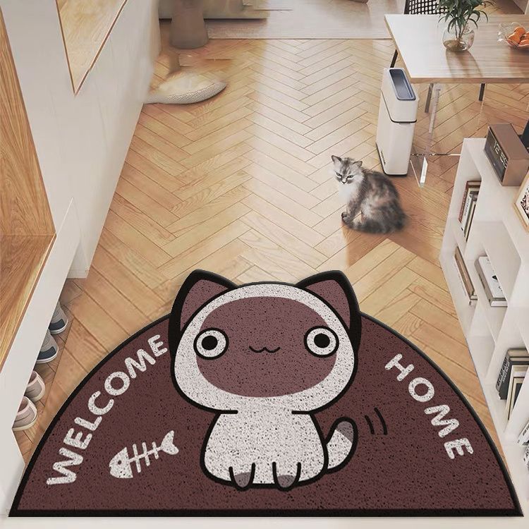 문 매트 만화 반원 문 입구 실크 루프 발 매트 문 긁기 진흙 문지름 발 매트 절단 가능한 바닥 매트