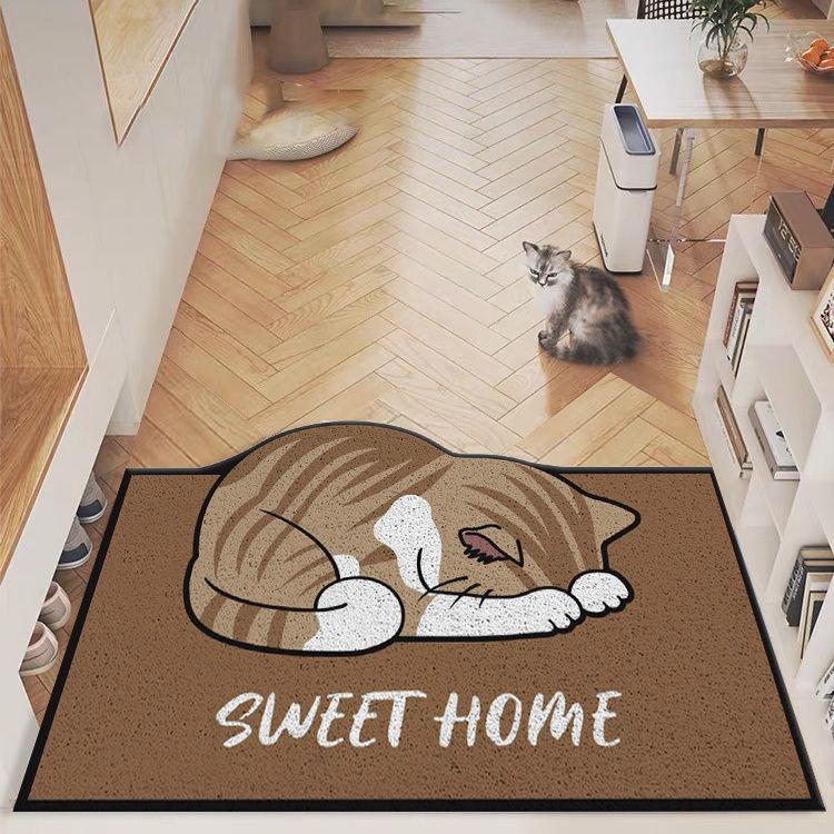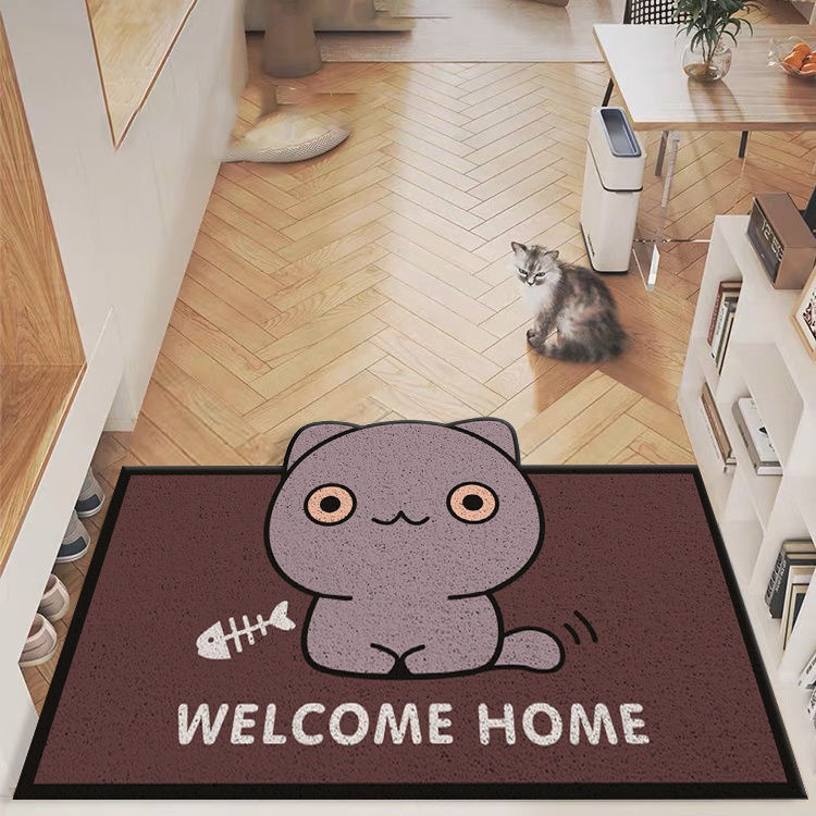 문 매트 만화 반원 문 입구 실크 루프 발 매트 문 긁기 진흙 문지름 발 매트 절단 가능한 바닥 매트스토어 가기