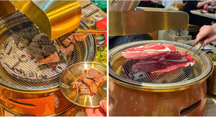 바베큐 숍 대형 한국식 숯 그릴 오븐 오렌지 숯 바베큐 오븐 상업용 상부 연기 바베큐 오븐