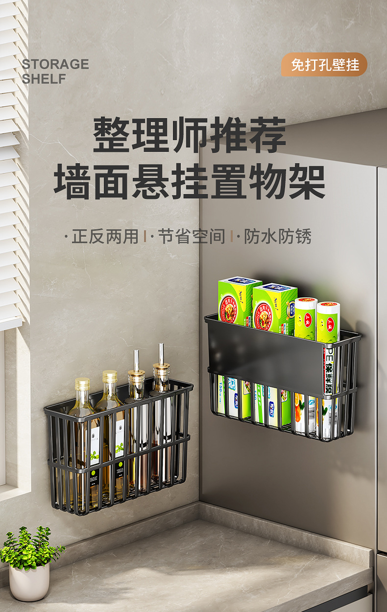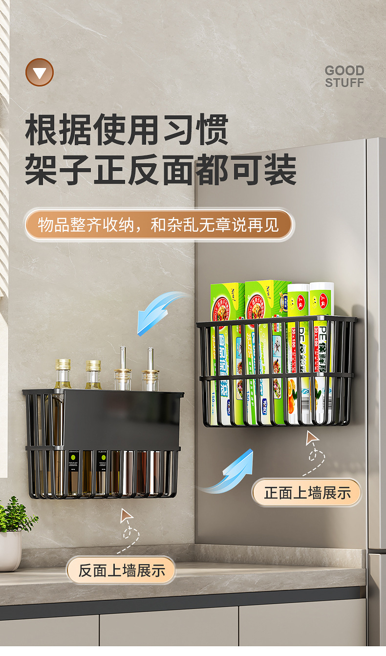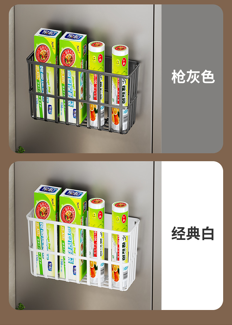 주방 냉장고 수납 선반, 신선도 유지 봉투, 티슈, 조미료, 랩 보관용 사이드 클립형 정리대