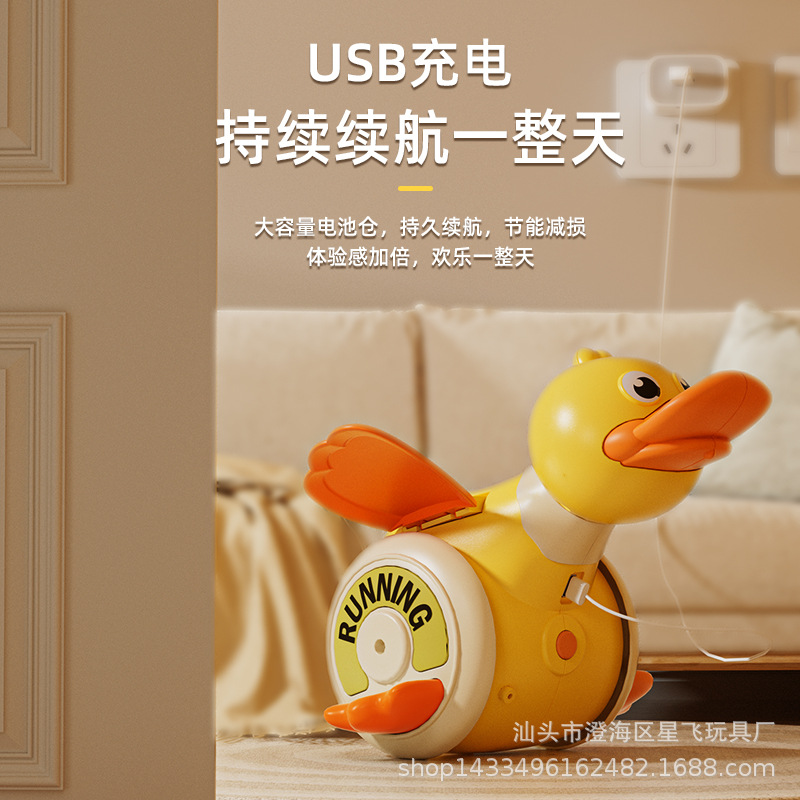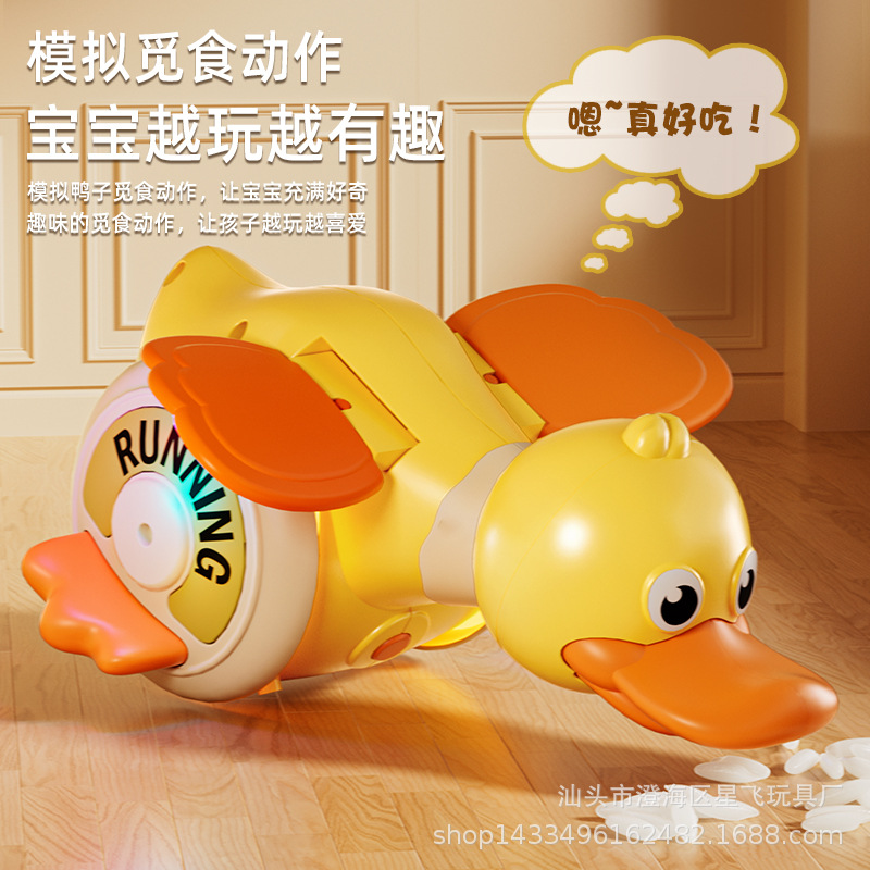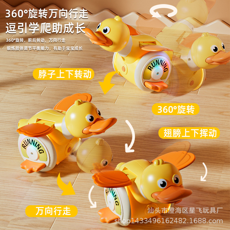 장난감을 오르는 법을 배우기위한 새로운 전기 유니버설 로타리 오리 아이들의 재미있는 소리와 가벼운 로타리 오리 아기 가이드