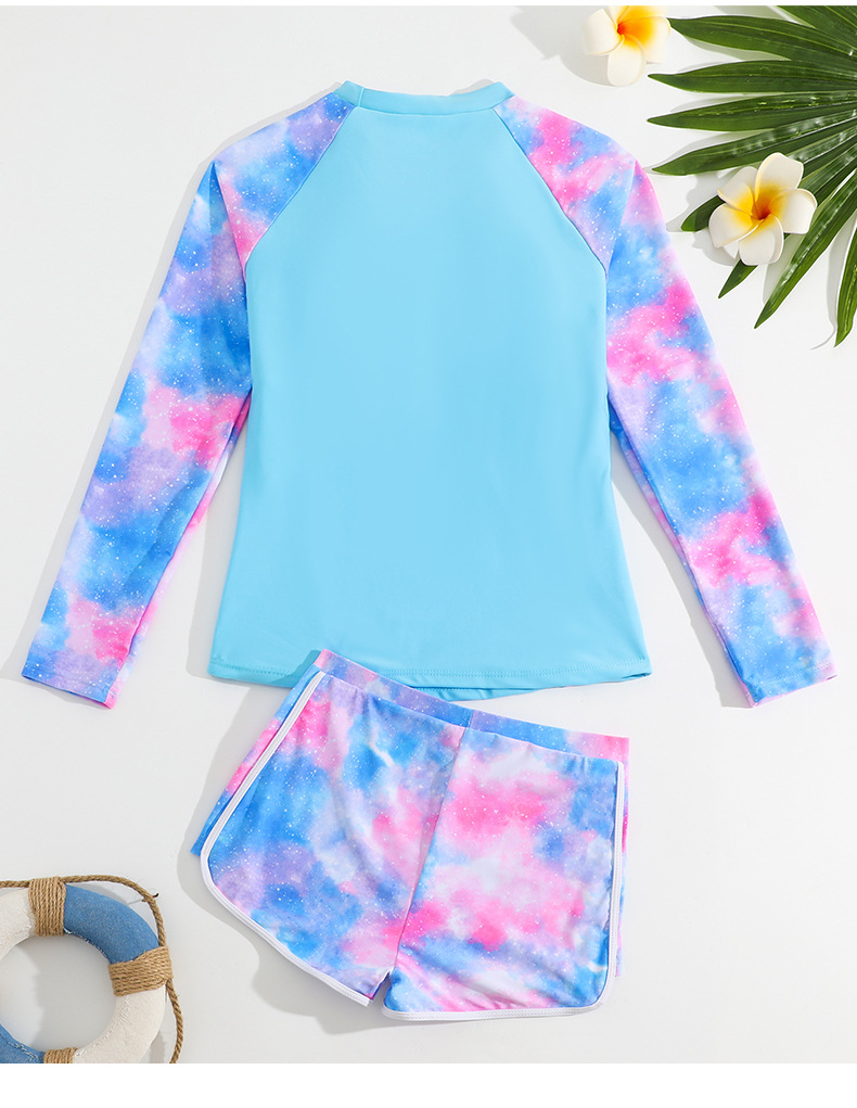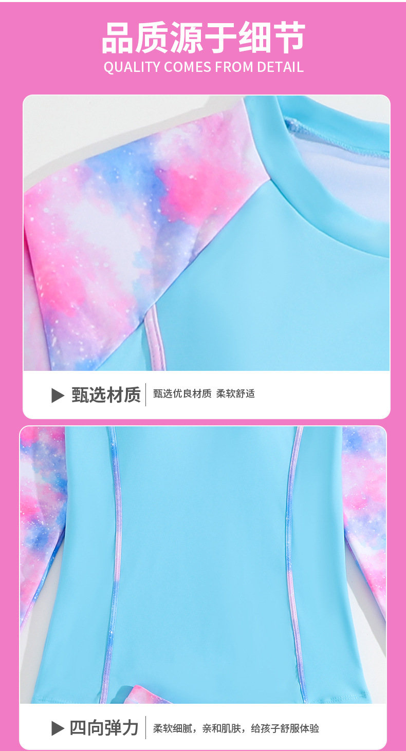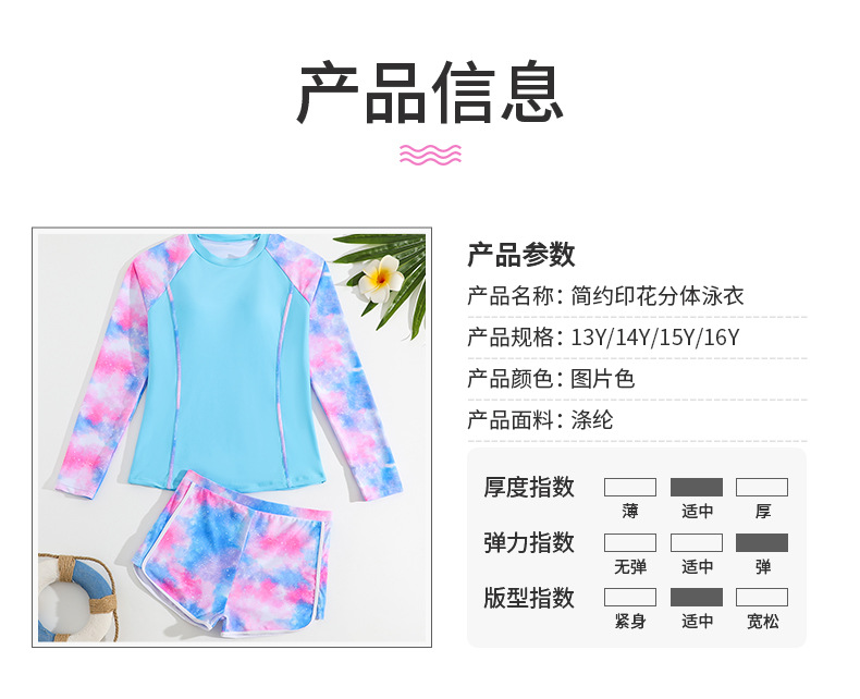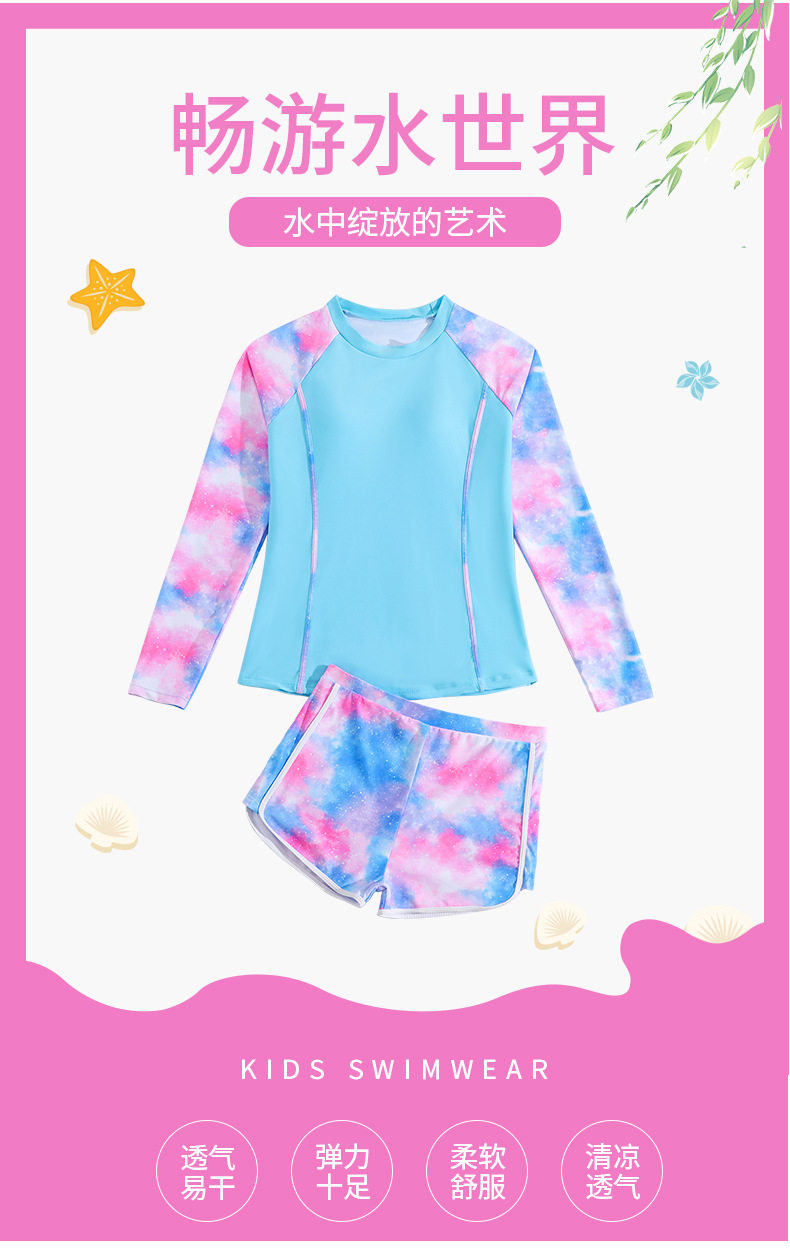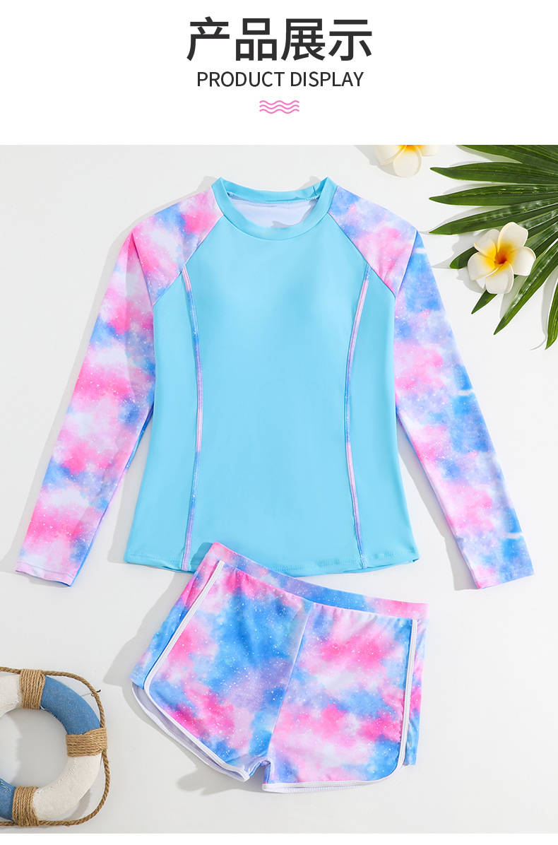 2025 새로운 어린이 스플릿 수영복 긴팔 크로스 보더 소녀 대외 무역 투피스 세트 간단한 소녀 반바지 수영복스토어 가기