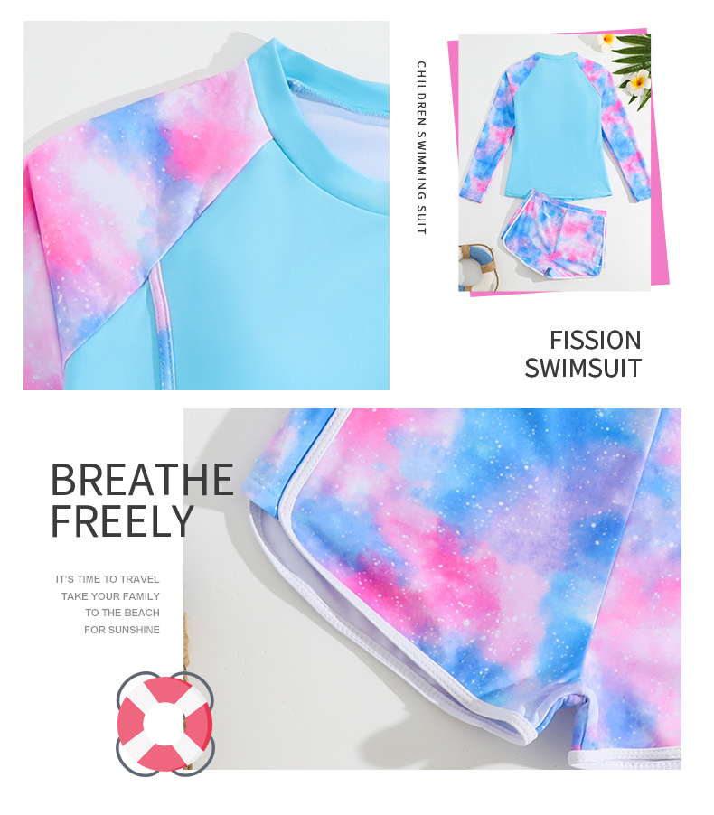 2025 새로운 어린이 스플릿 수영복 긴팔 크로스 보더 소녀 대외 무역 투피스 세트 간단한 소녀 반바지 수영복