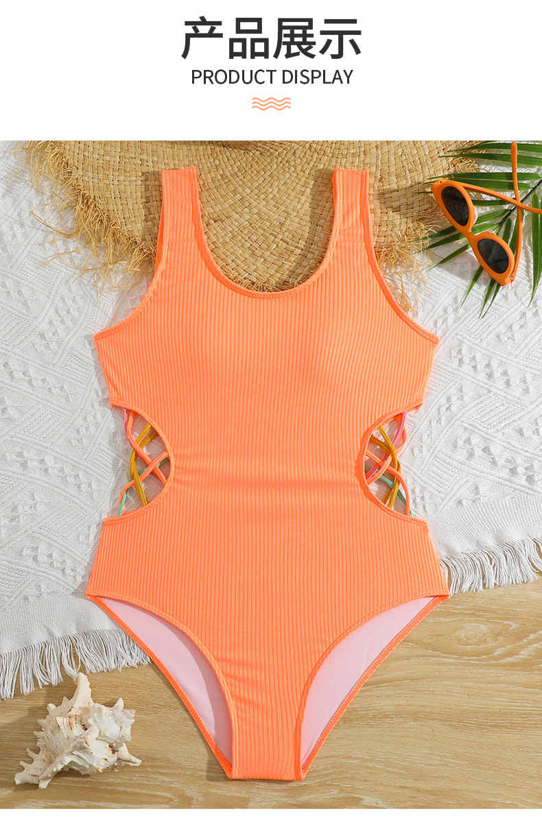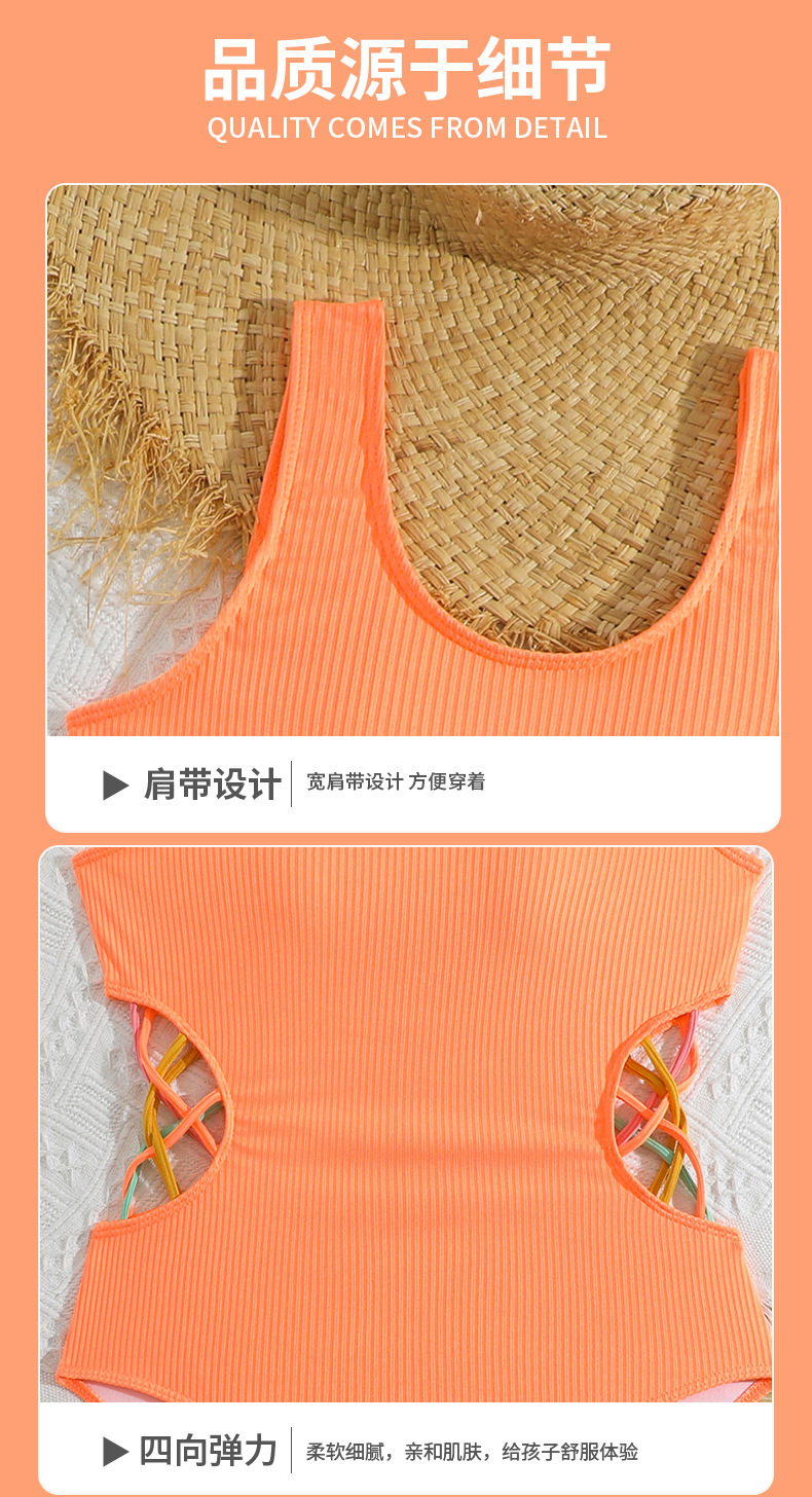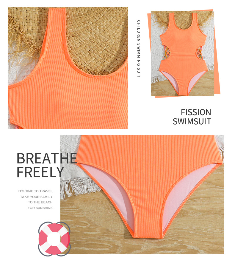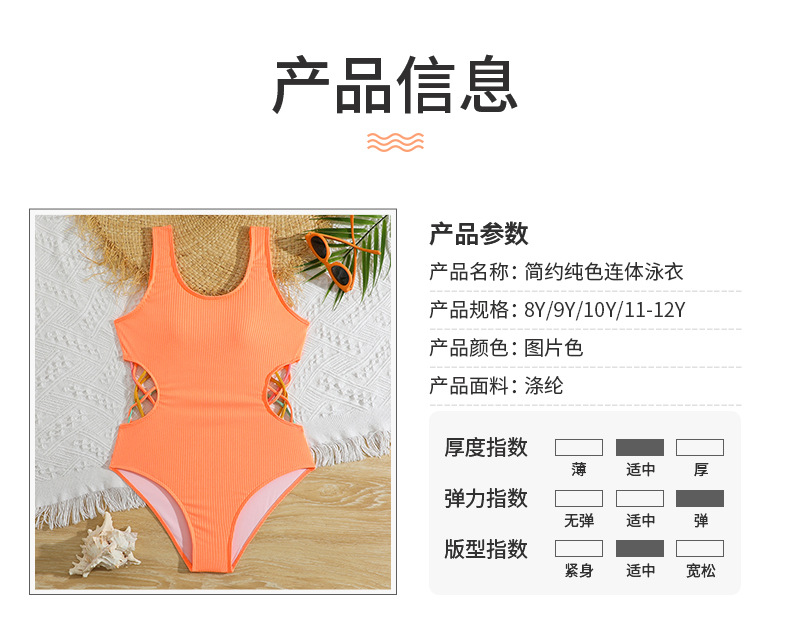 2025 새로운 원피스 수영복 어린이 솔리드 컬러 허리 수영복 국경 간 제조 업체 도매 비키니 소녀 수영복