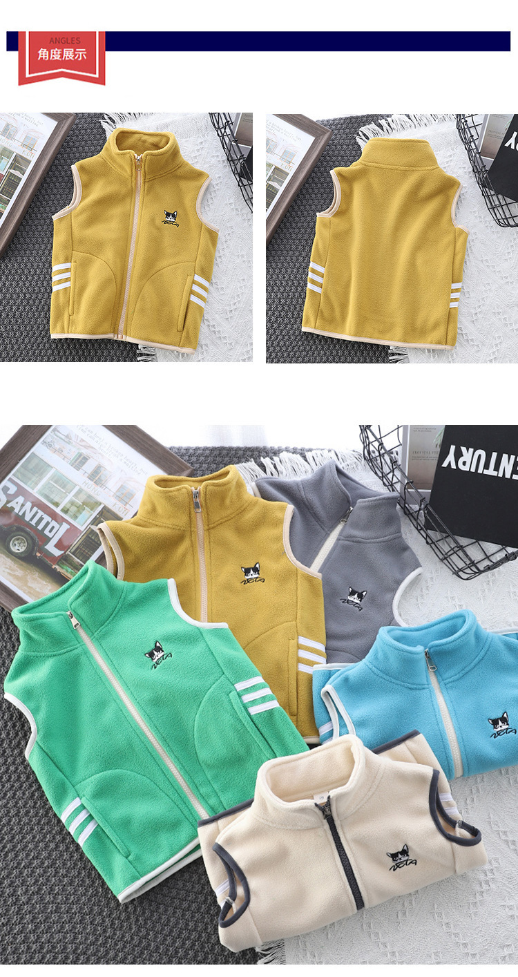 아동용 폴라 플리스 조끼 새로운 카디건 다용도 조끼 플러스 벨벳 소년 소녀 이너 탑 한국어 버전스토어 가기