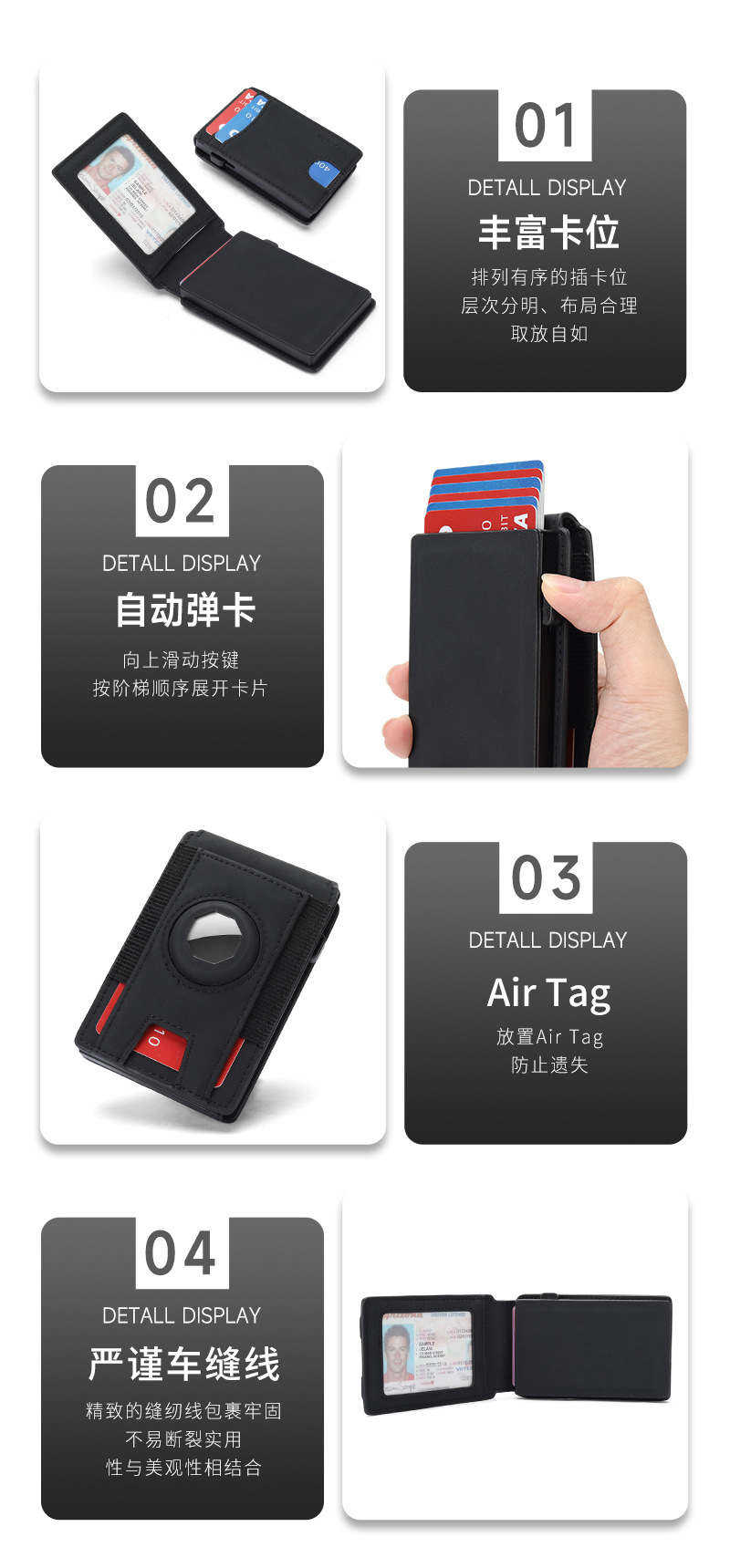 국경을 넘는 인기 상품 에어태그 지갑 남성용 도매 PU 자동 팝업 메탈 카드 케이스 지갑 남성용 고급형스토어 가기