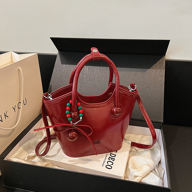 국경 간 트렌디 한 사우스 스타일 트렌디 한 체리 사랑 인터넷 연예인 핸드 토트 백 여성의 2024 새로운 도착 어깨 가방