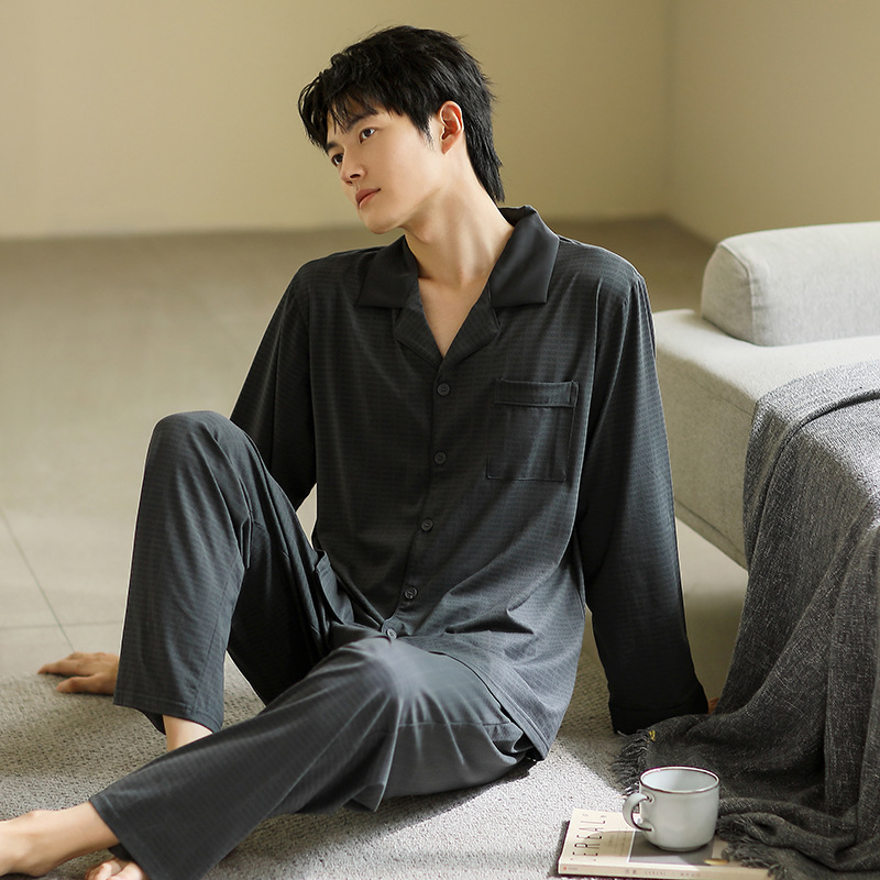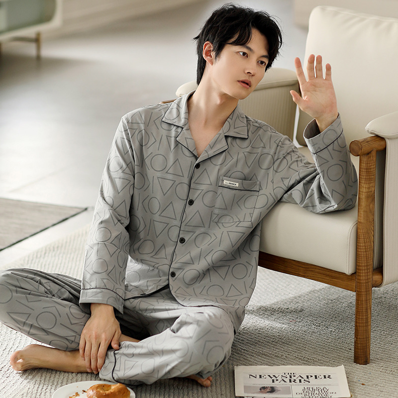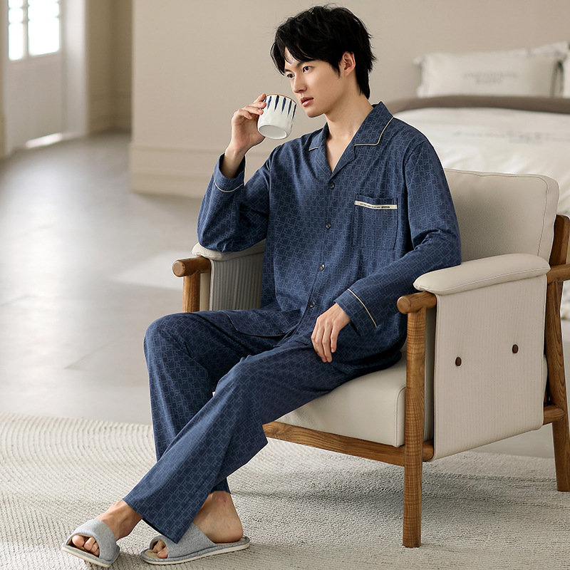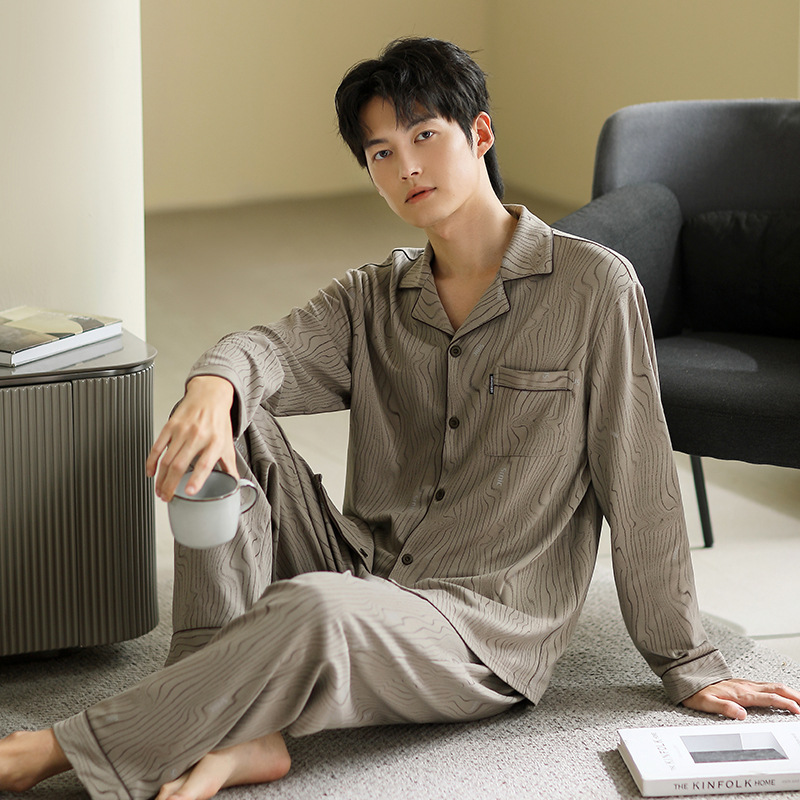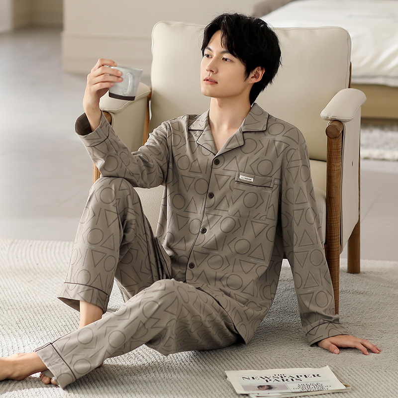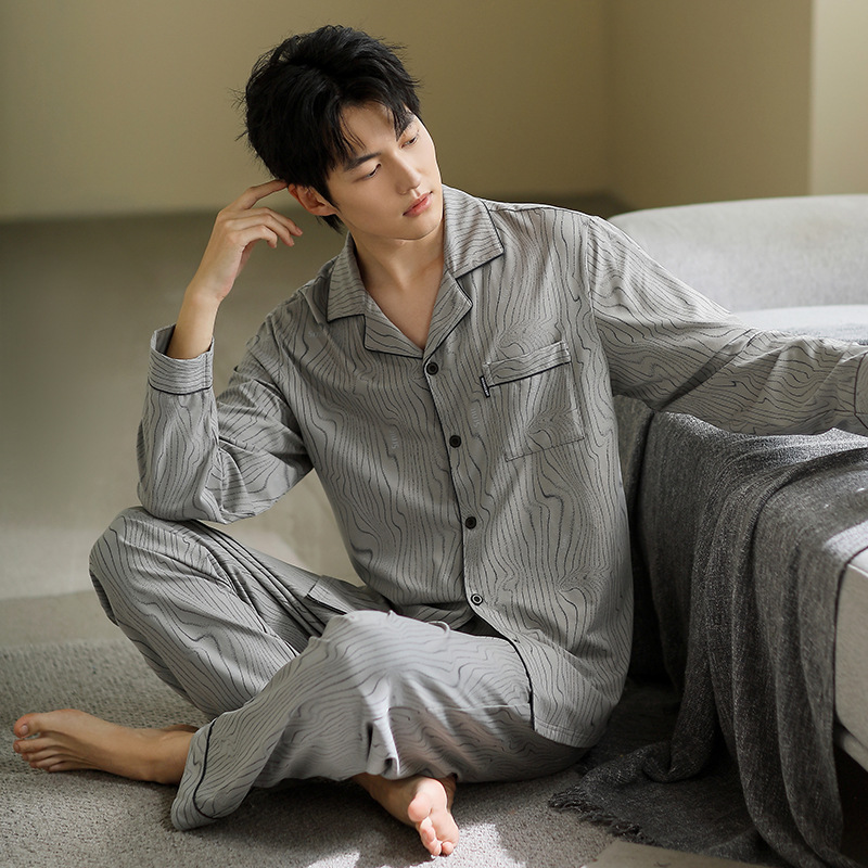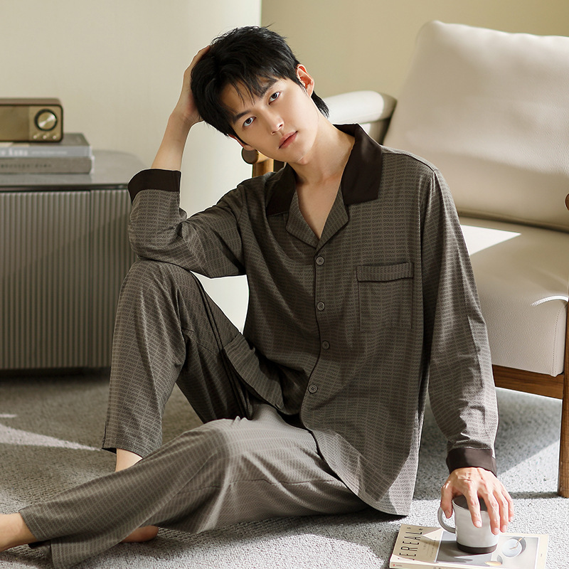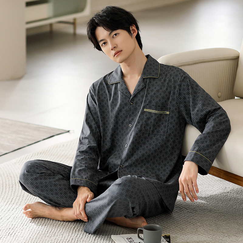 잠옷 남자 봄과 가을 면화 긴 소매 남자 2024 새로운 가을과 겨울 얇은 하이 엔드 감각 홈 의류스토어 가기