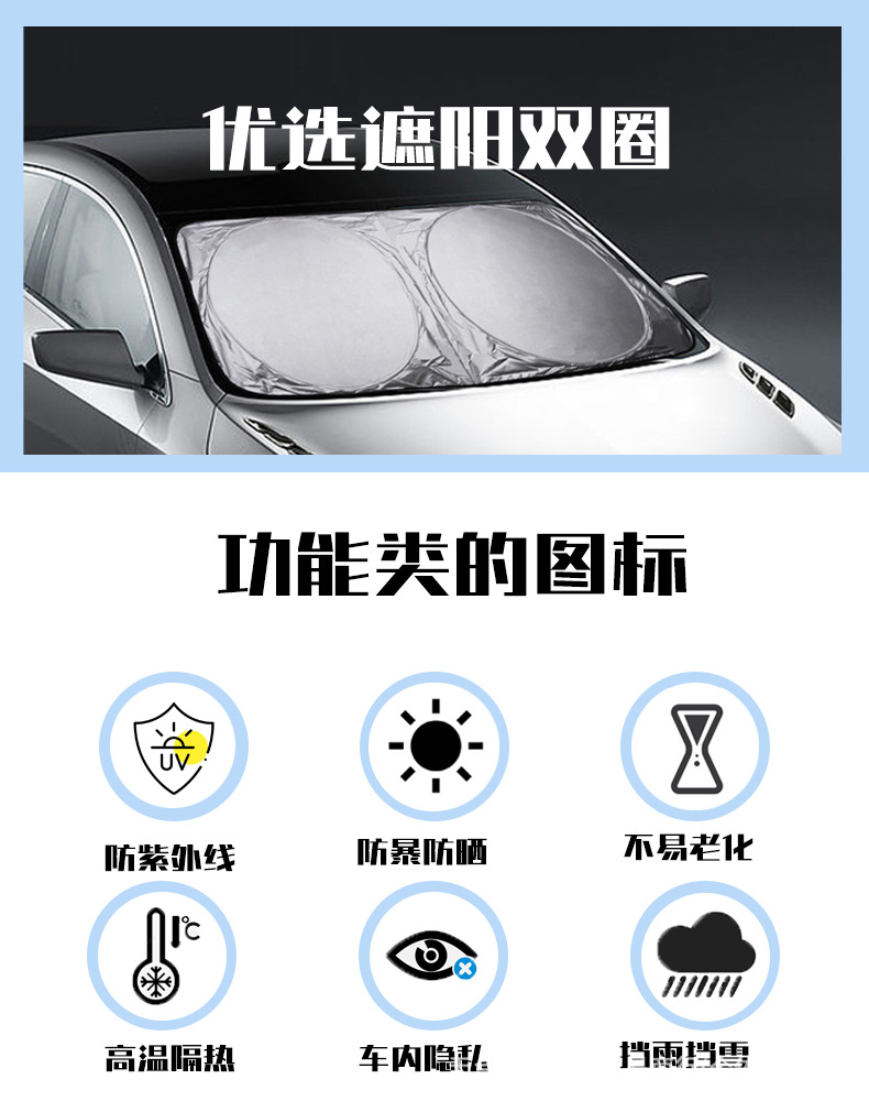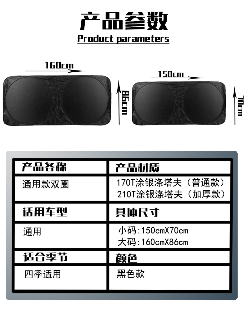 자동차 앞유리용 폴리에스터 은코팅 이중원형 햇빛가리개, 자외선 차단, 단열, 접이식, 눈부심 방지