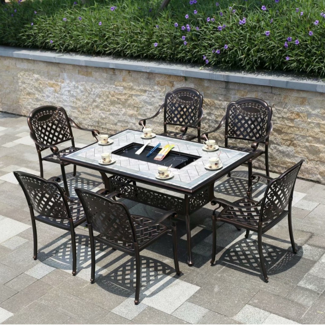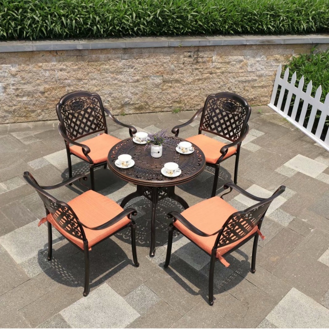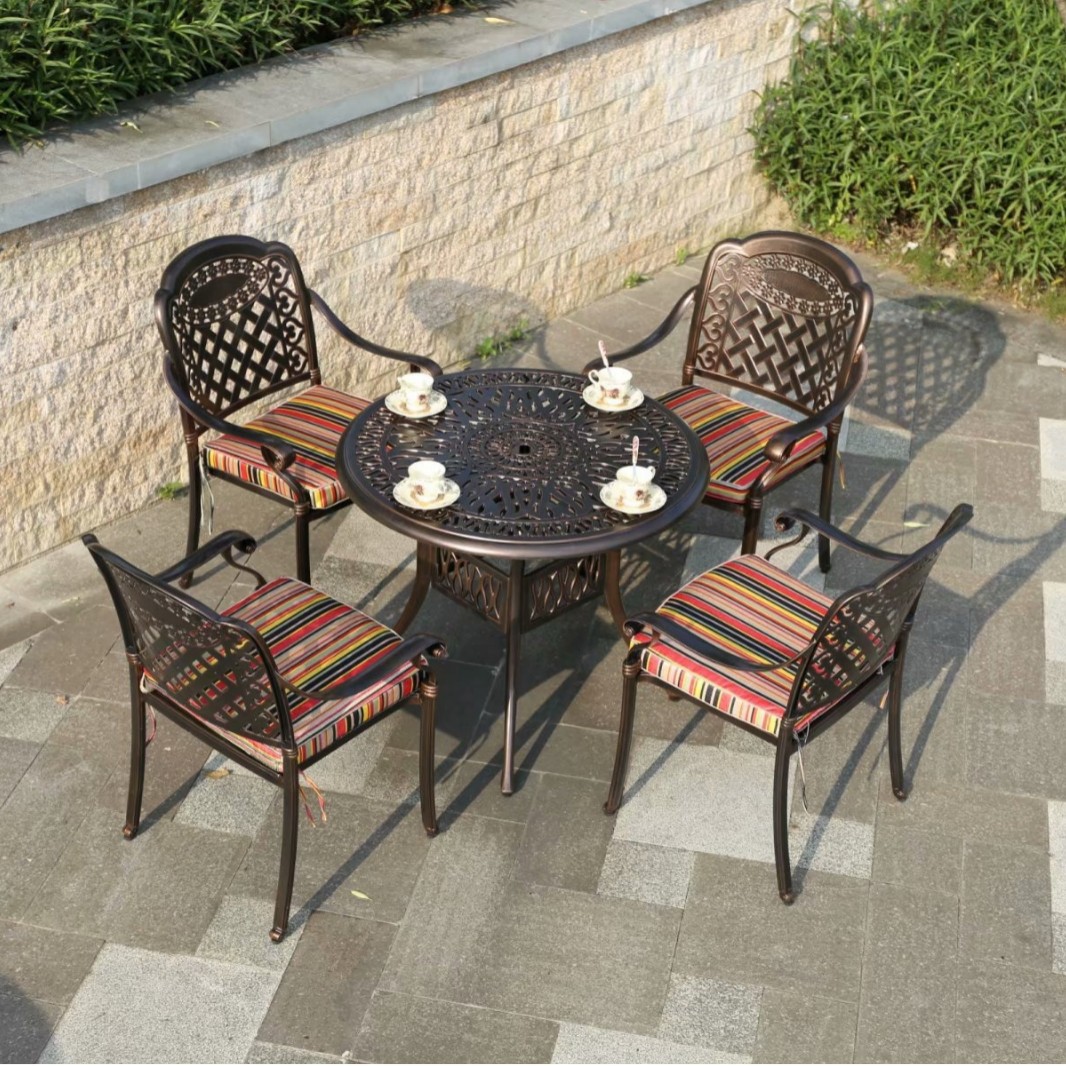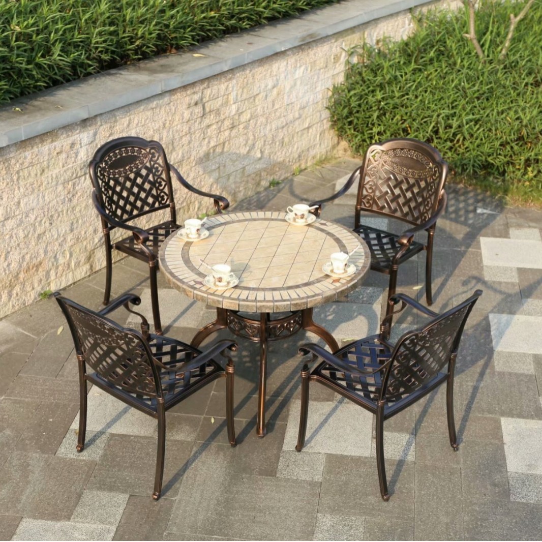 중국 스타일 레저 B & B 상업 거리 식탁과 의자 야외 가구 야외 발코니 바베큐 알루미늄 합금 테이블과 의자 세트