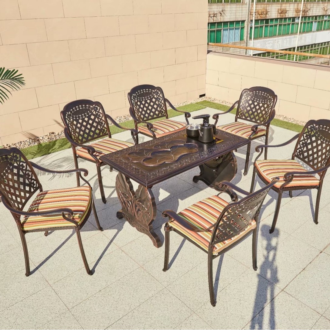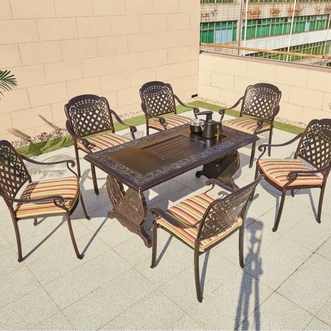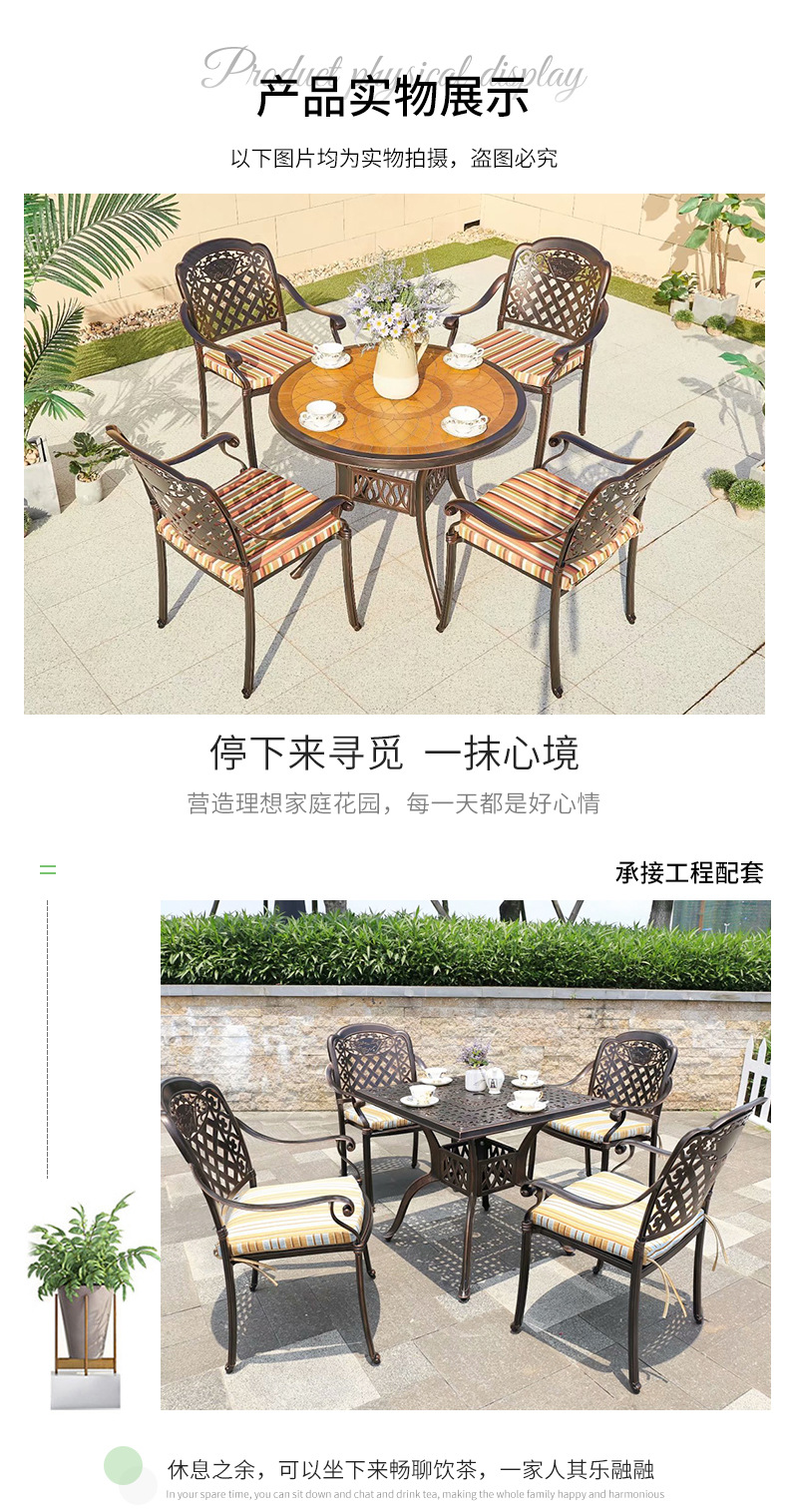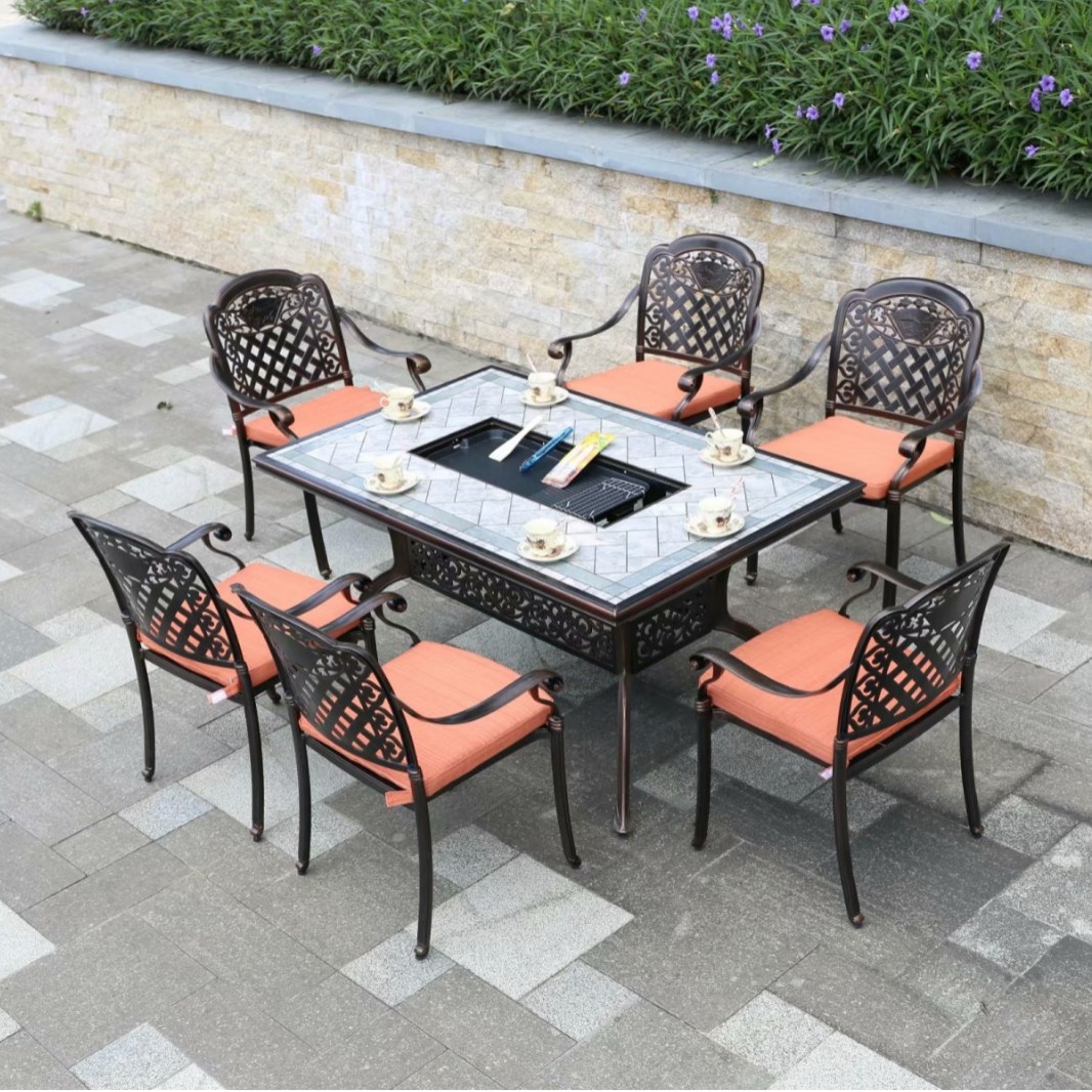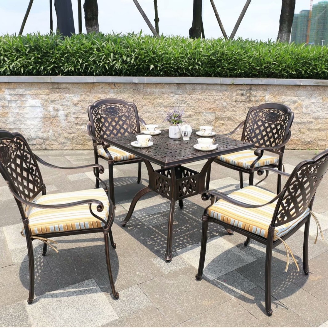 중국 스타일 레저 B & B 상업 거리 식탁과 의자 야외 가구 야외 발코니 바베큐 알루미늄 합금 테이블과 의자 세트