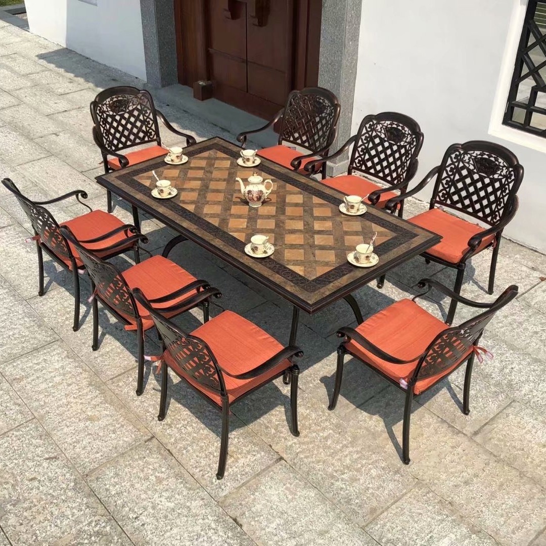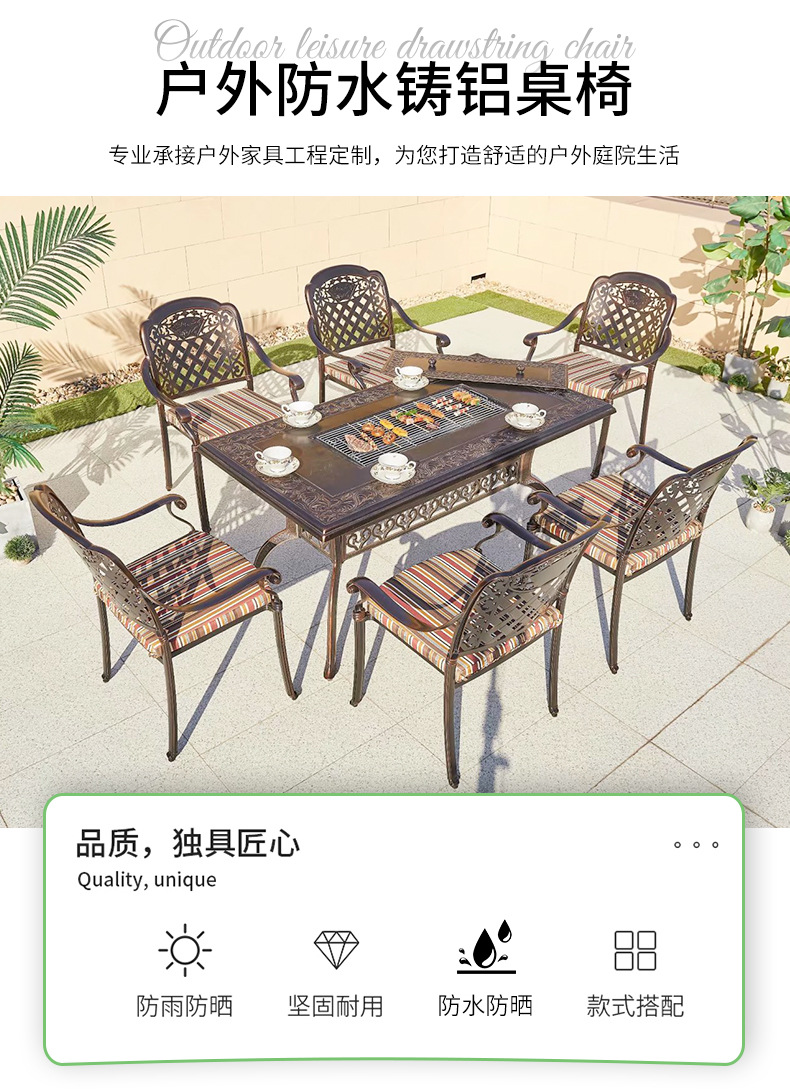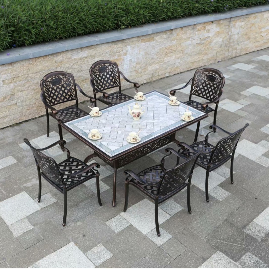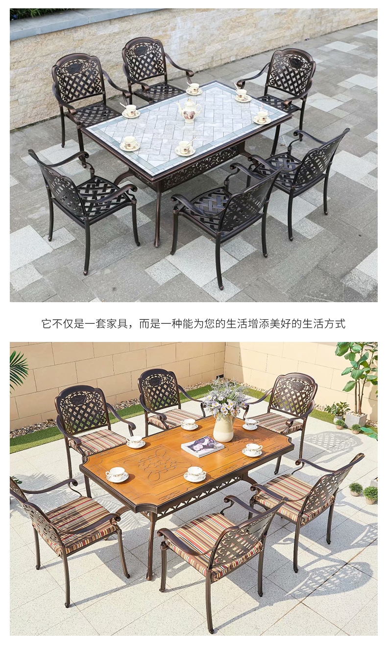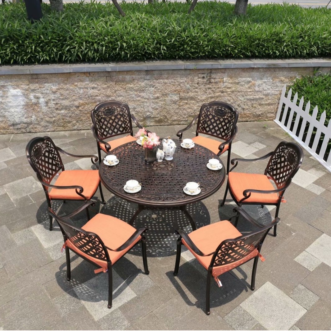 중국 스타일 레저 B & B 상업 거리 식탁과 의자 야외 가구 야외 발코니 바베큐 알루미늄 합금 테이블과 의자 세트