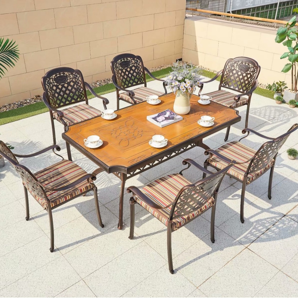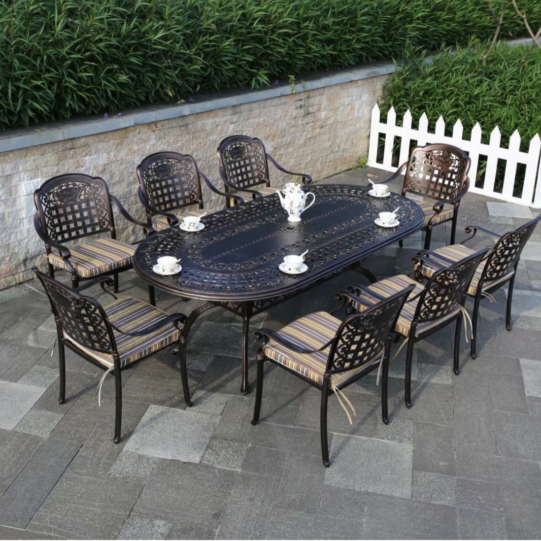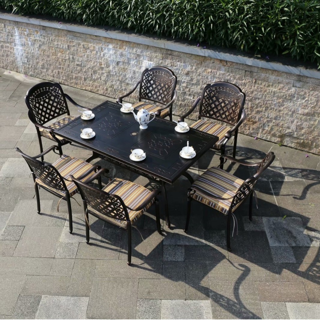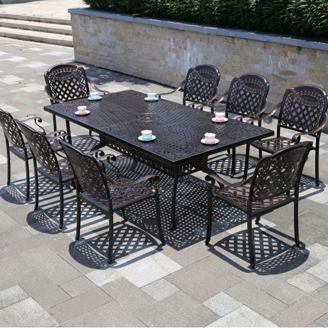 중국 스타일 레저 B & B 상업 거리 식탁과 의자 야외 가구 야외 발코니 바베큐 알루미늄 합금 테이블과 의자 세트