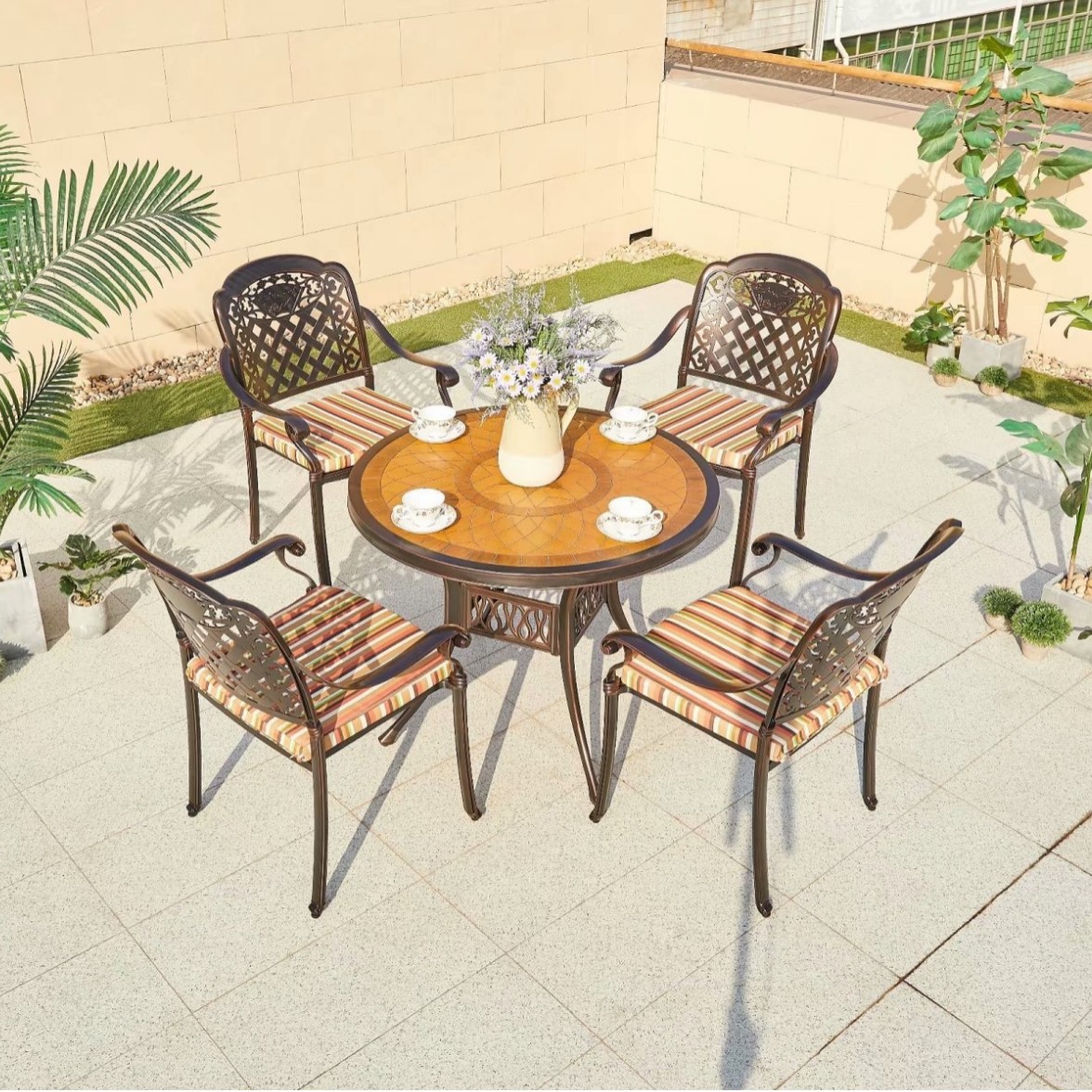 • 기울어진 풍경화 의자 나뭇결 타일 전기 그릴 테이블
