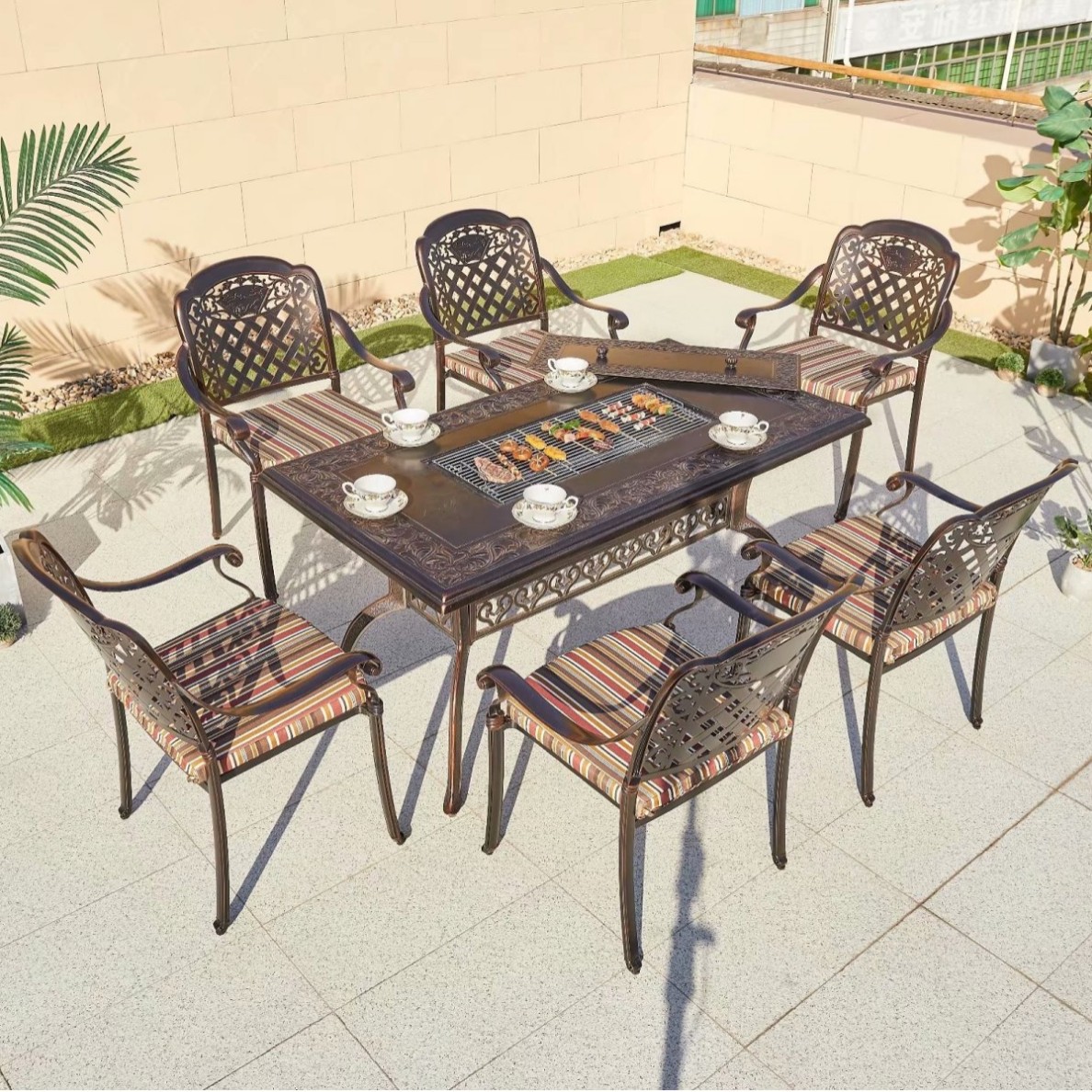 • 경사 풍경화 의자 150 완전 주조 알루미늄 탄소 그릴 테이블