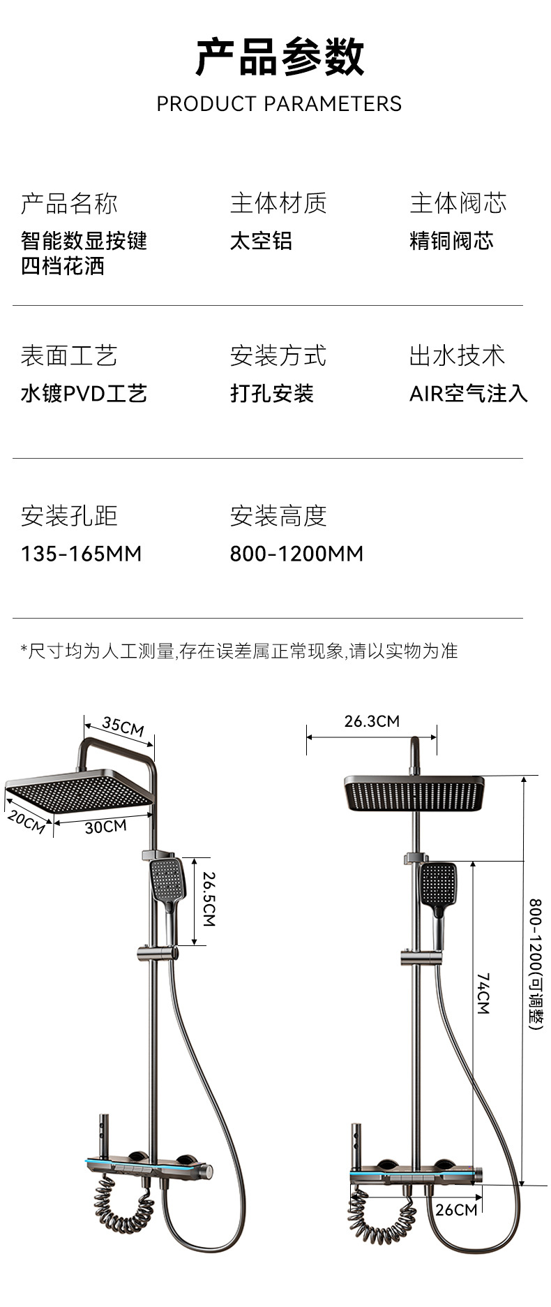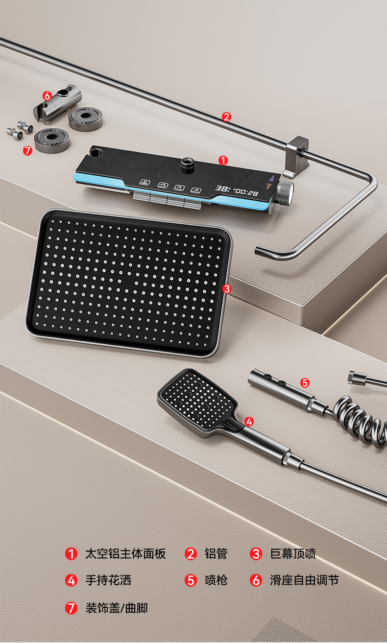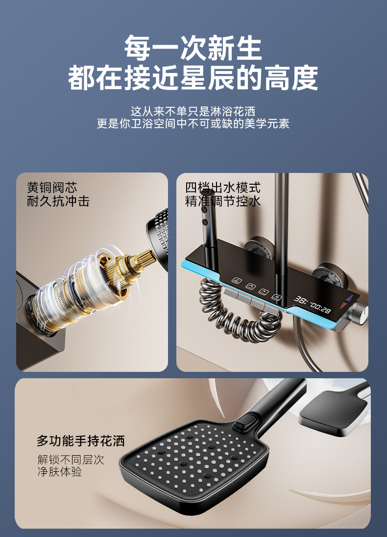 샤워 세트 가정용 욕실 총 회색 샤워 욕실 디지털 디스플레이 샤워 노즐 제조 업체 도매